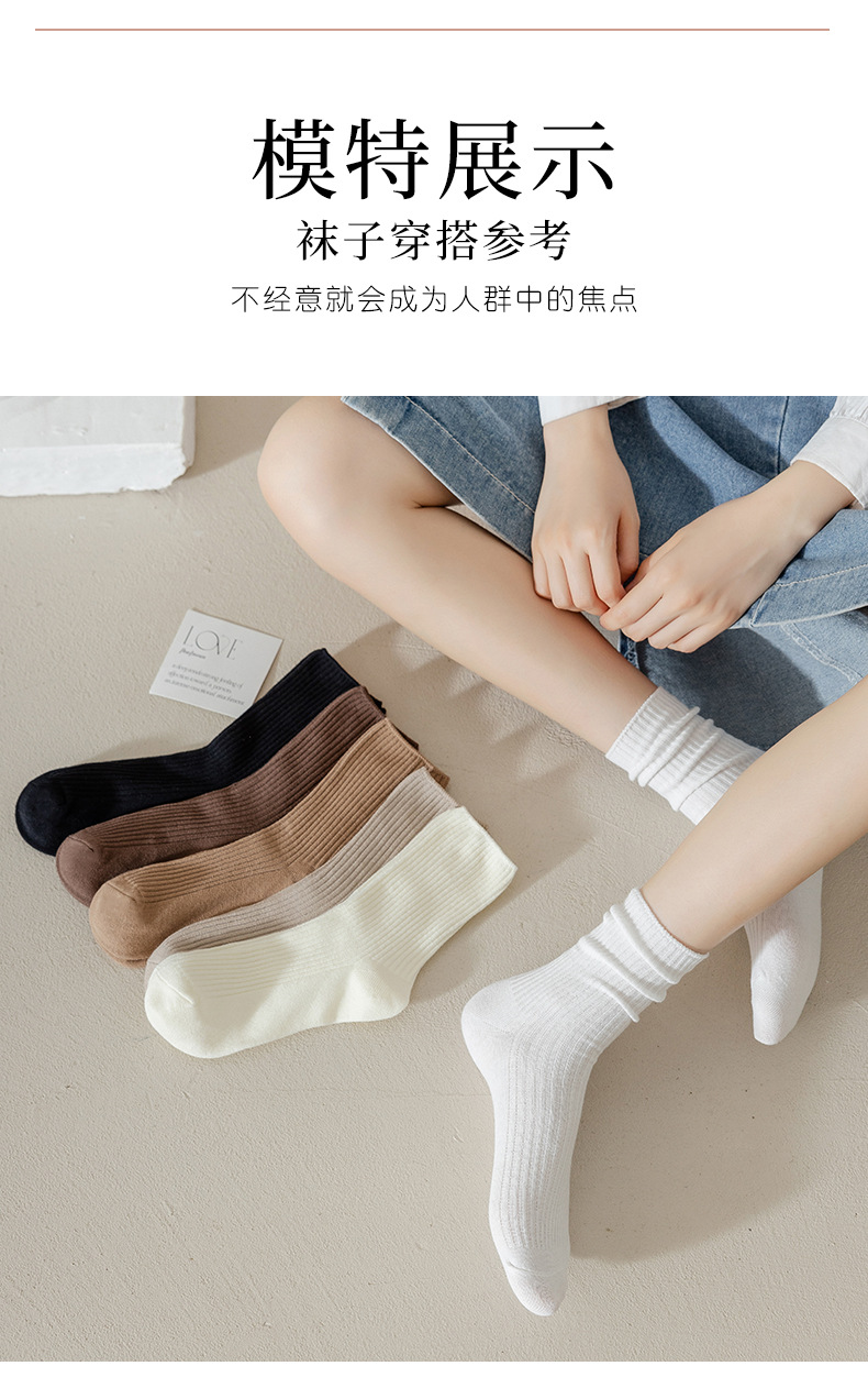 「10双装!五色可选」袜子女中筒袜秋季新款抽条韩国堆堆袜学生运动袜配饰
