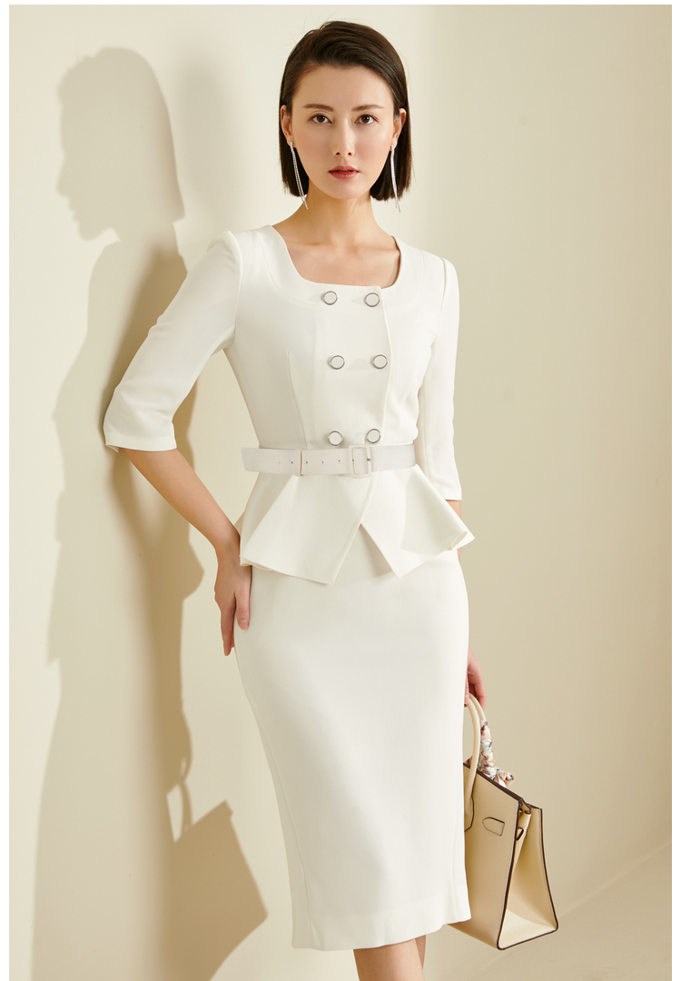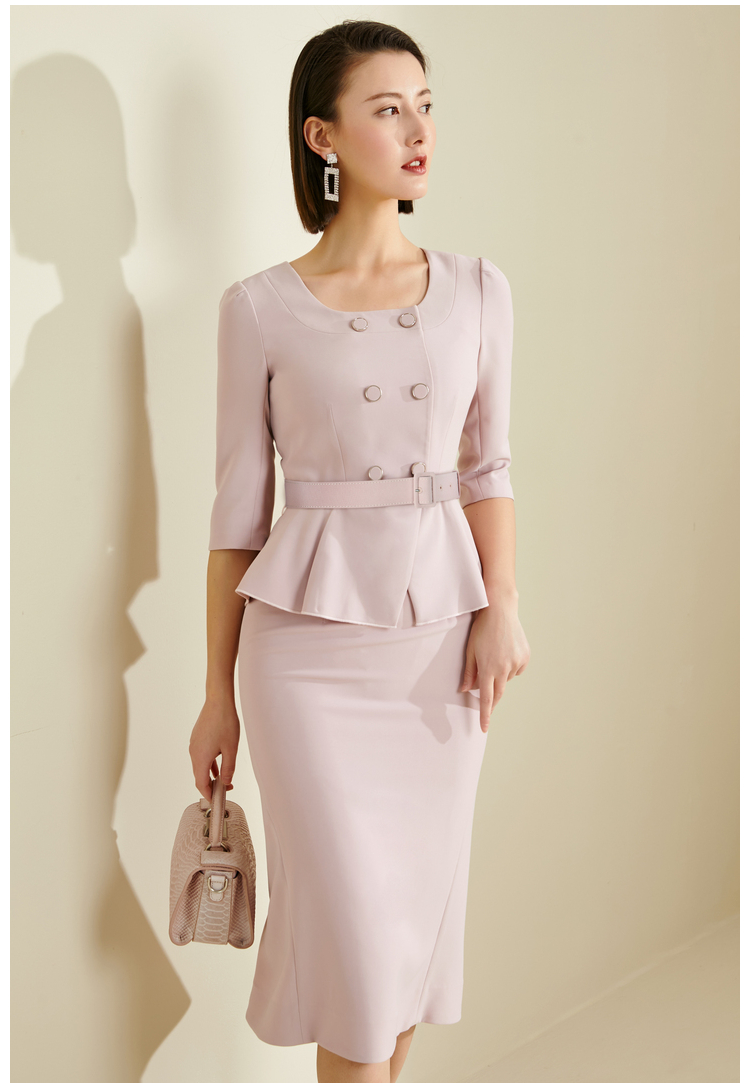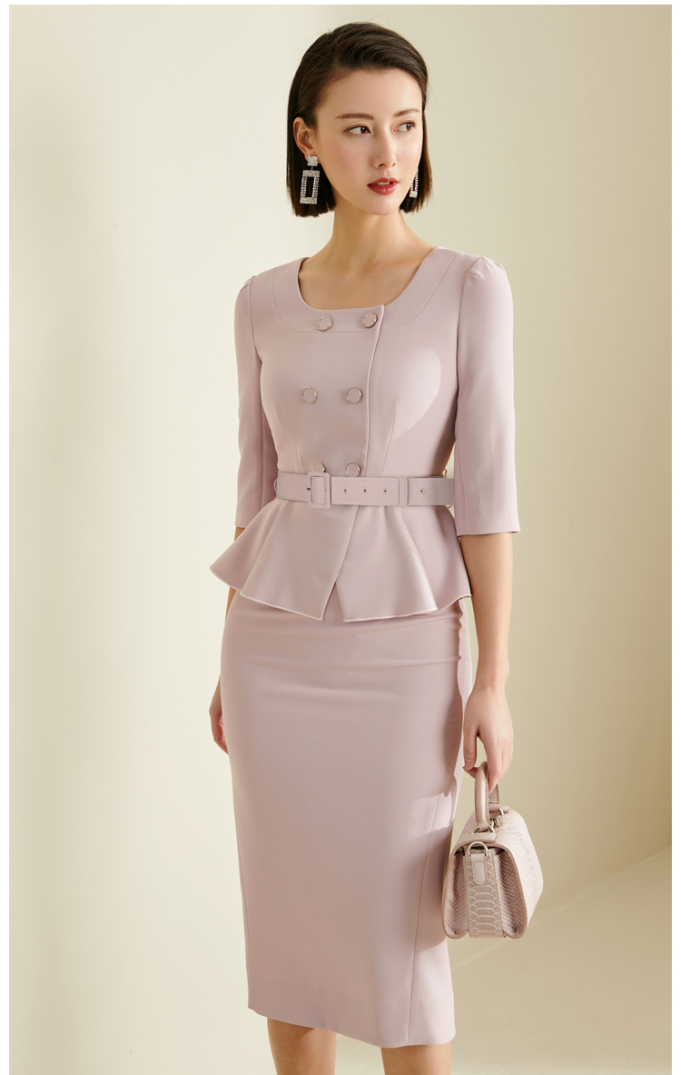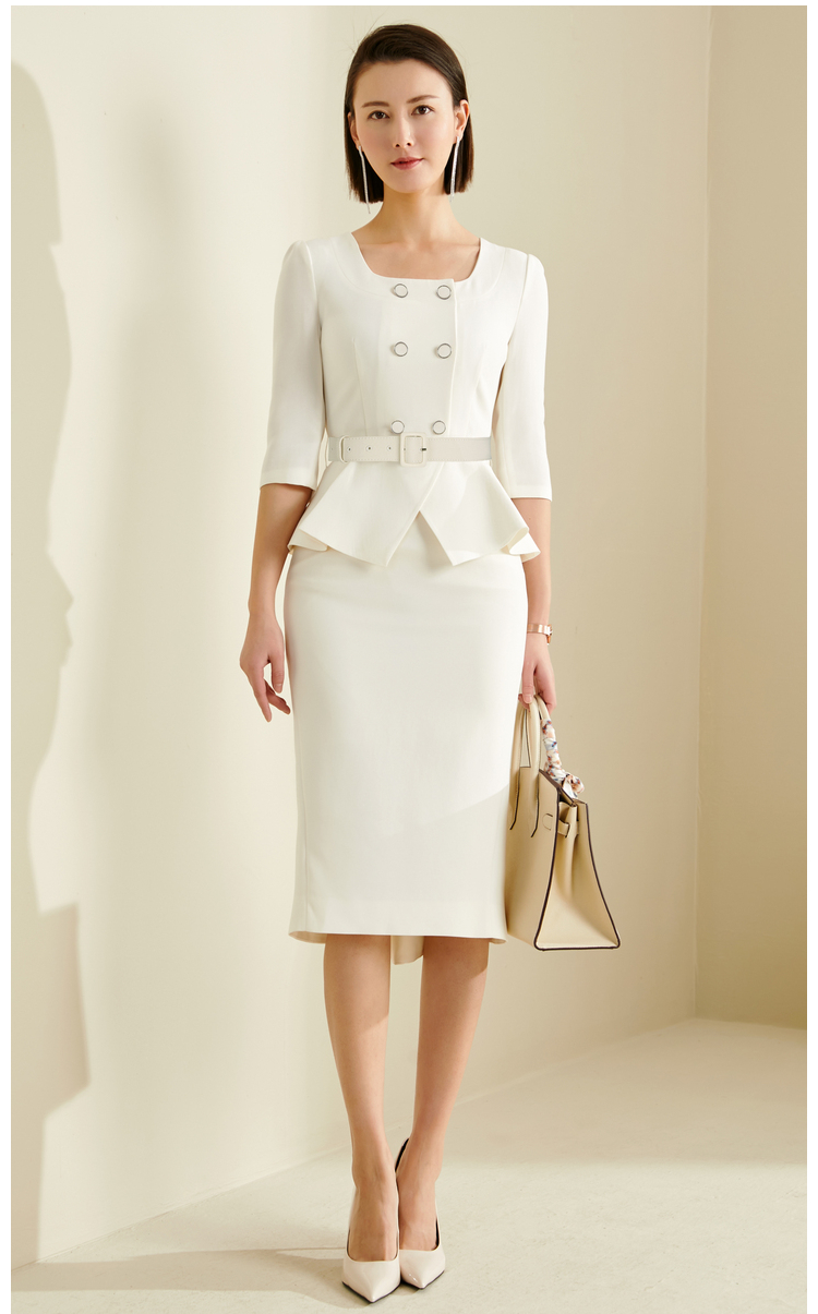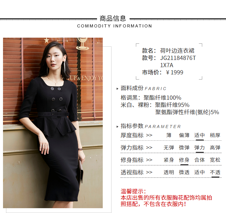 “职场芭蕾”-JG21184876T1X7颈袖添香年季女装收腰修身长款气质时尚通勤职业连衣裙 女装收腰长款气质时尚通勤职业连衣裙