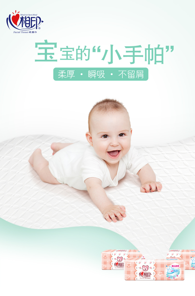 心相印婴儿抽纸 3层120抽面巾纸*18包婴儿纸巾(L plus码 母婴用纸 整箱销售)