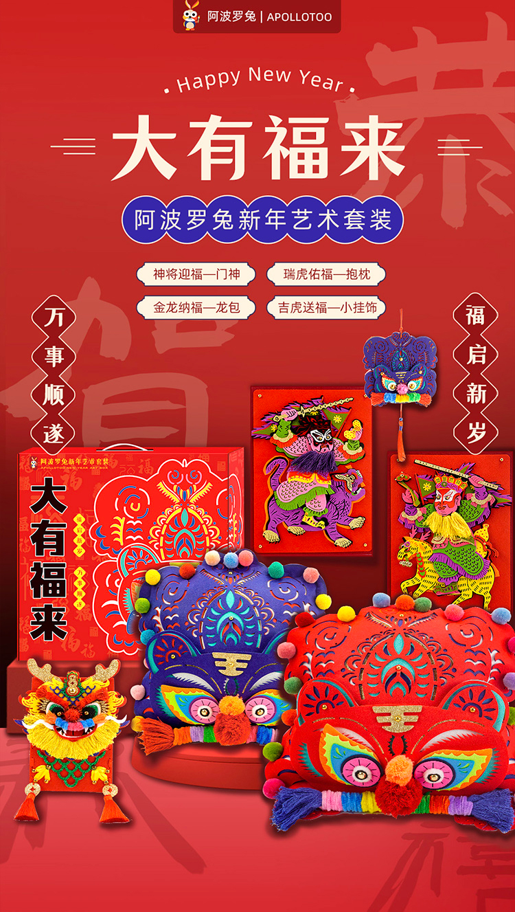 【2.11日15点以后订单初八发】【爆款清仓 直降90元】阿波罗兔大有福来新年艺术套装,门神抱枕DIY包小挂饰