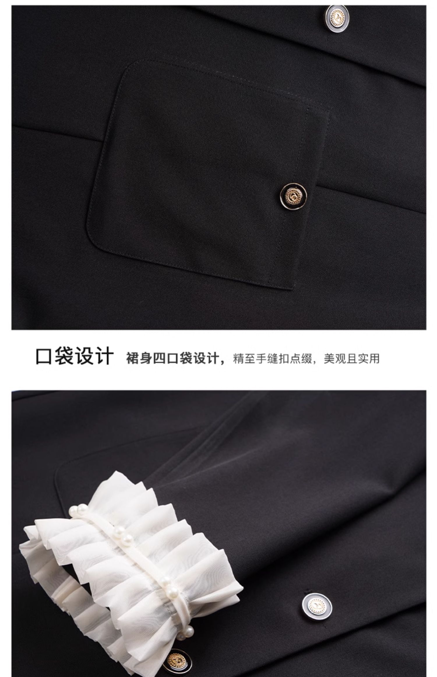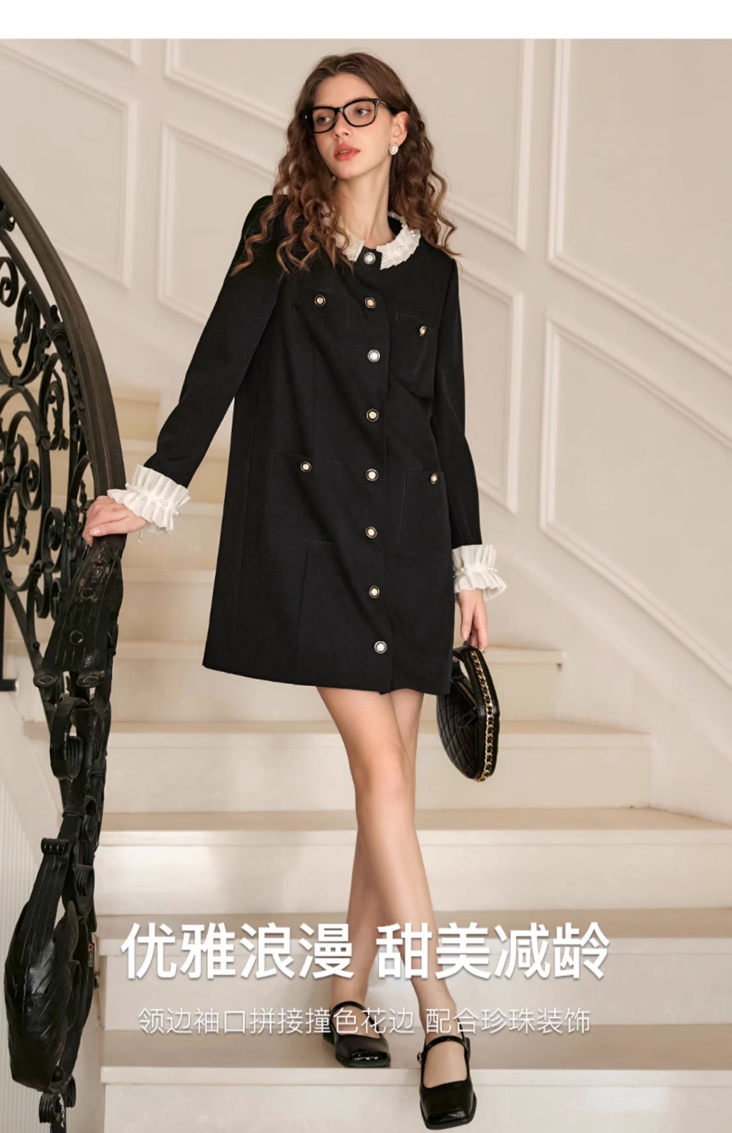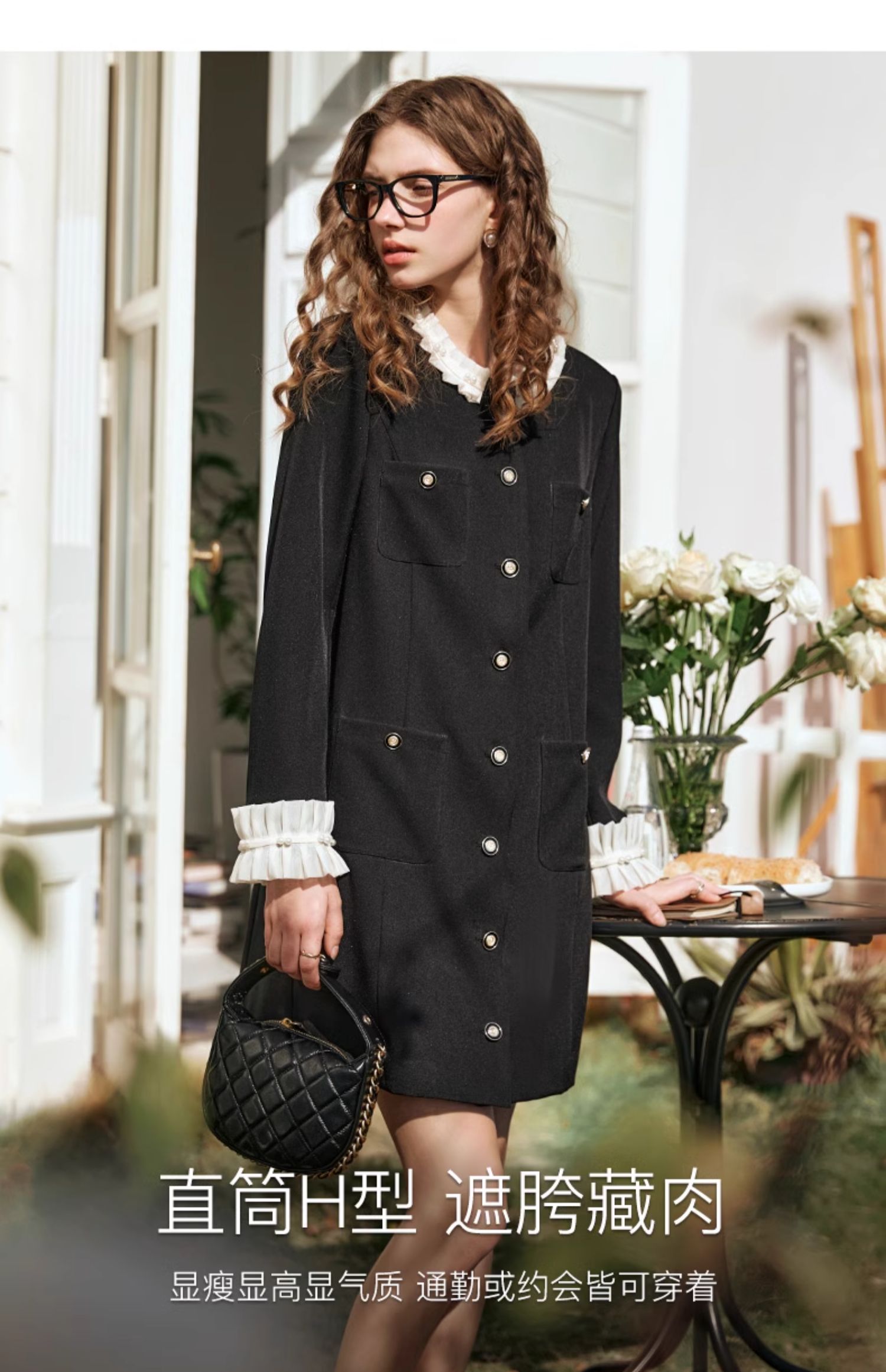 OLrain欧芮儿黑色连衣裙女早春2024年新款高级气质显瘦名媛直筒裙