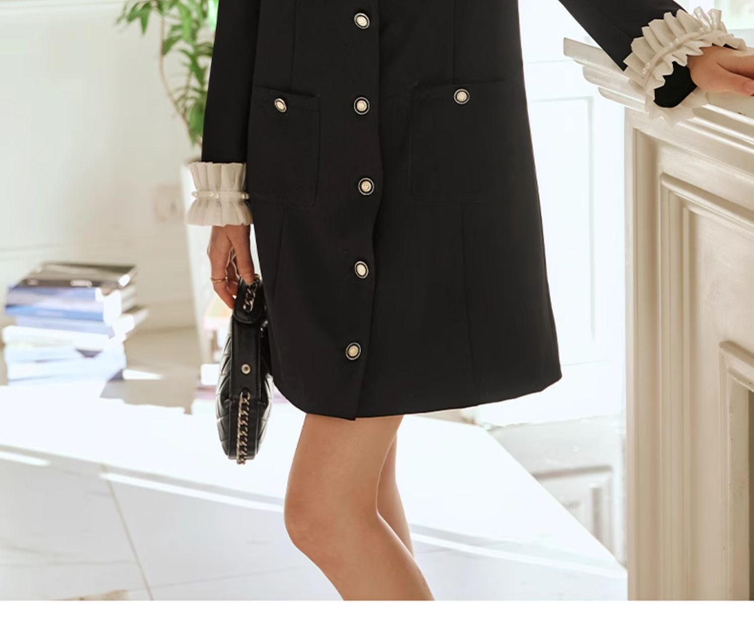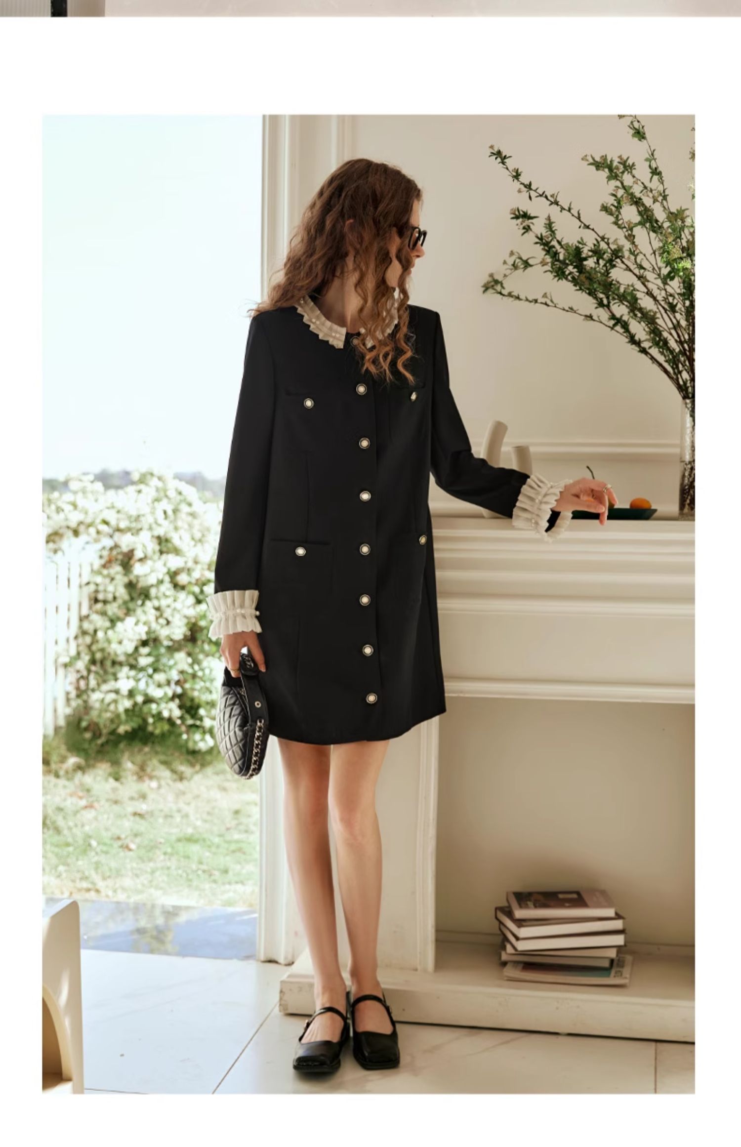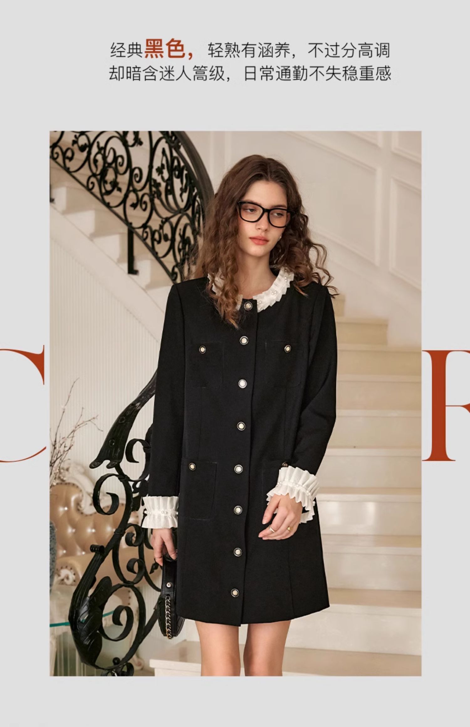 OLrain欧芮儿黑色连衣裙女早春2024年新款高级气质显瘦名媛直筒裙