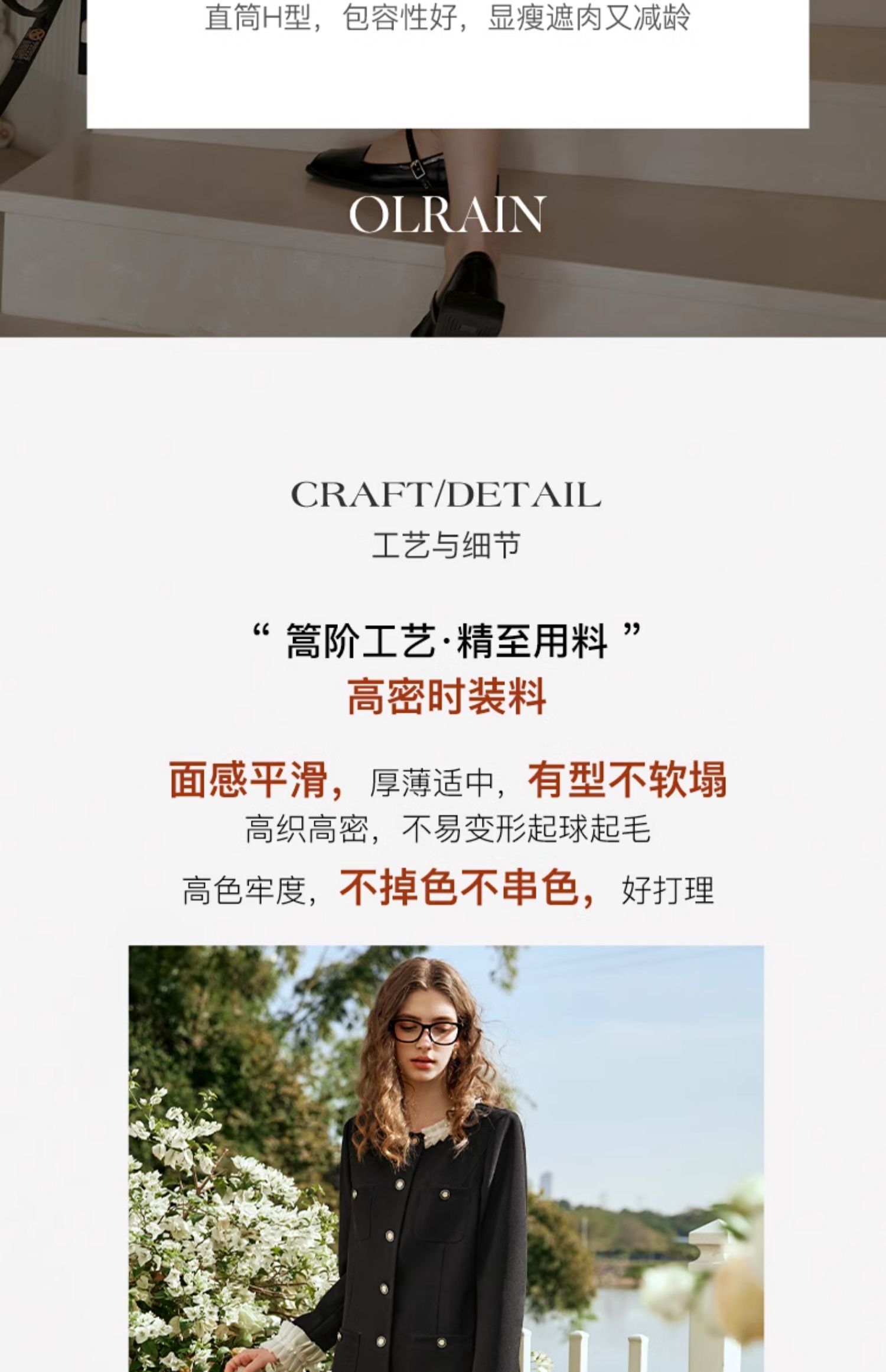 - “精致”是欧芮儿olrain品牌文化的核心,欧芮儿认为,精致的女人,不但要外在动人,更要内在迷人,内外兼修,有魅力、有气质、有内涵,自信而不自傲,优雅而不矫揉,自有万种风情而不轻浮,更不故作矜持。