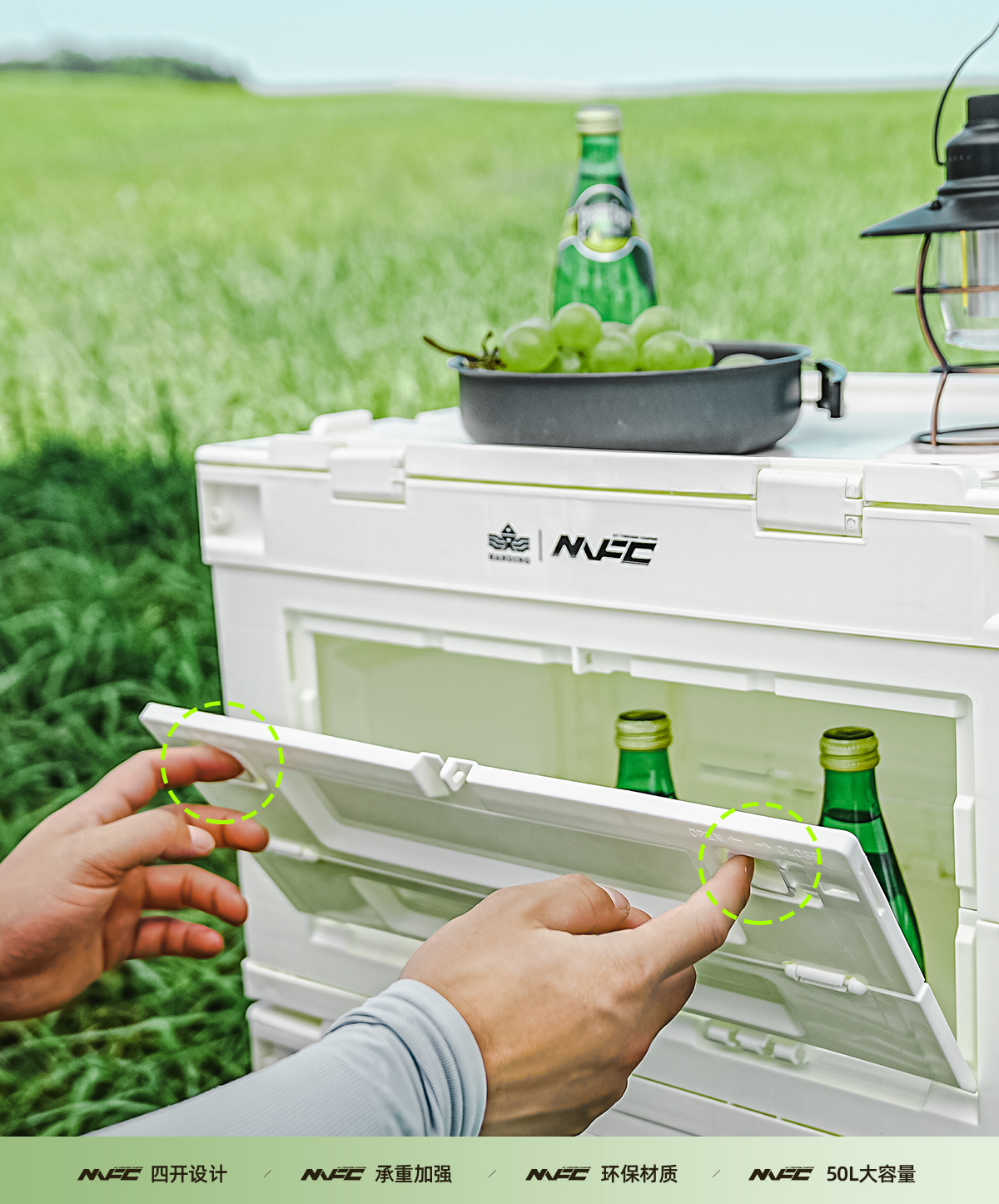 折叠白色野餐侧开后备箱车载户外露营收纳箱