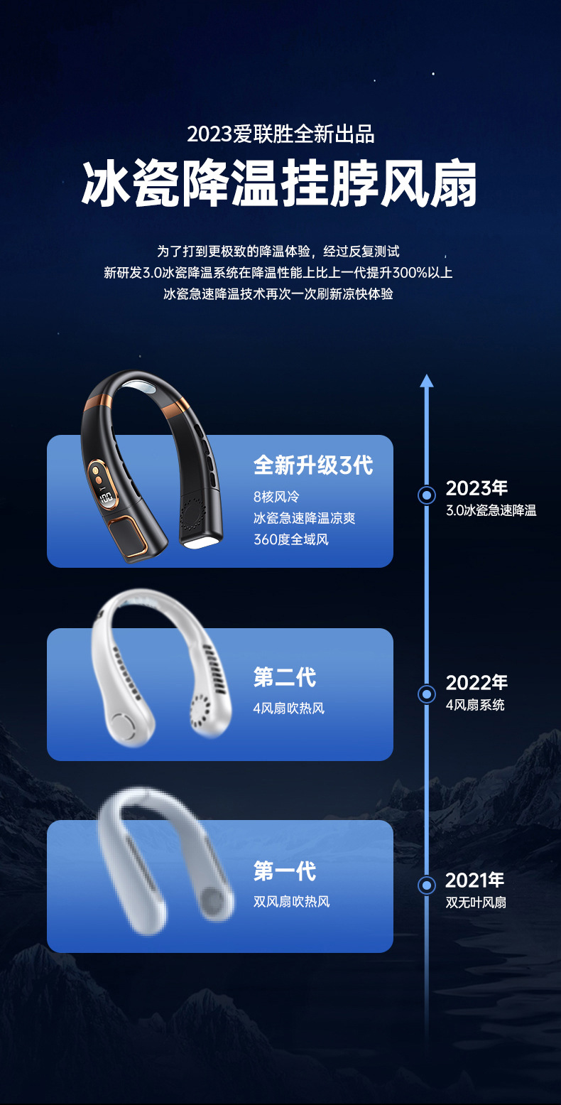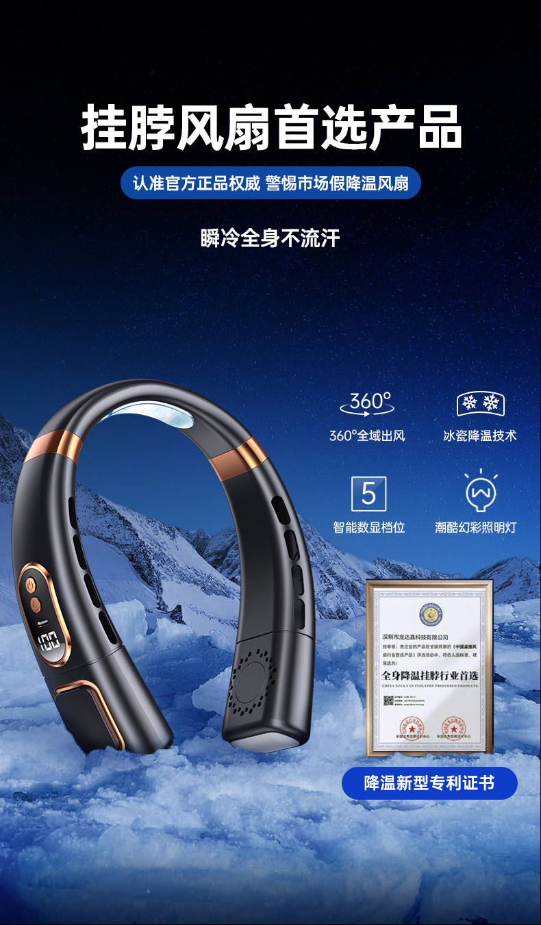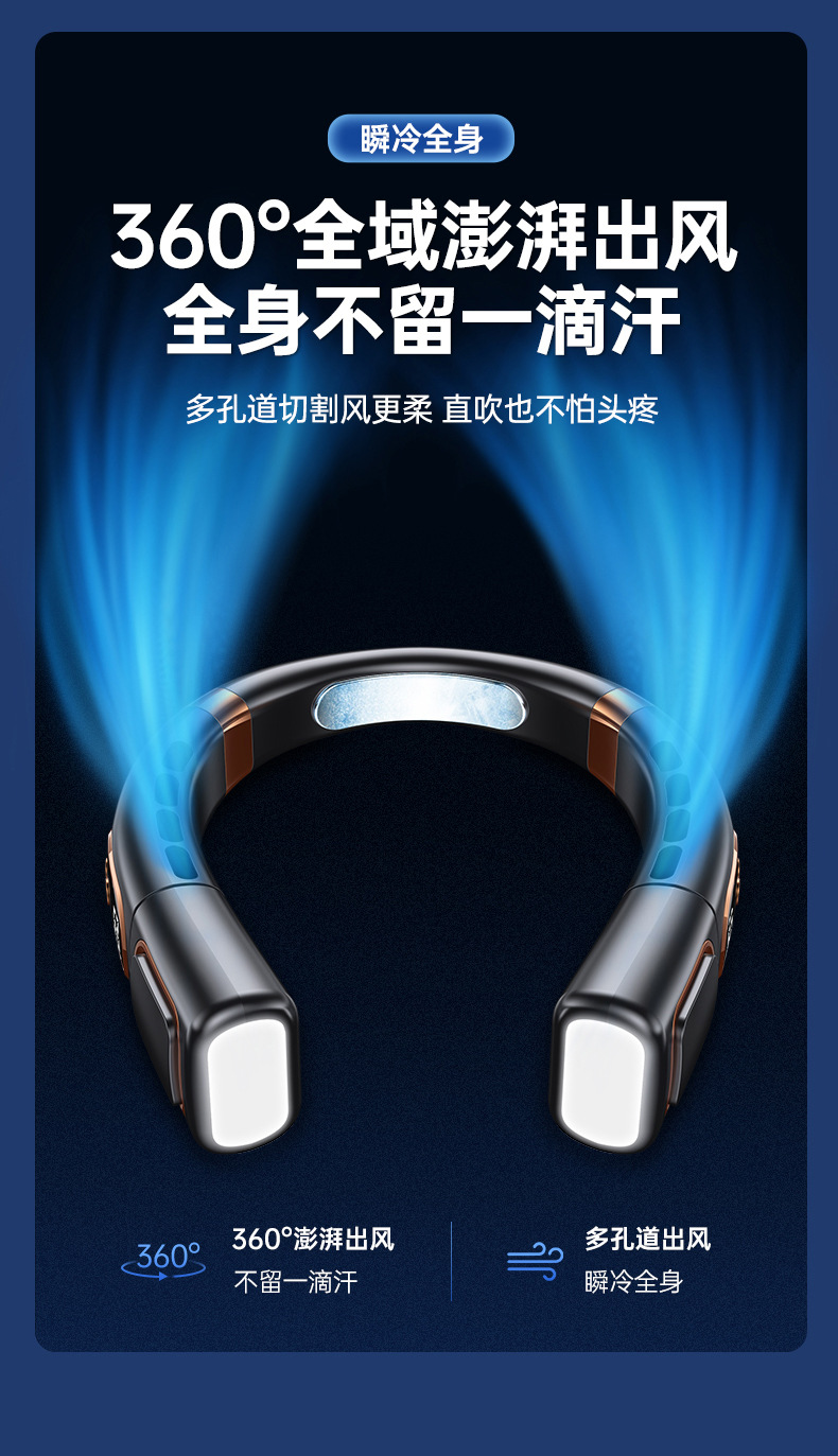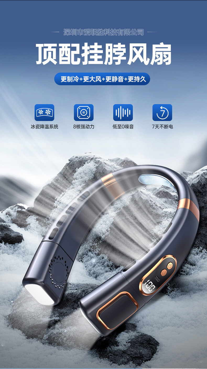 【便携舒适,急速降温!】冰瓷降温,潮酷氛围,便携静音,智能数显,新款便携式挂脖风扇等你掌控。上班族、户外运动爱好者的救星,巨舒适、巨便捷,急速降温的神器!五一旅游出行必备神器!