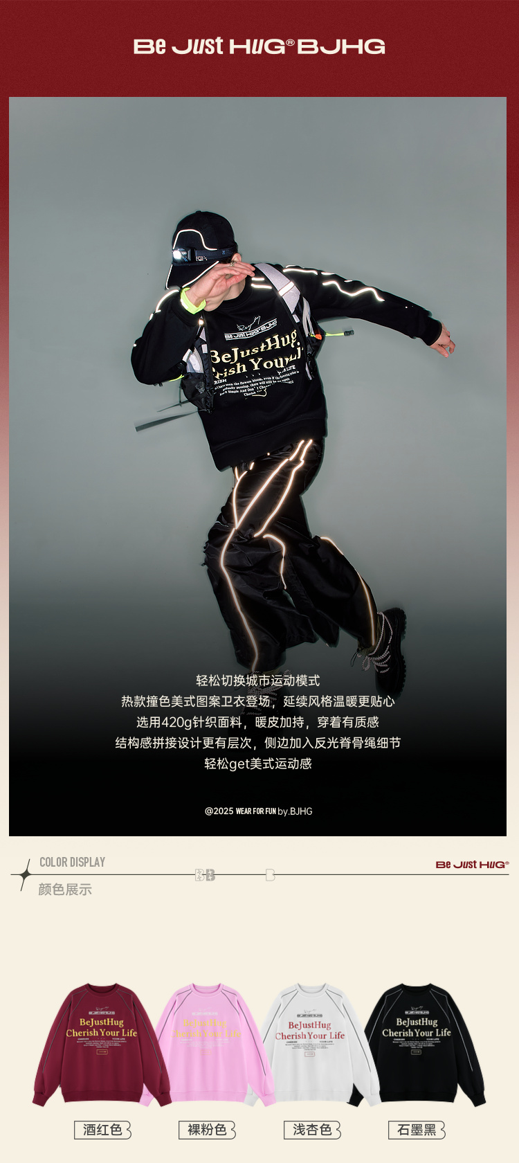BJHG不计后果美式休闲长袖t恤男秋季2025新款爆款暖皮恒温卫衣女