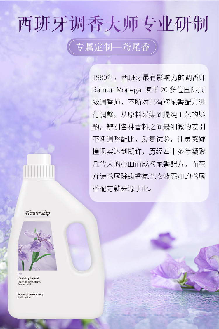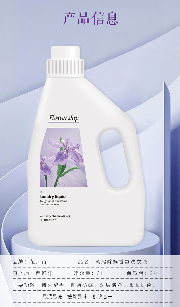 【分仓直发包邮】花卉诗鸢尾除螨香氛洗衣液3L