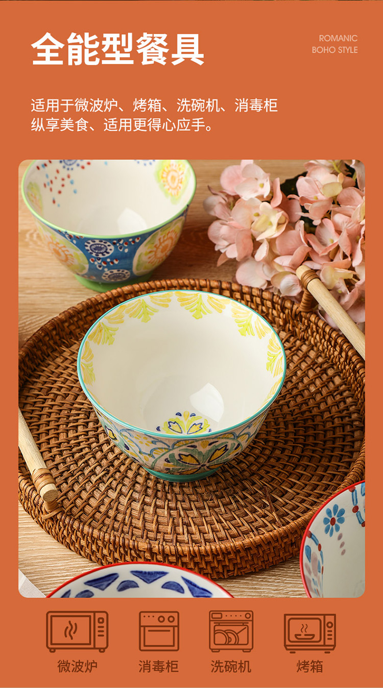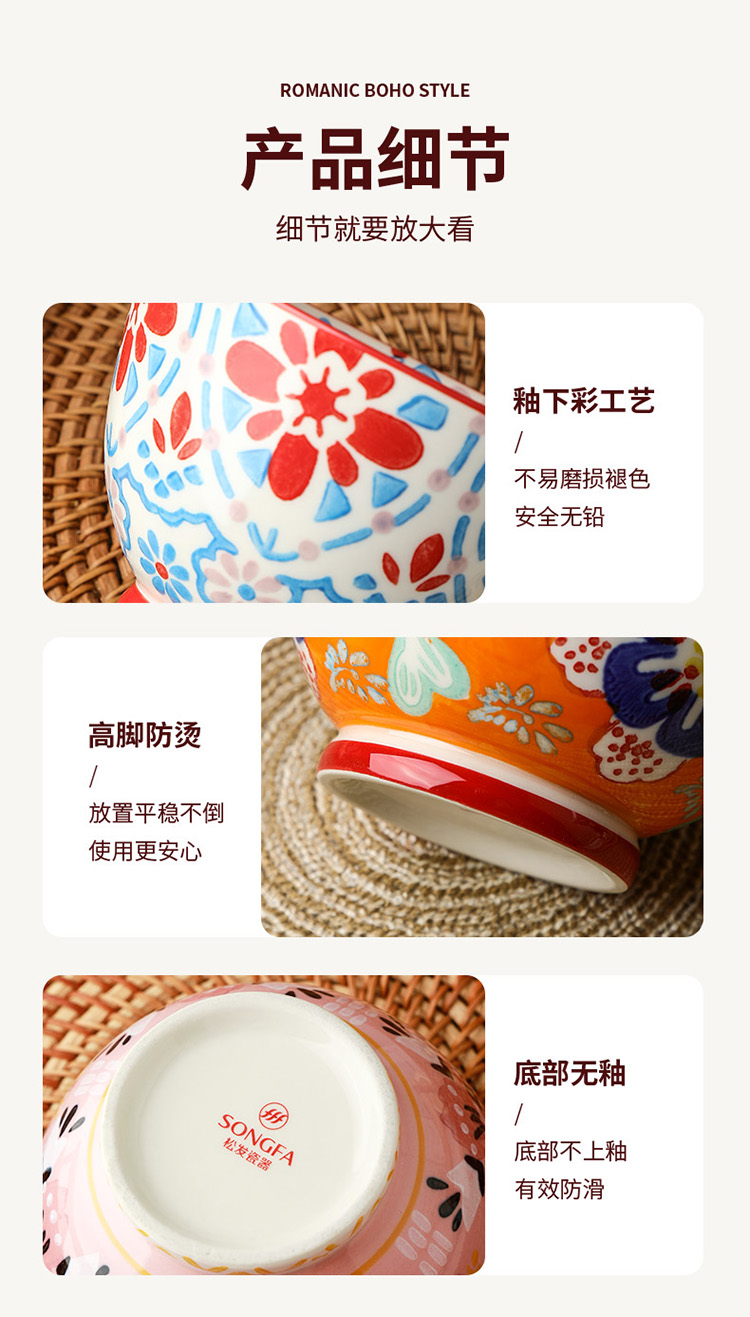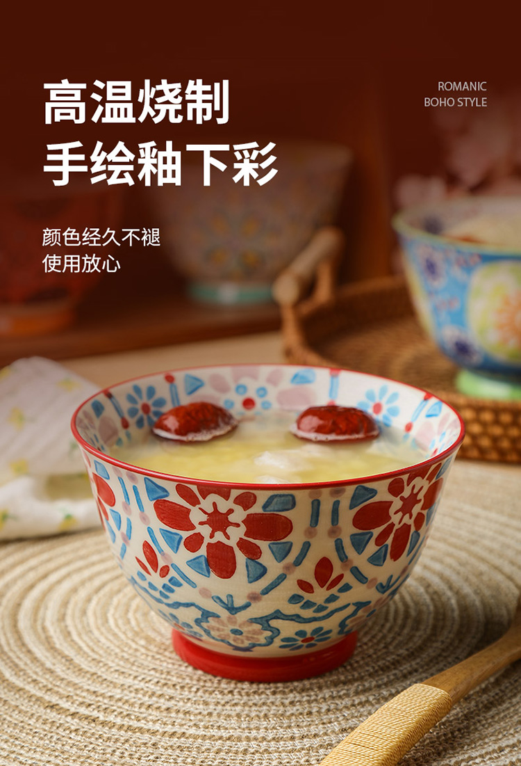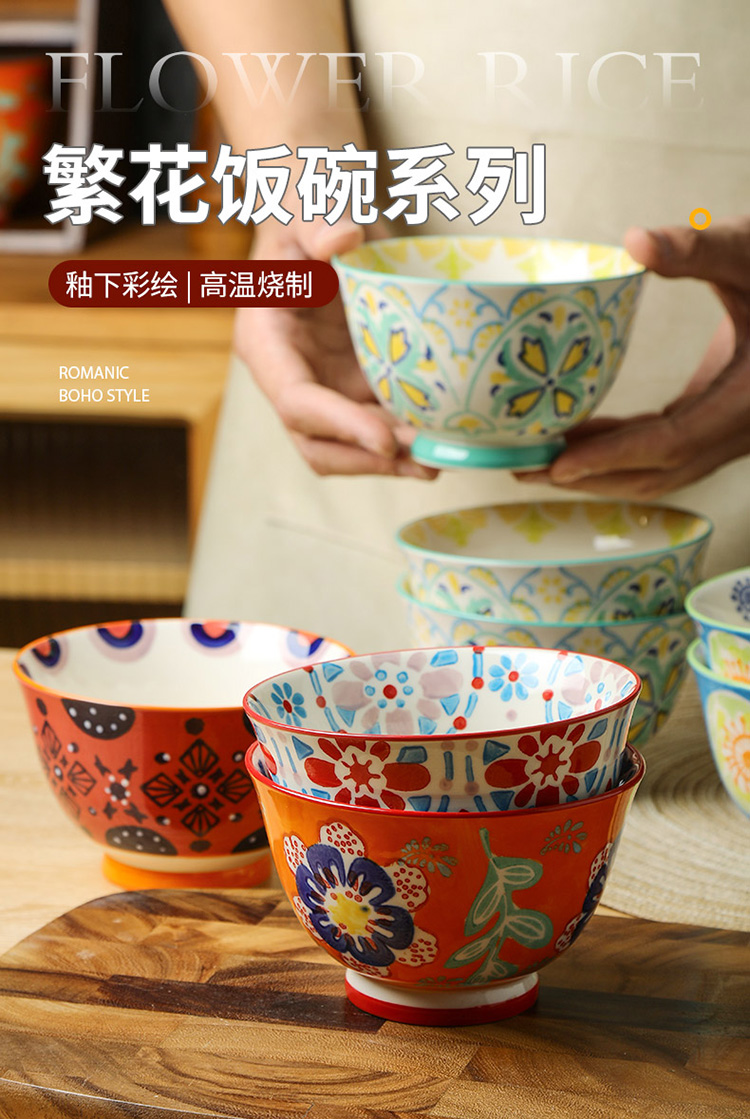 繁花釉下手绘高脚饭碗套装