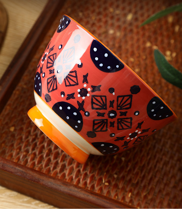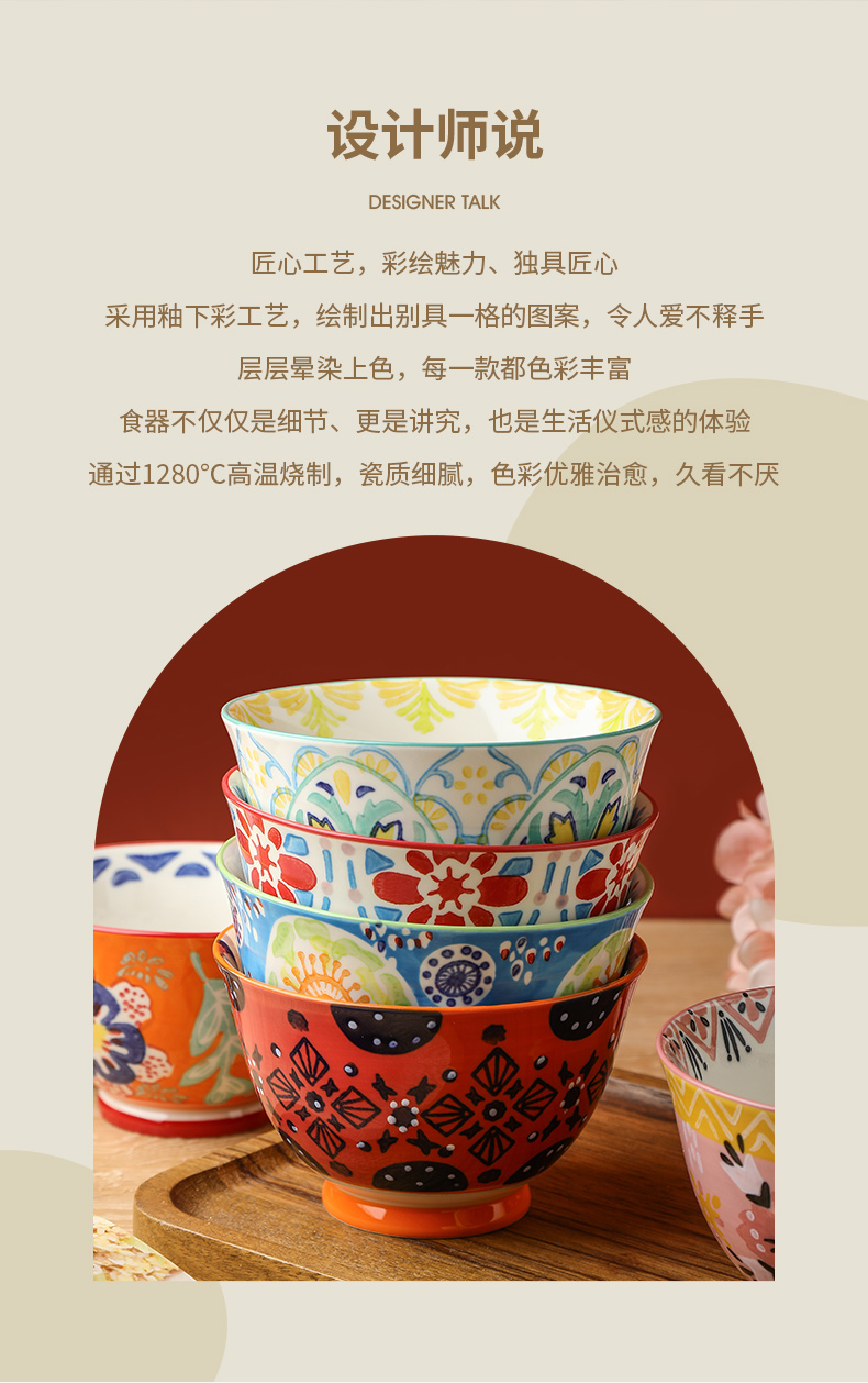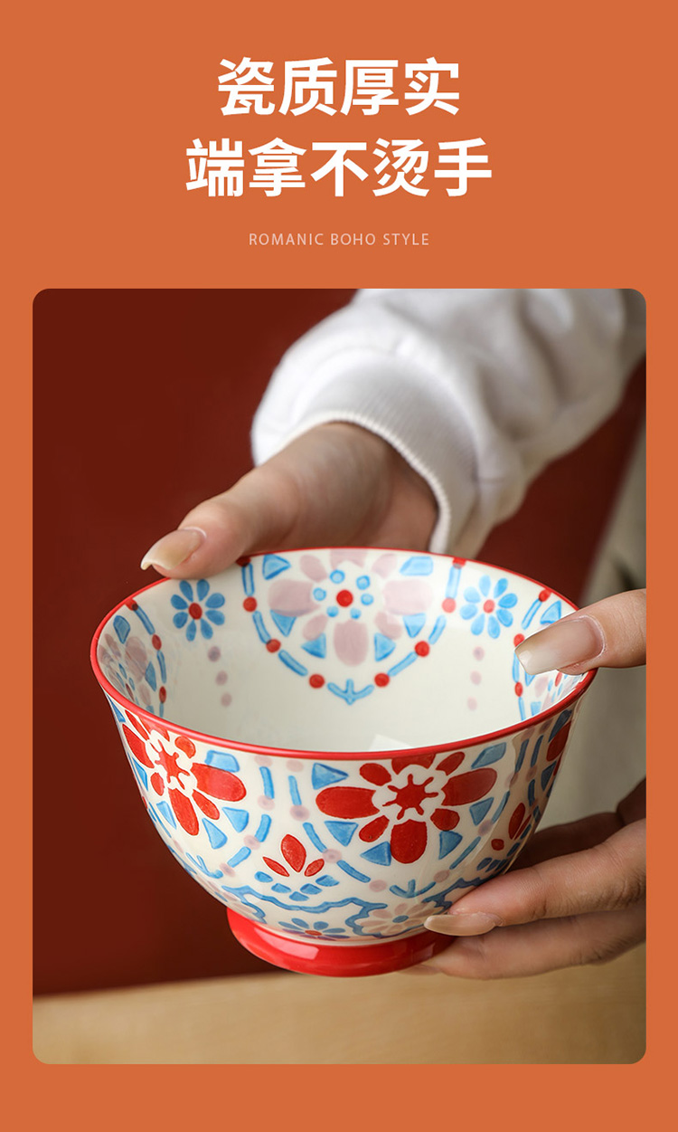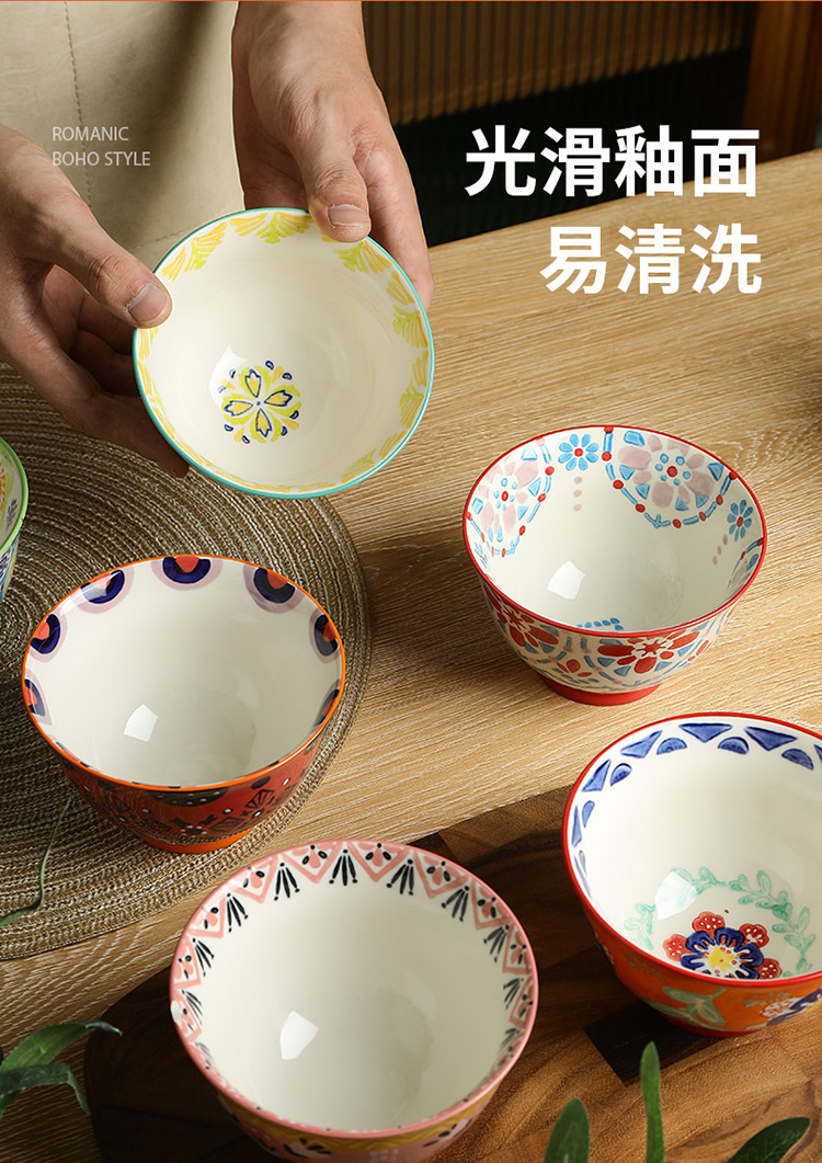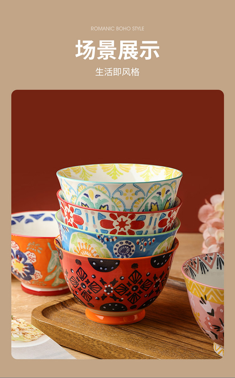 繁花釉下手绘高脚饭碗套装