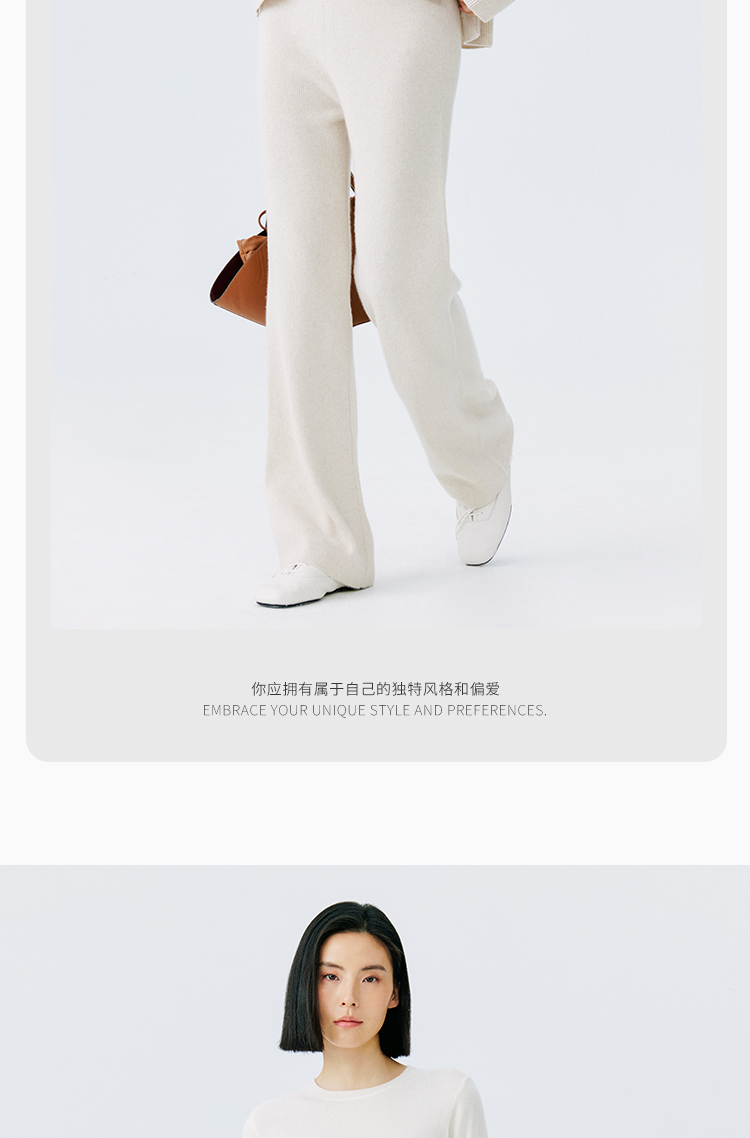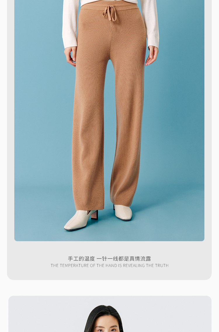 东黎 • 小山羊绒女士秋冬时尚宽松垂感保暖中腰直筒裤 21BBT28