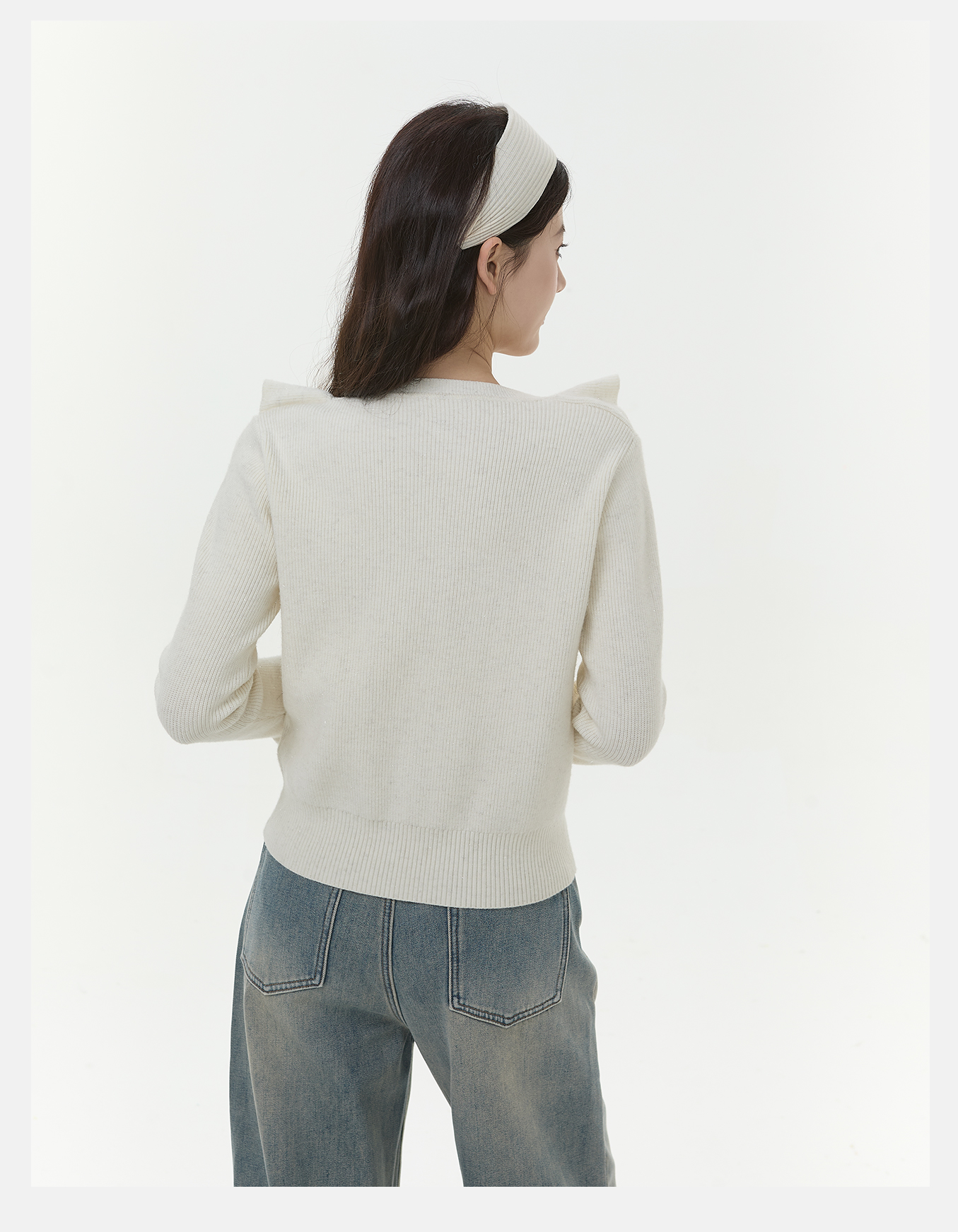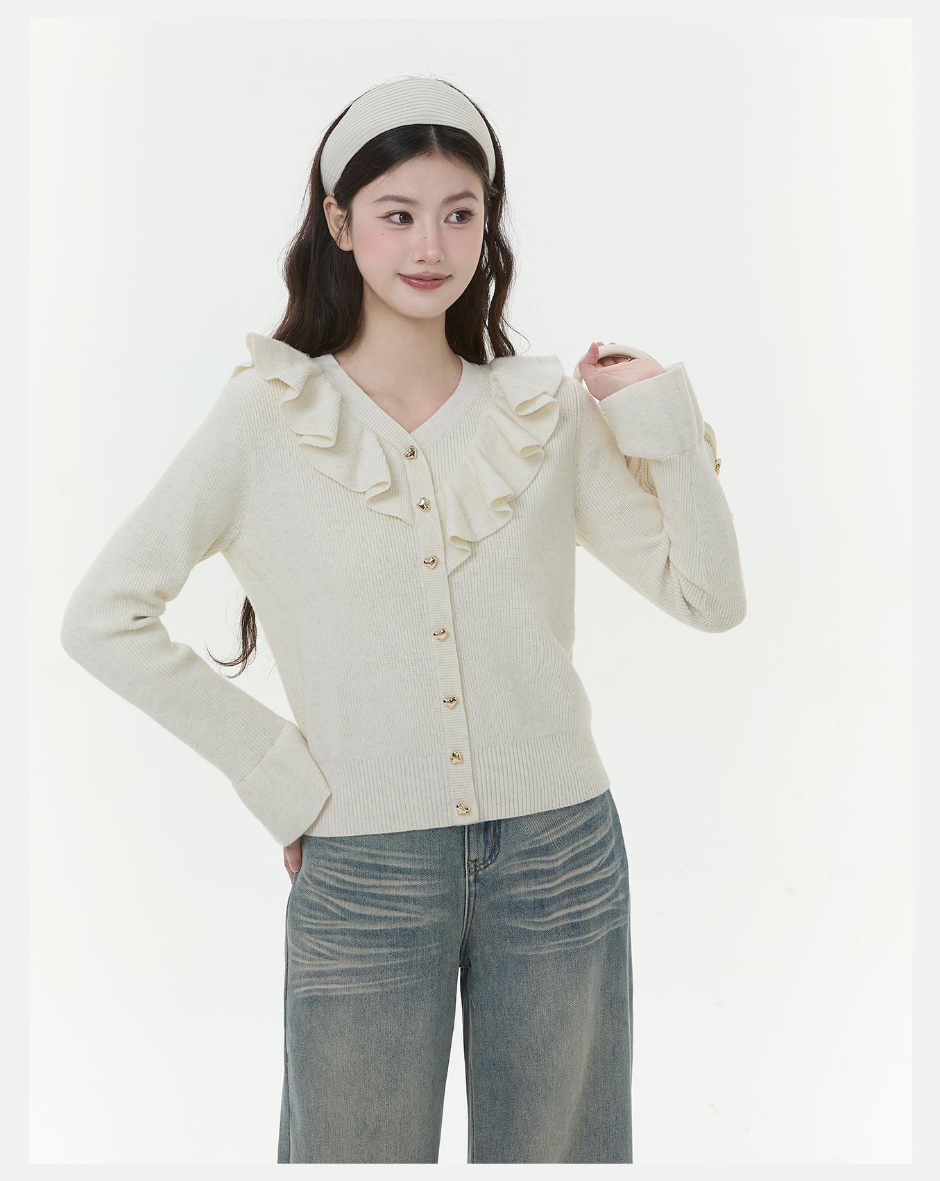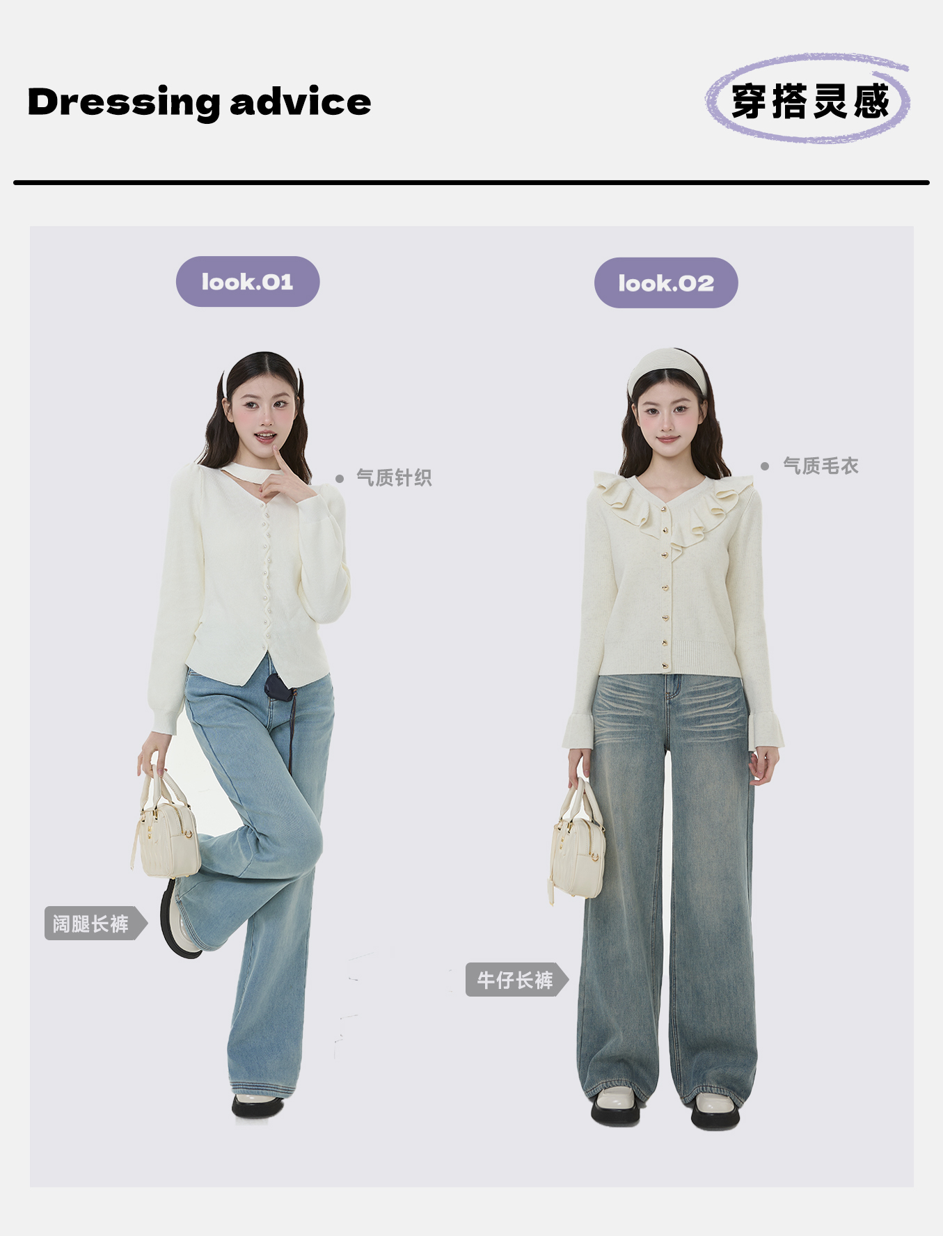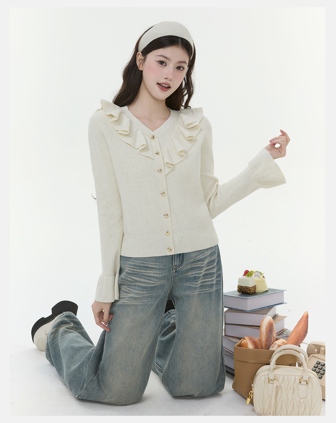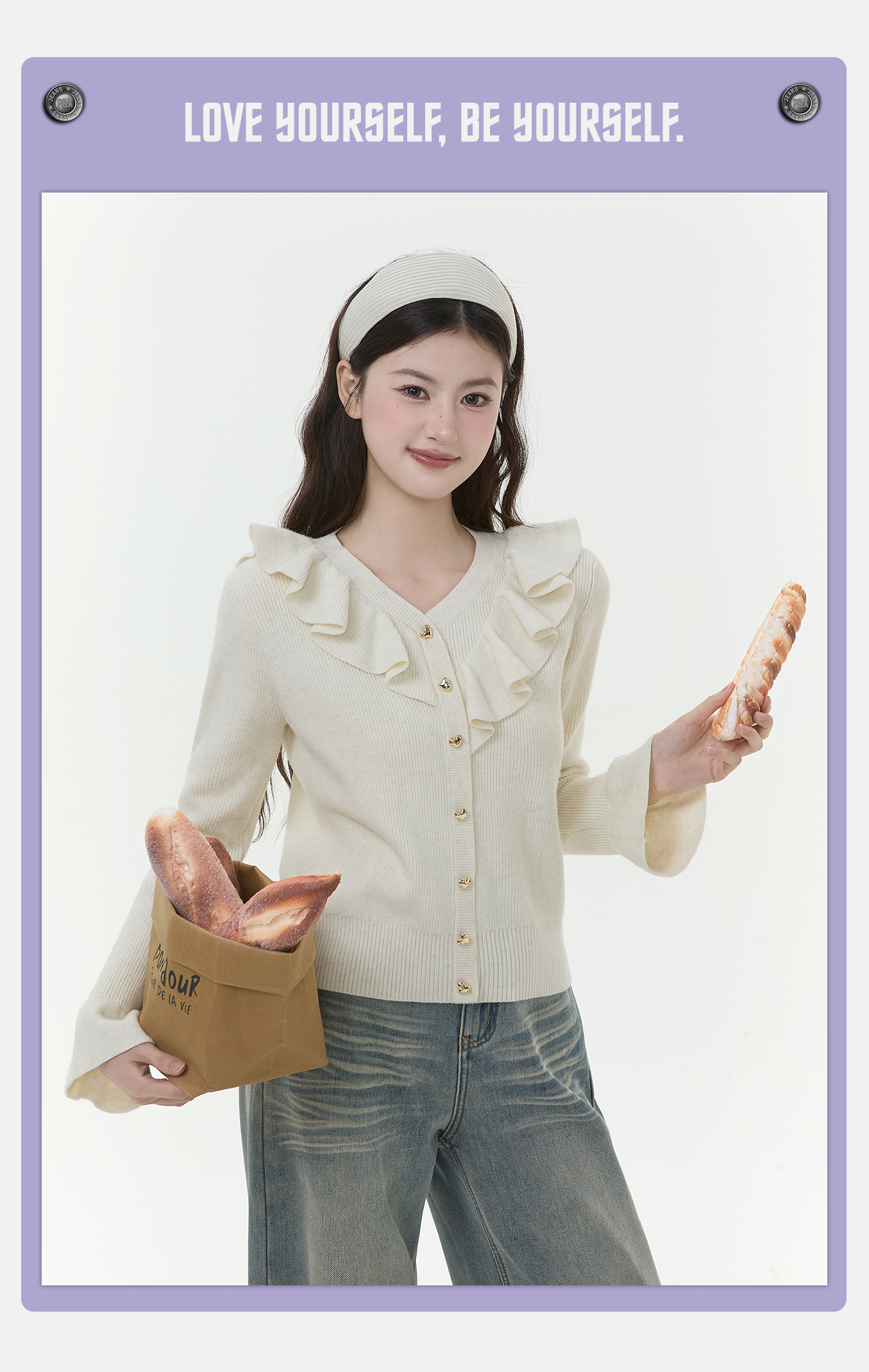 P&X设计师女装2025冬季少女风毛针织衫V领毛衣短款825418177 杏色