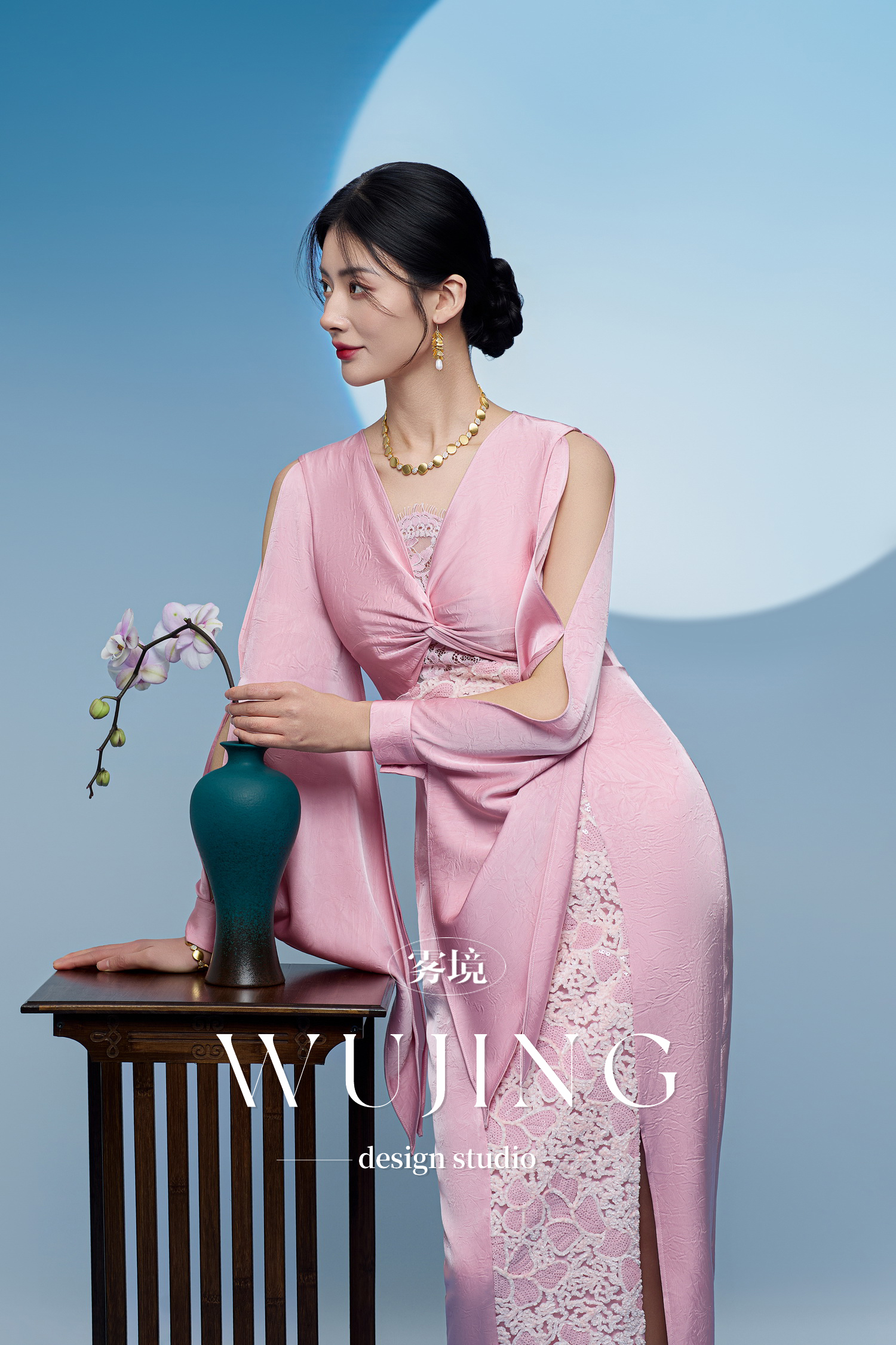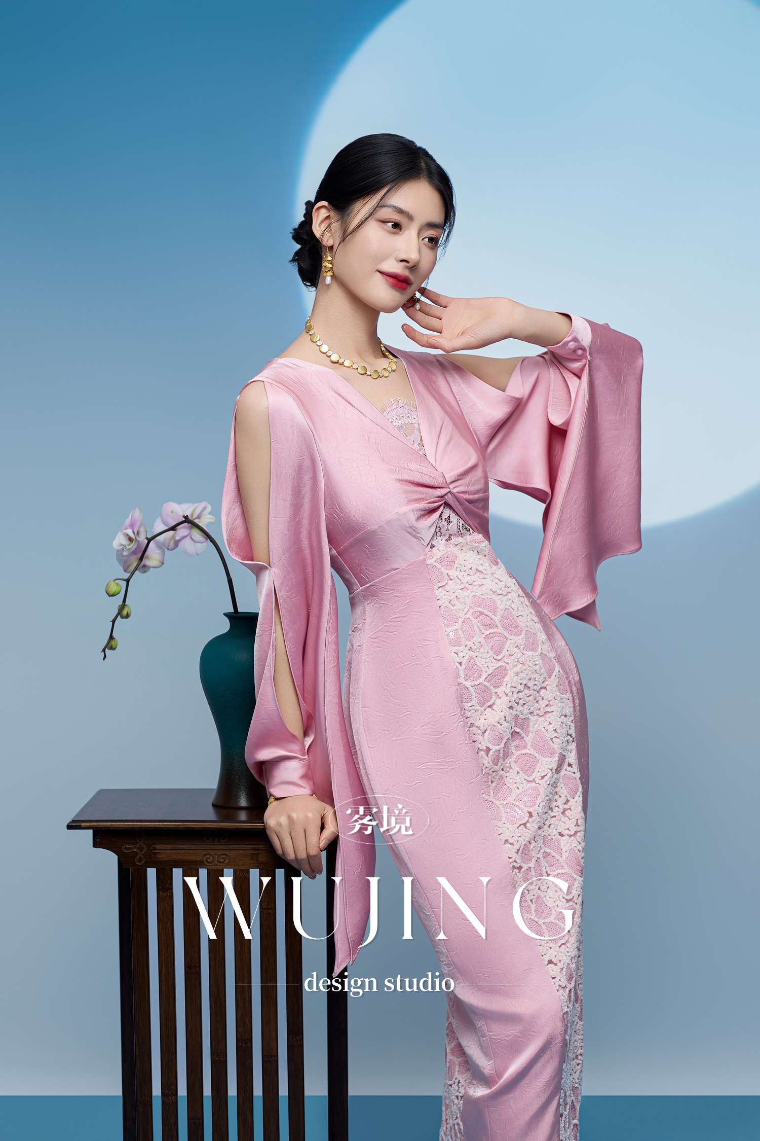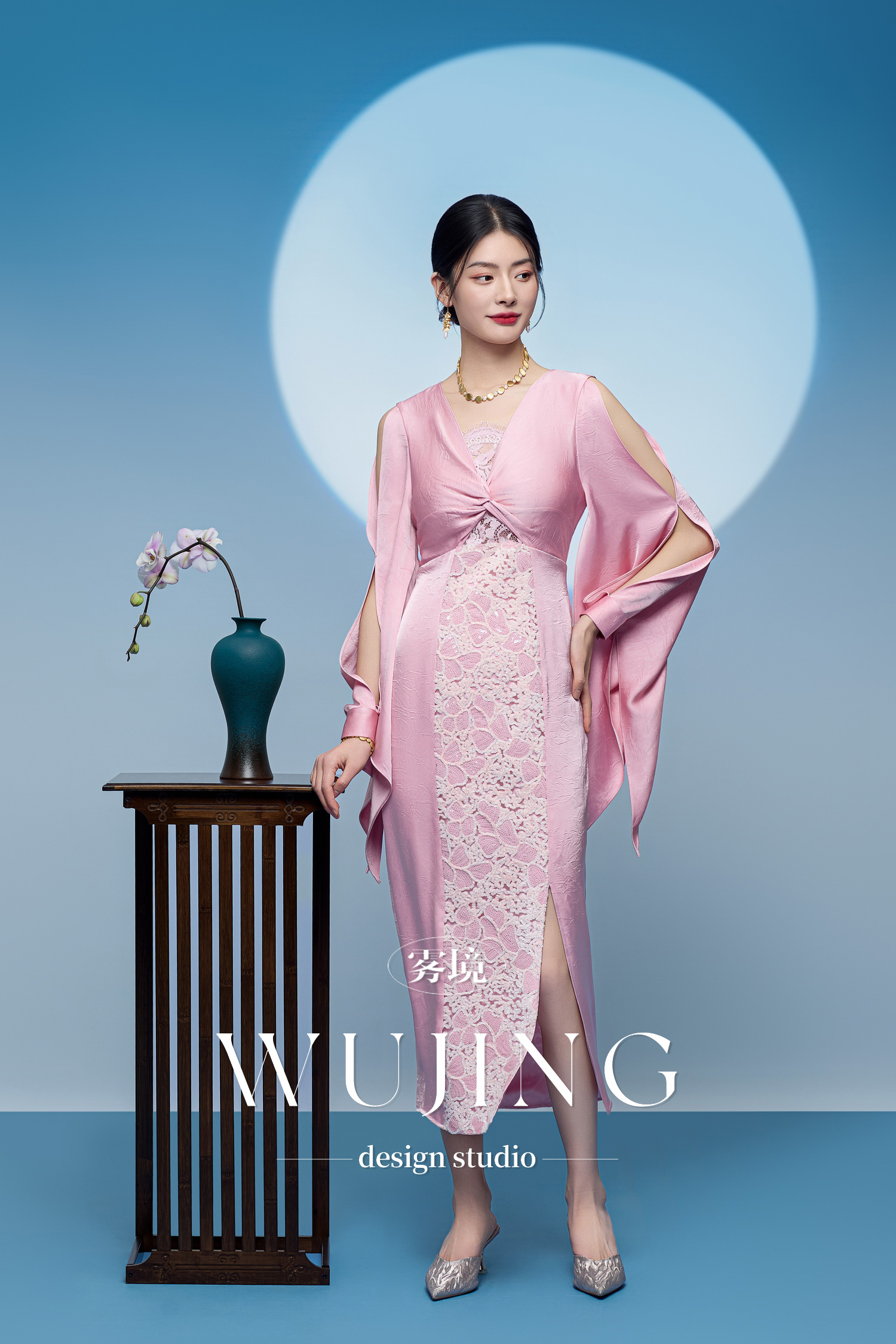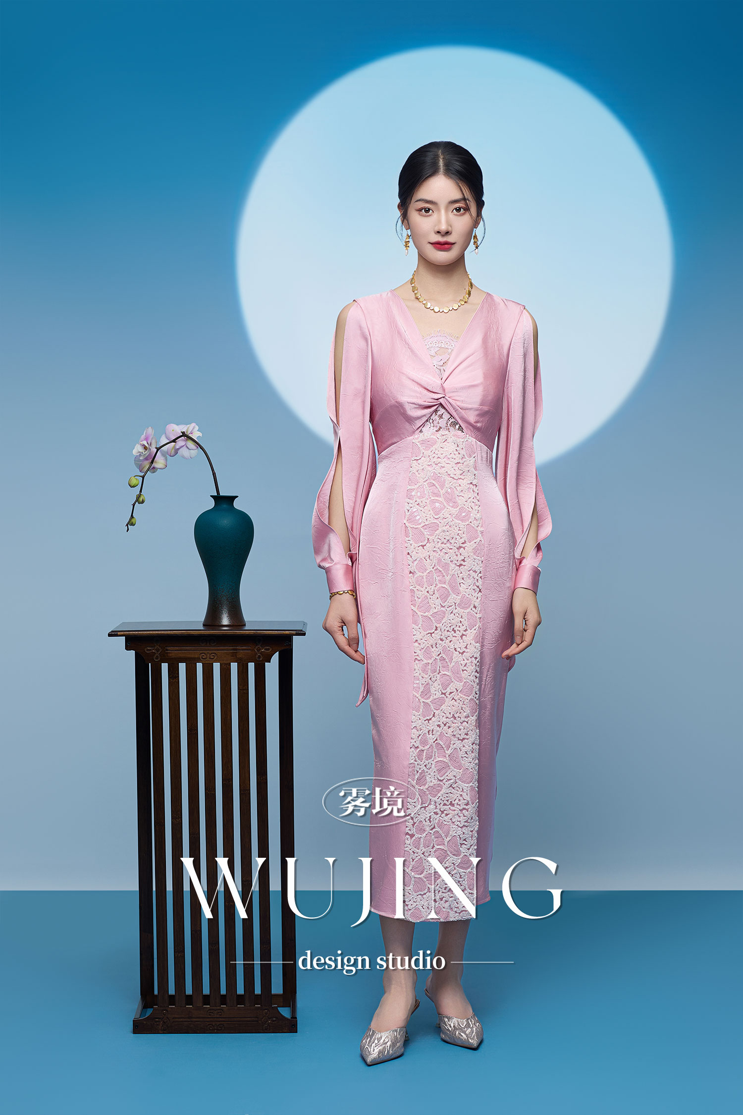 3205087 樱樱桃夭 重磅股线蕾丝/进口醋酸缎/韩国进口水晶乔其纱连衣裙 雾境