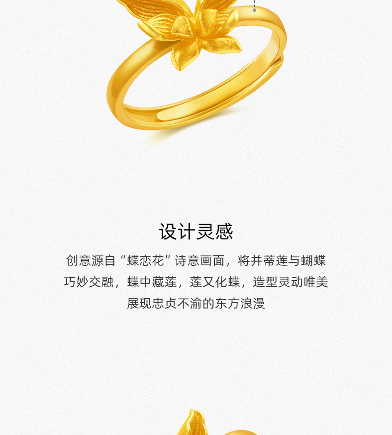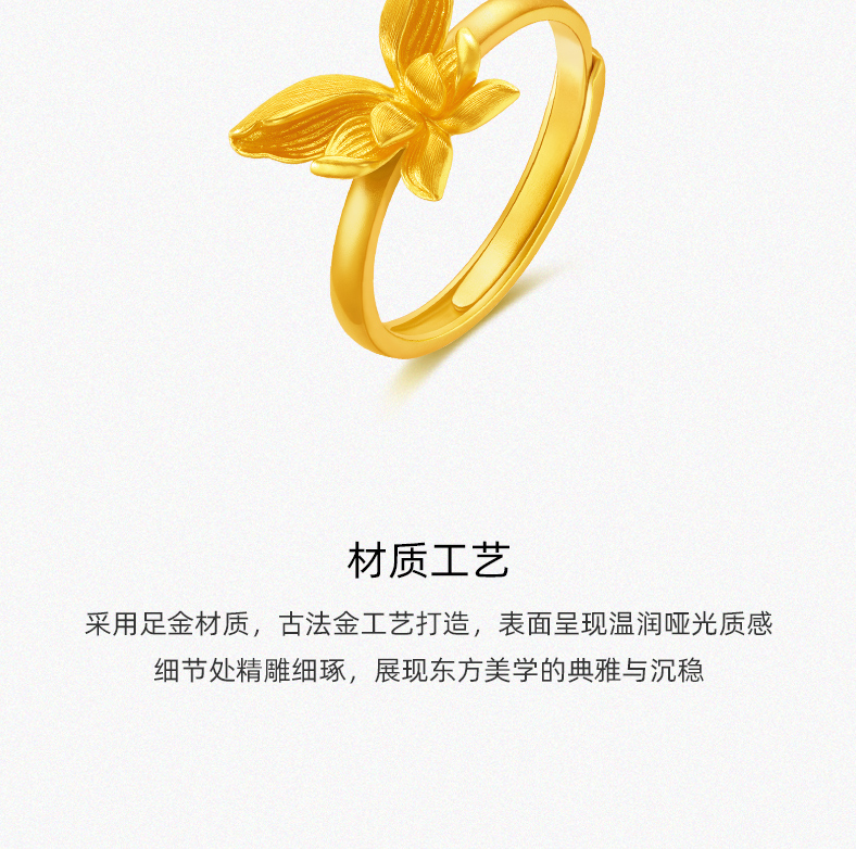 【预售】「美好金」蝶恋同心足金戒指 黄金蝴蝶指环