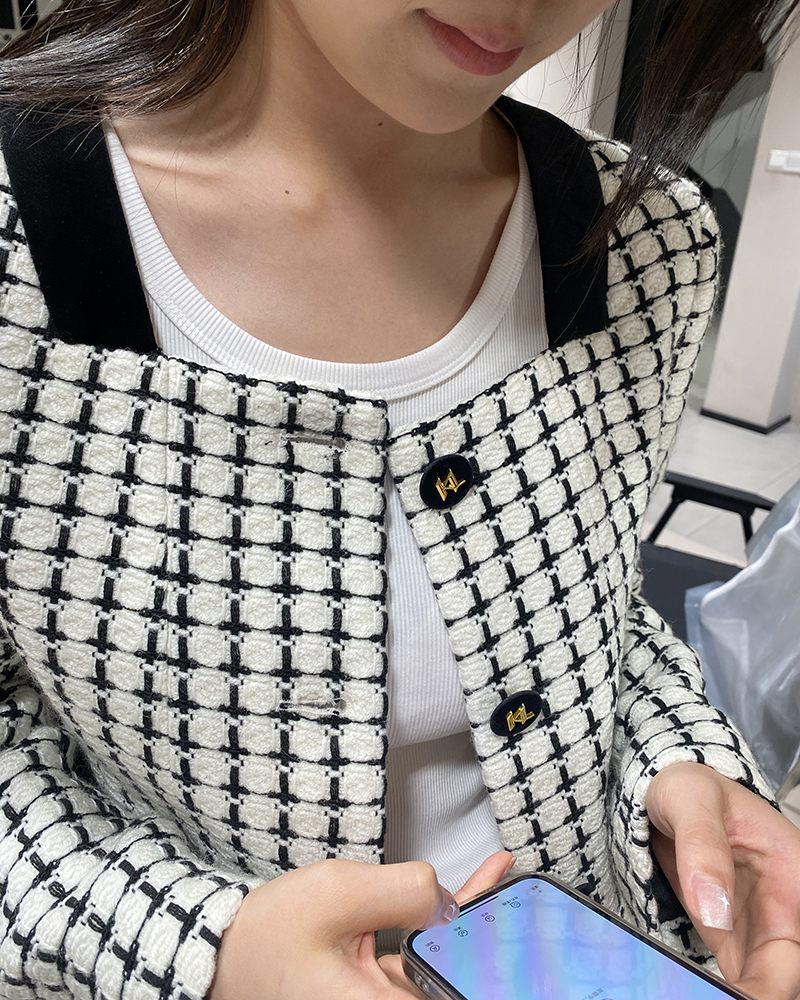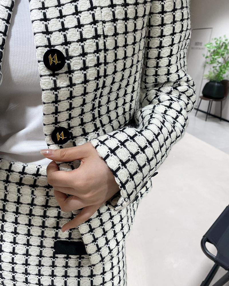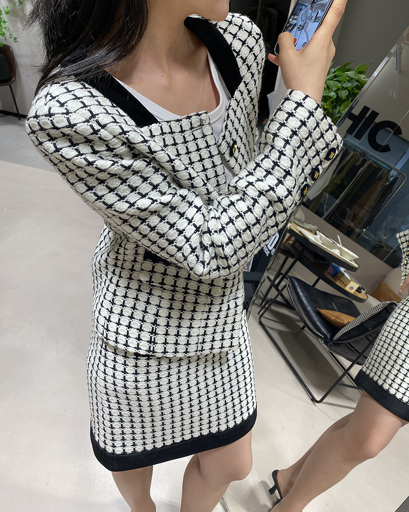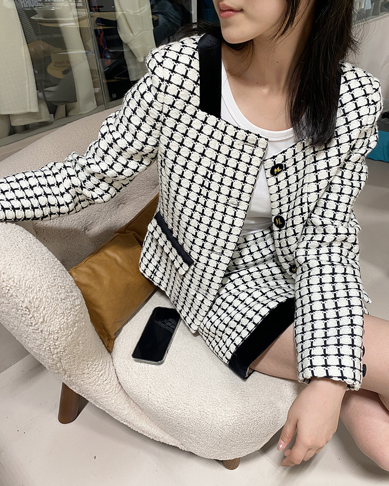 现货 THS 6.21- 拉格菲尔·德重磅棋盘格花呢香风短外套 半裙 BF1014 BK1141