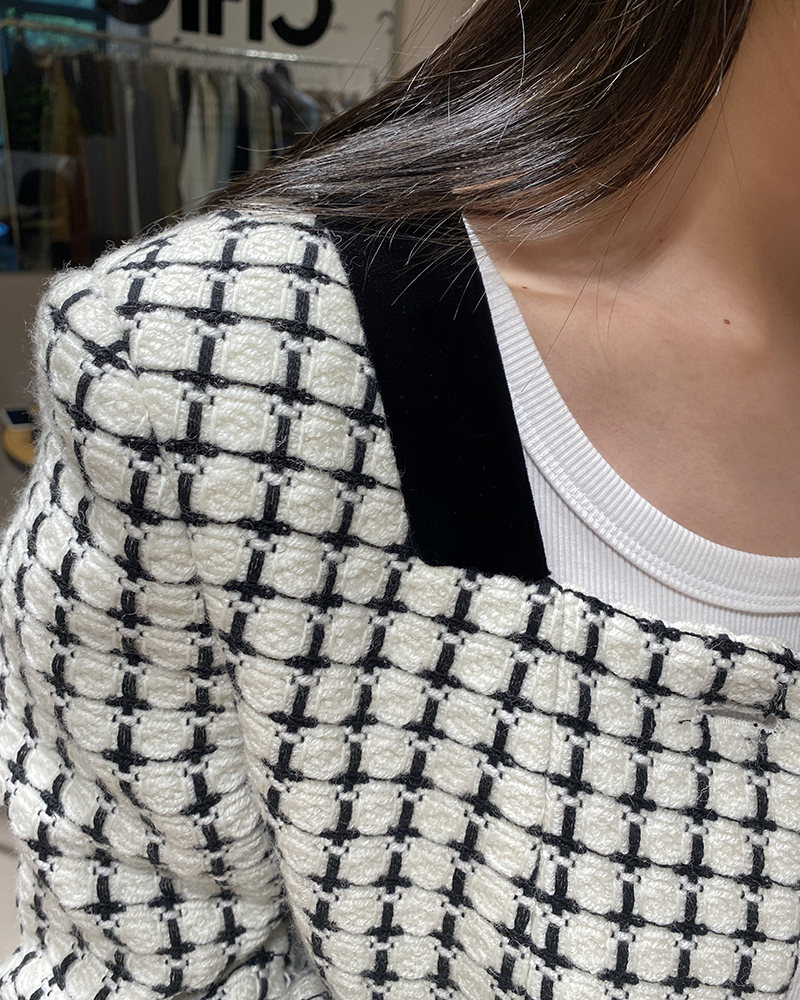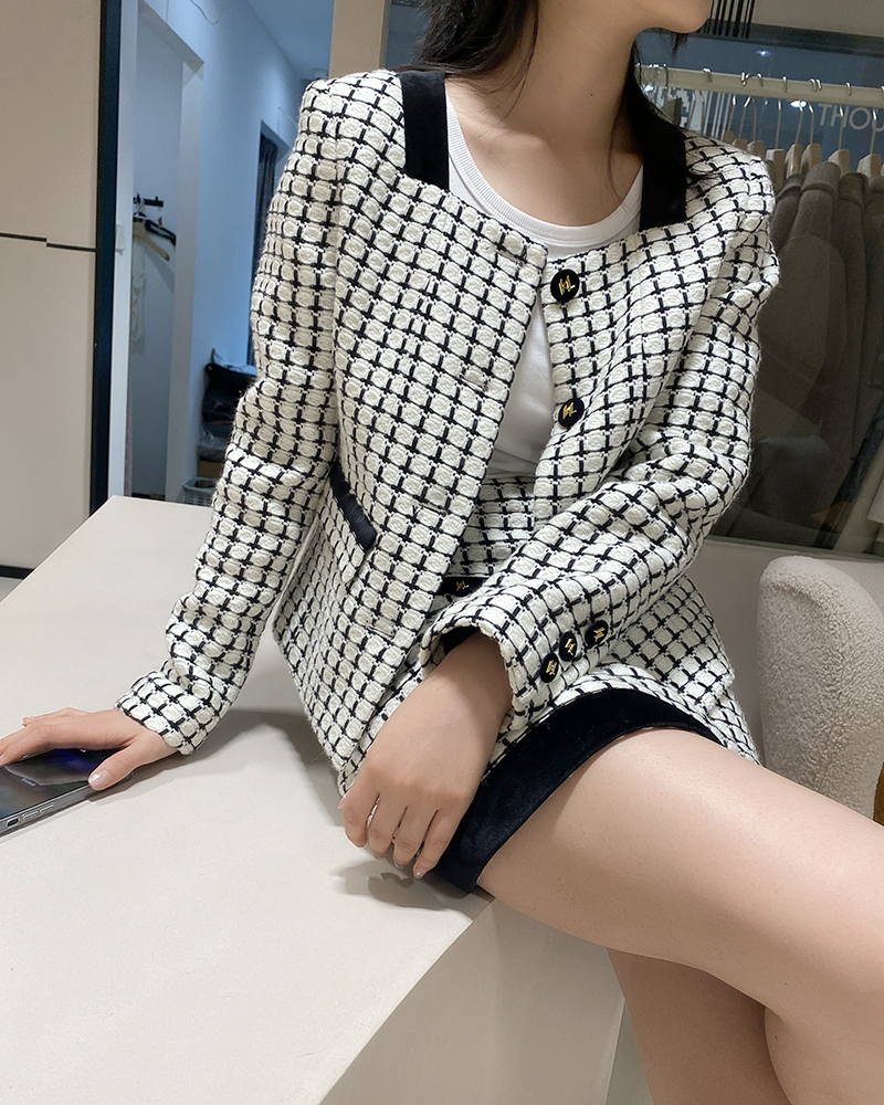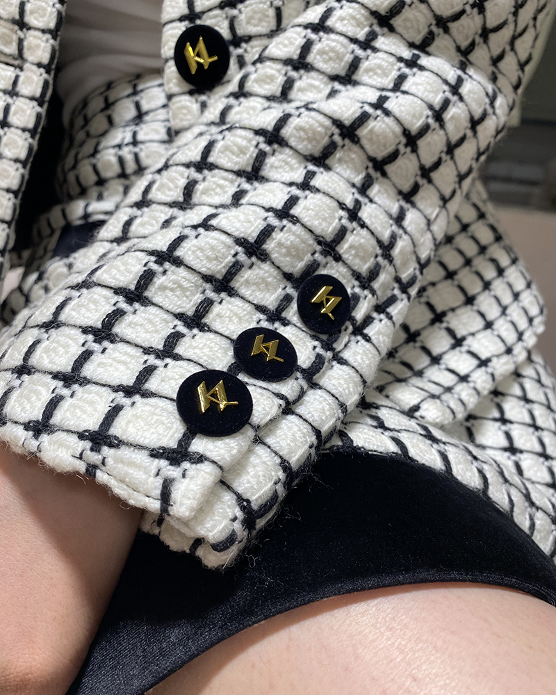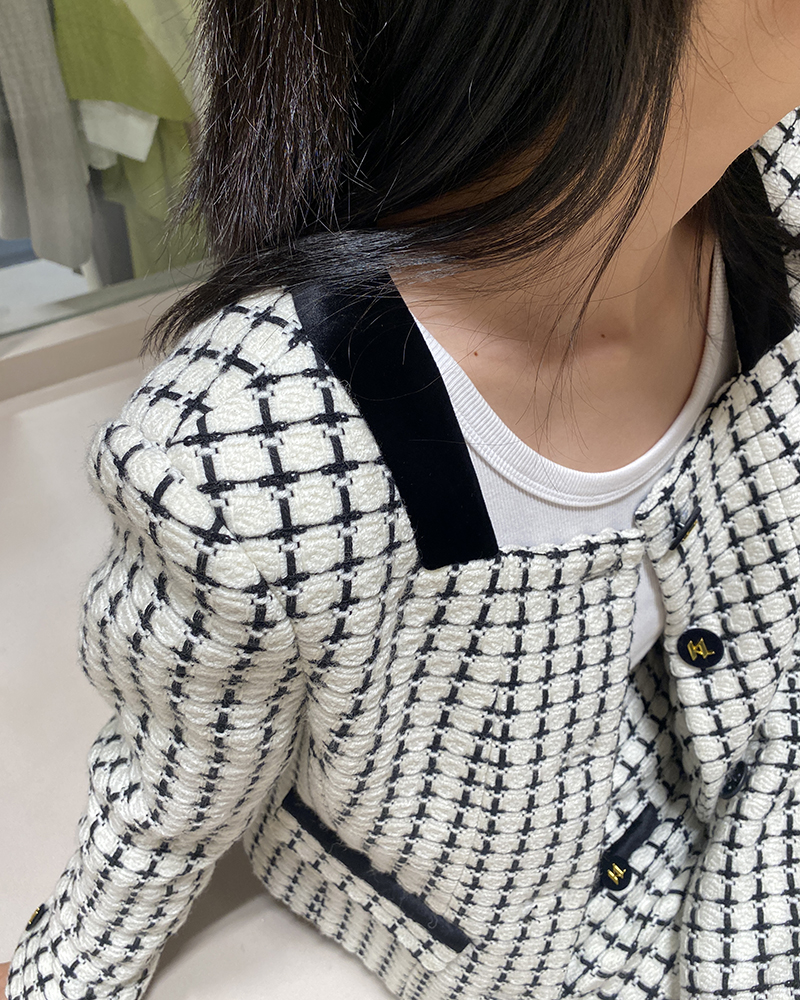现货 THS 6.21- 拉格菲尔·德重磅棋盘格花呢香风短外套 半裙 BF1014 BK1141