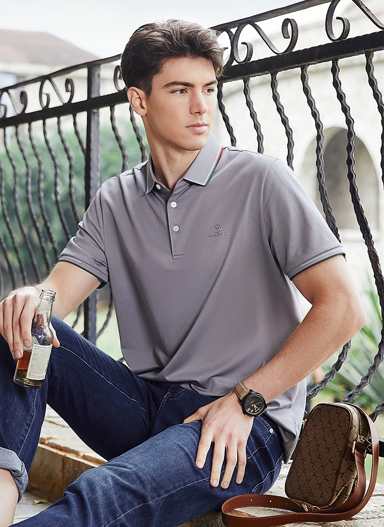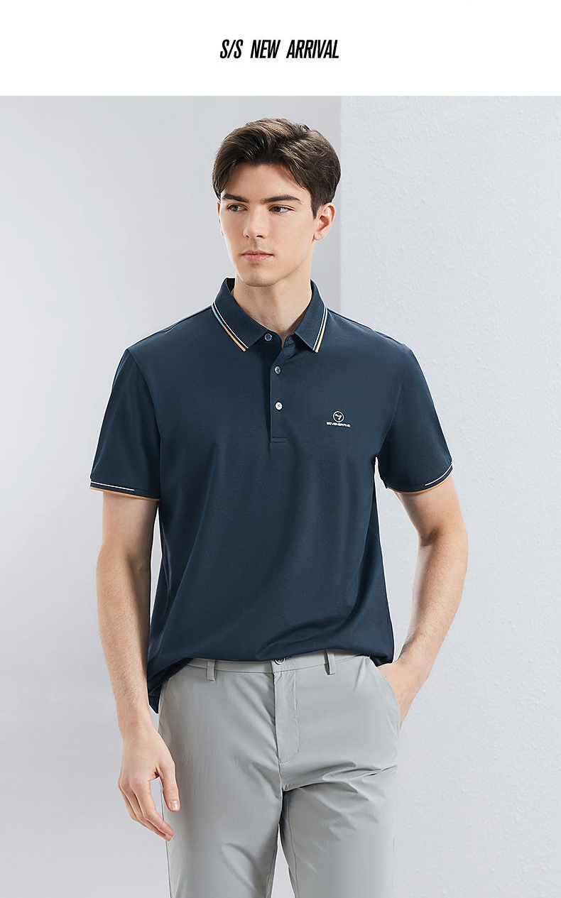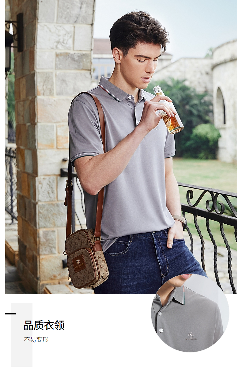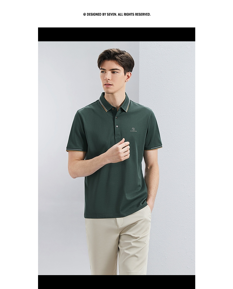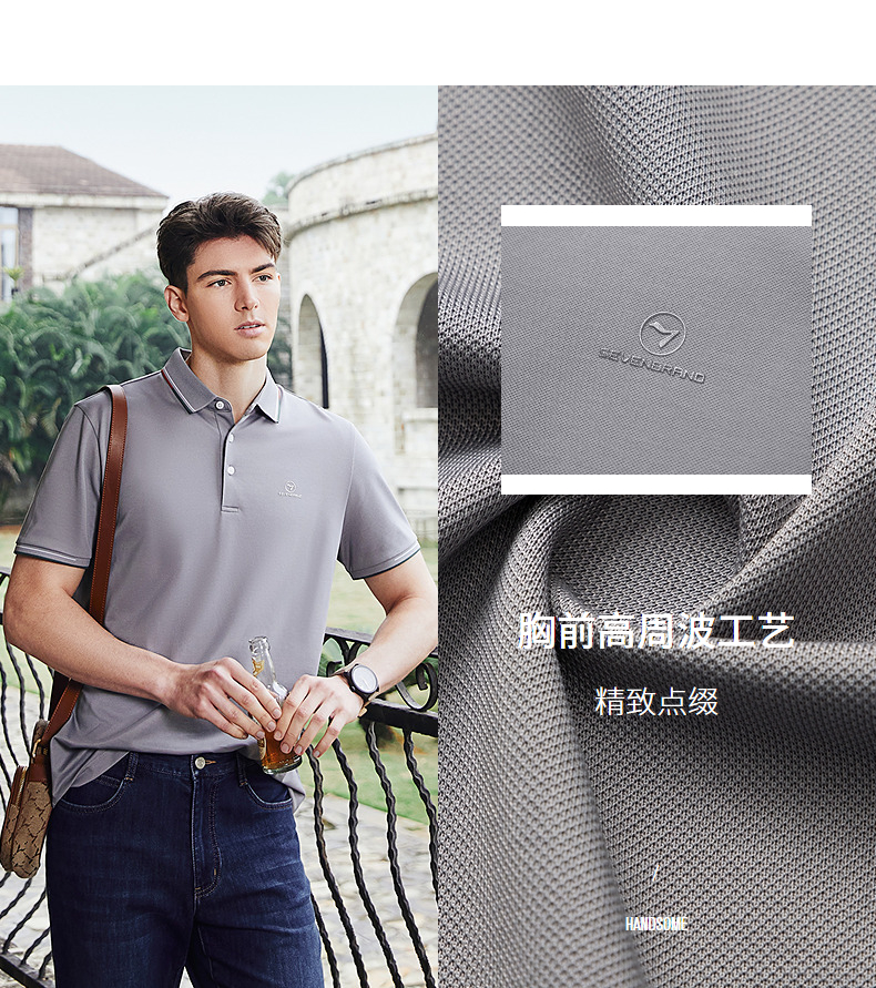 【不变形领】【5A抗菌2A防螨】柒牌短袖男polo衫夏季新款含桑蚕丝透气翻领T恤 126T70400