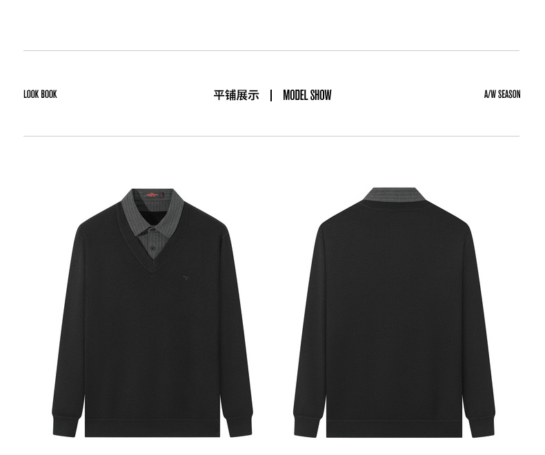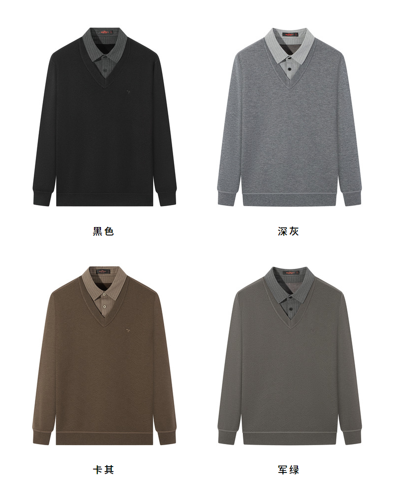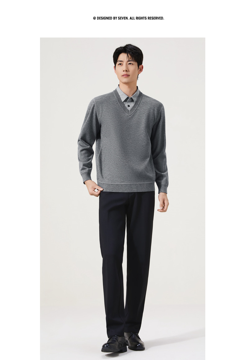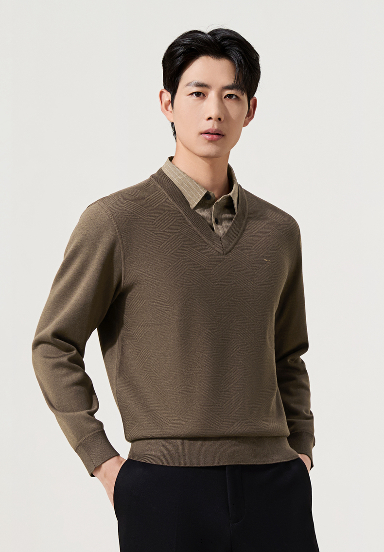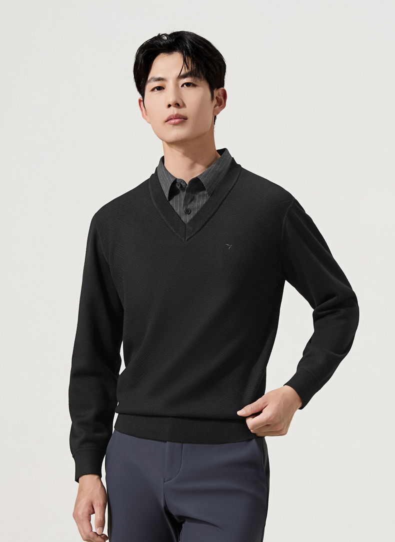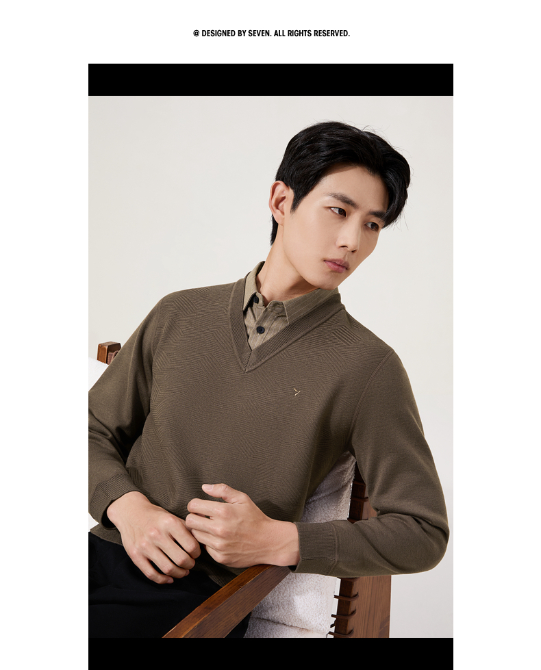 【含羊毛】柒牌套头毛衫加绒男士秋冬新款可机洗抗静电保暖毛衣129Y70860