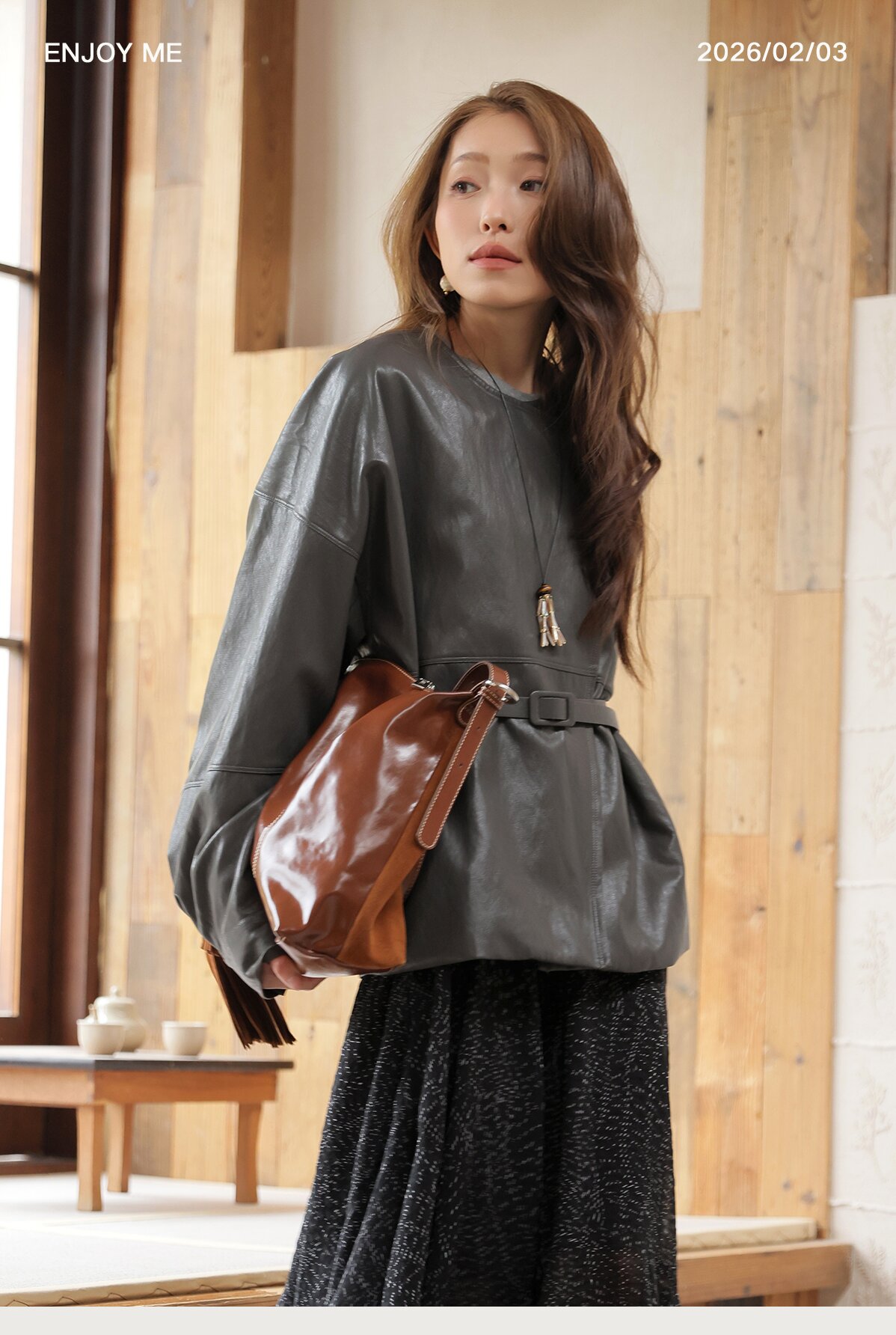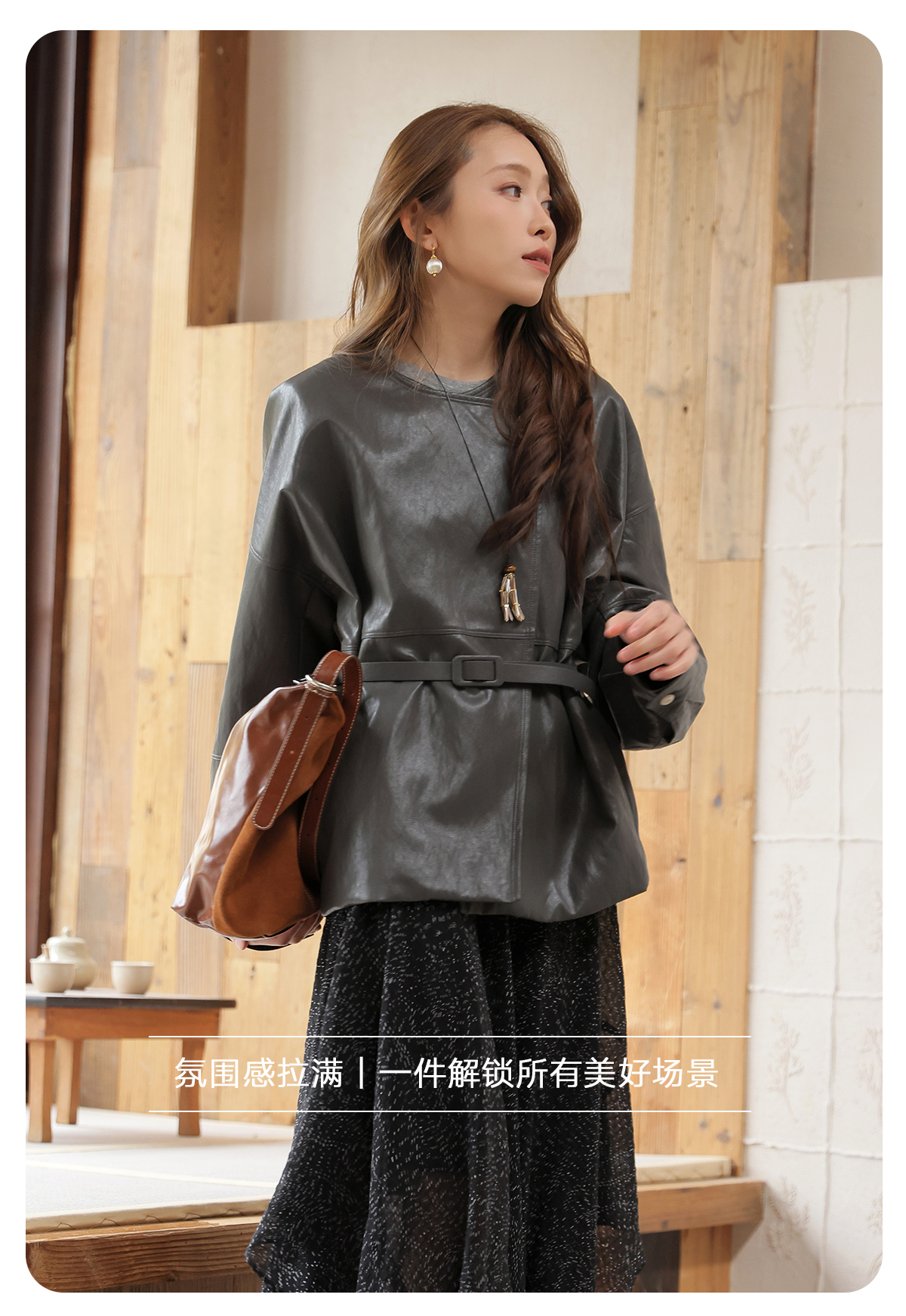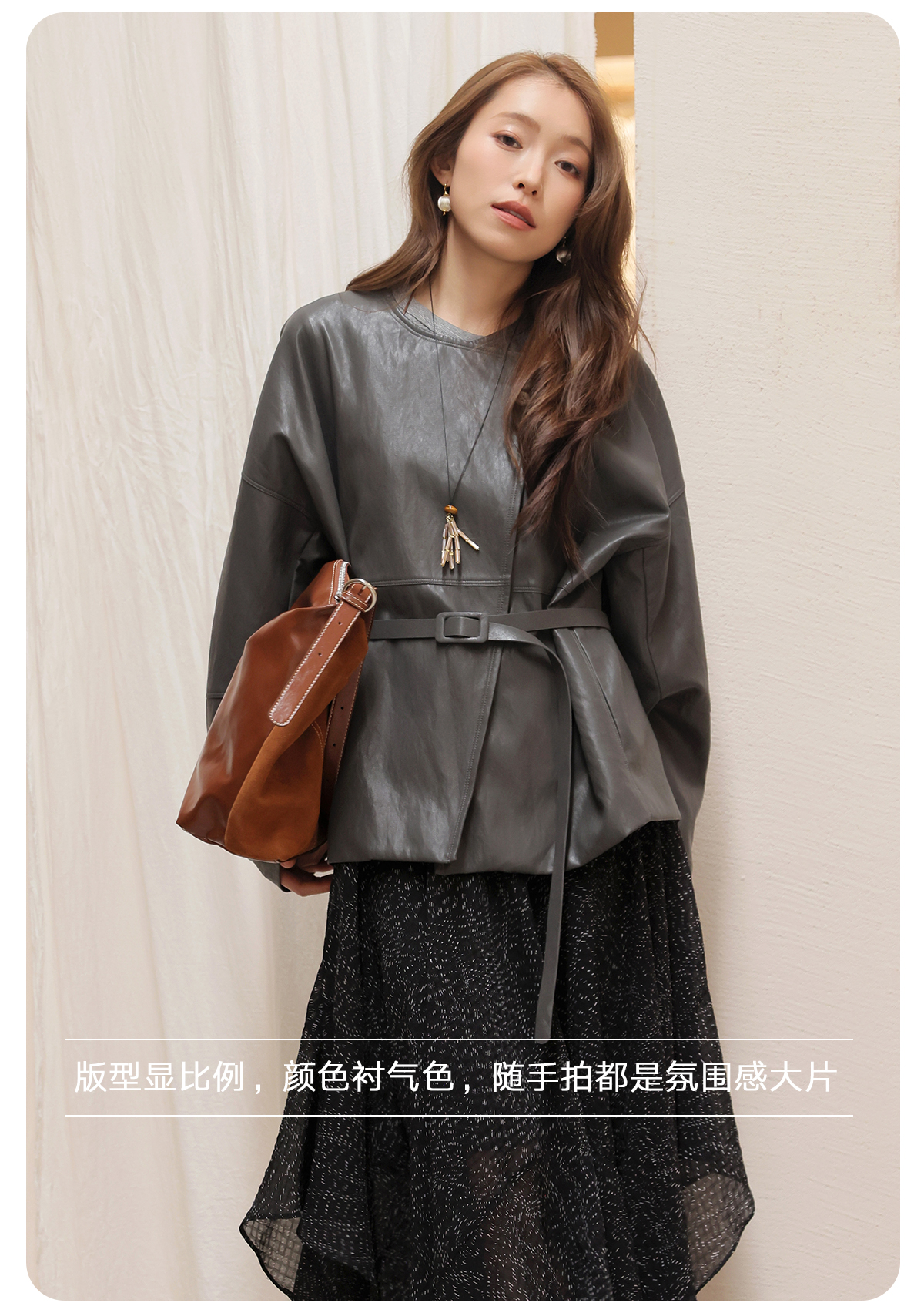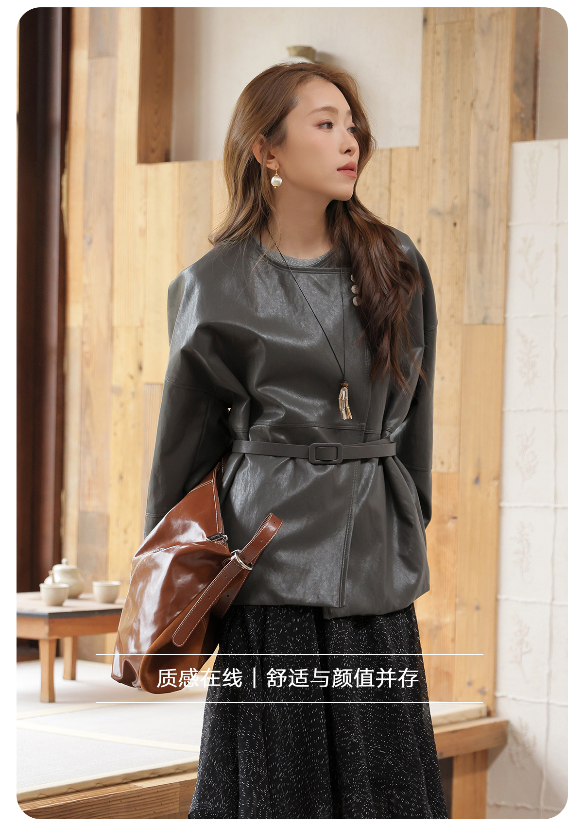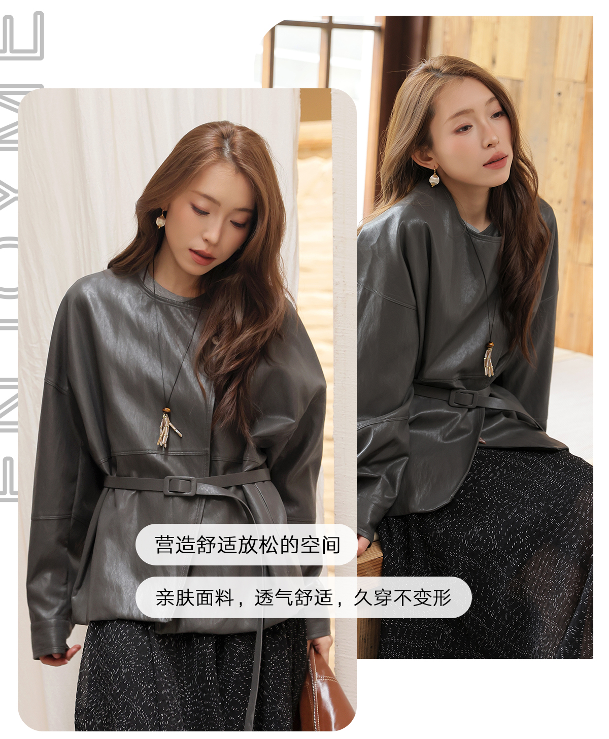 【门店同款】ENJOY春季“序光之旅”配腰带斜扣皮衣 169599856
