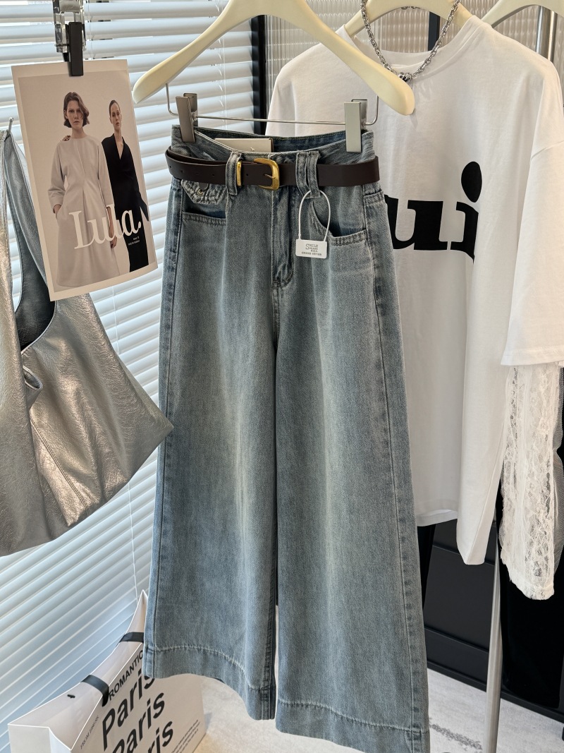 【怀旧浅蓝九分牛仔裤】宽松直筒裤 显瘦窄版阔腿裤 小个子九分裤子