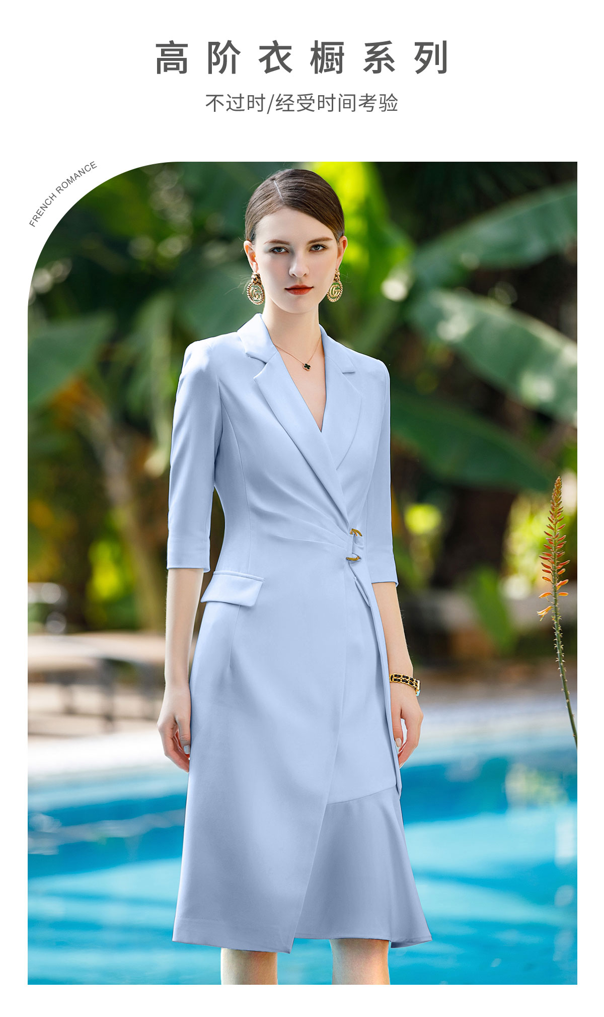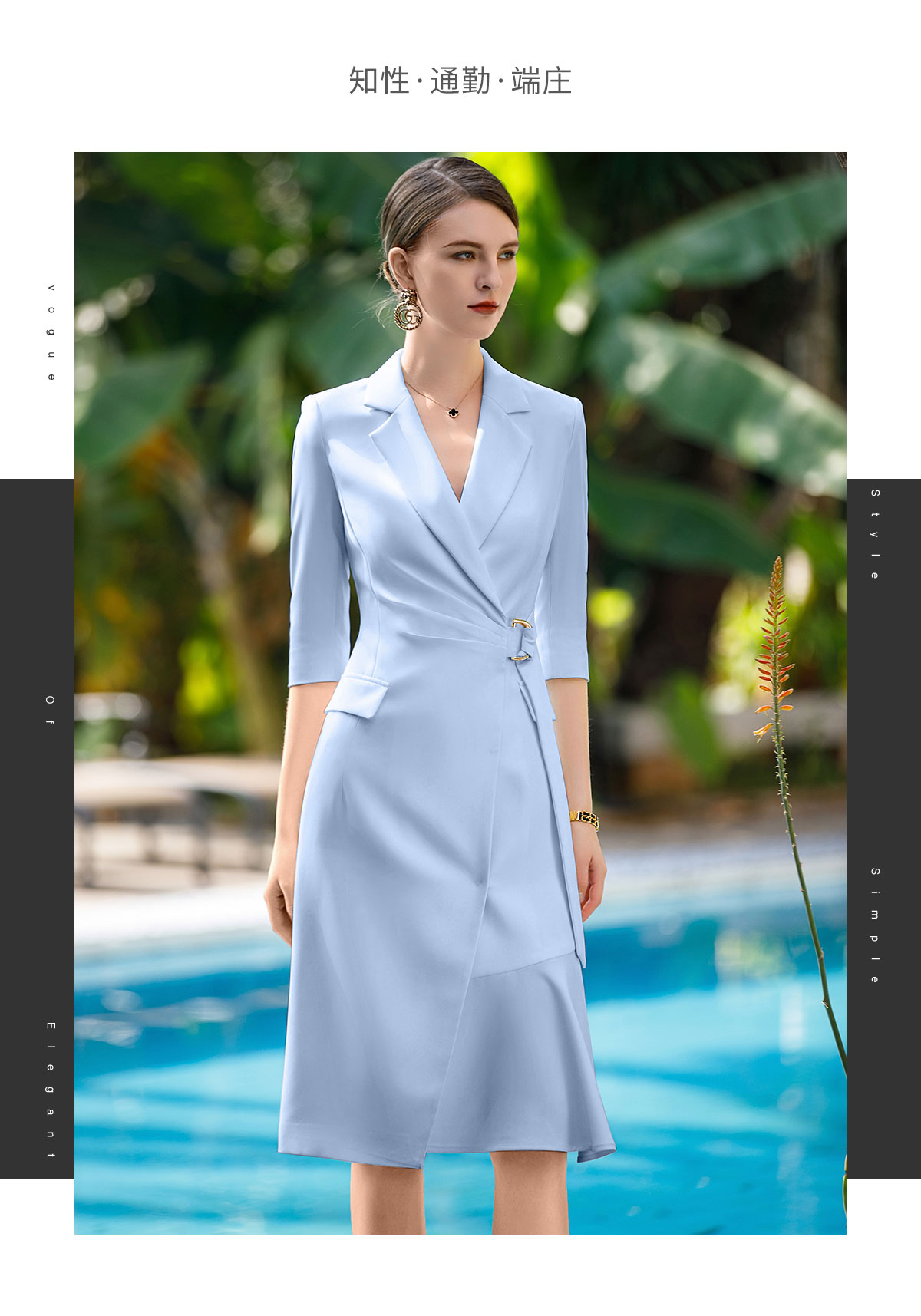 IWY/蓝色高端连衣裙女气质V领修身显瘦医美工服美容院职业装Q772-L