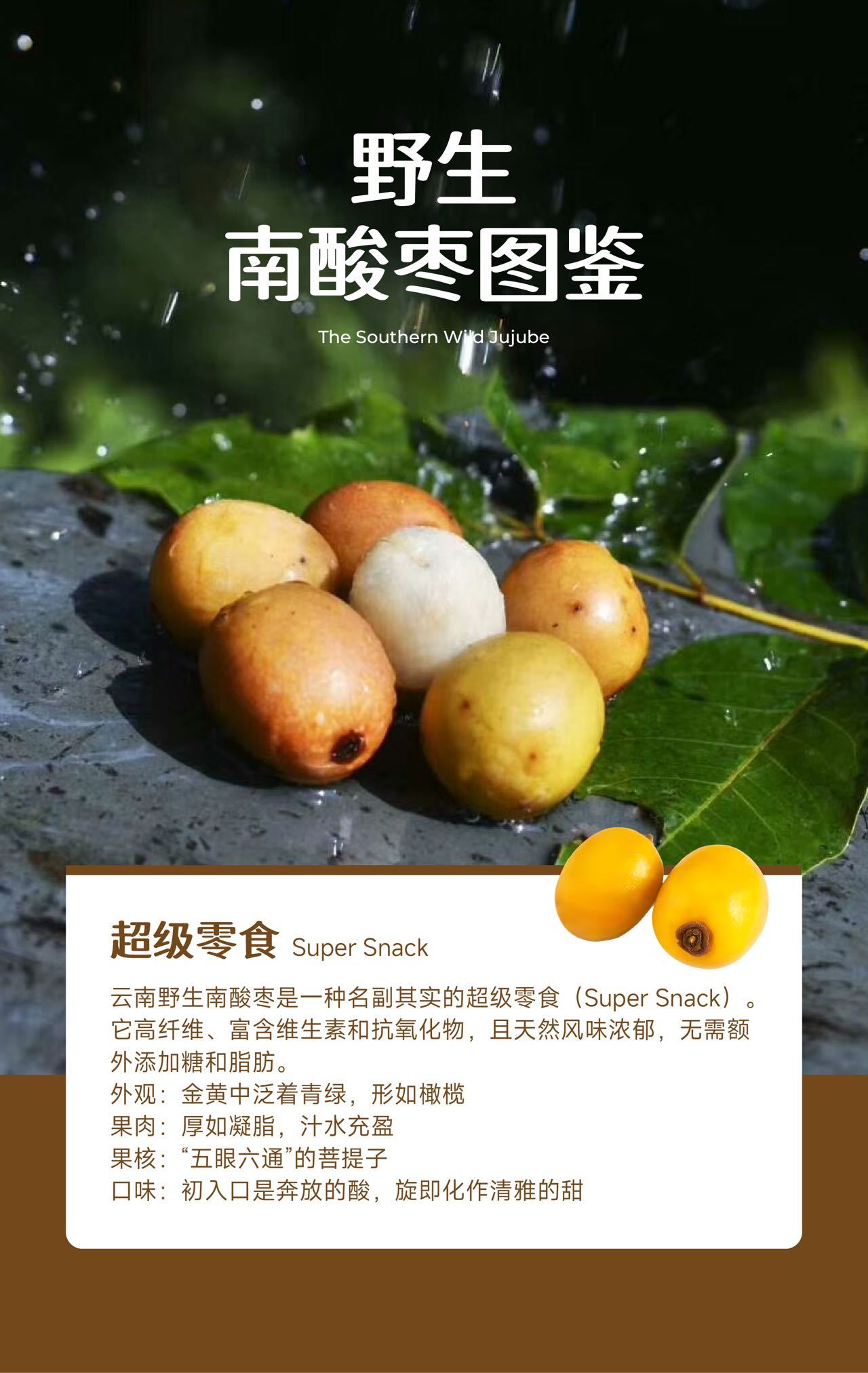 我们坚信,独特的风味,源于顶级的原料,我们选用云南秘境的营养小金矿---云南野生南酸枣。