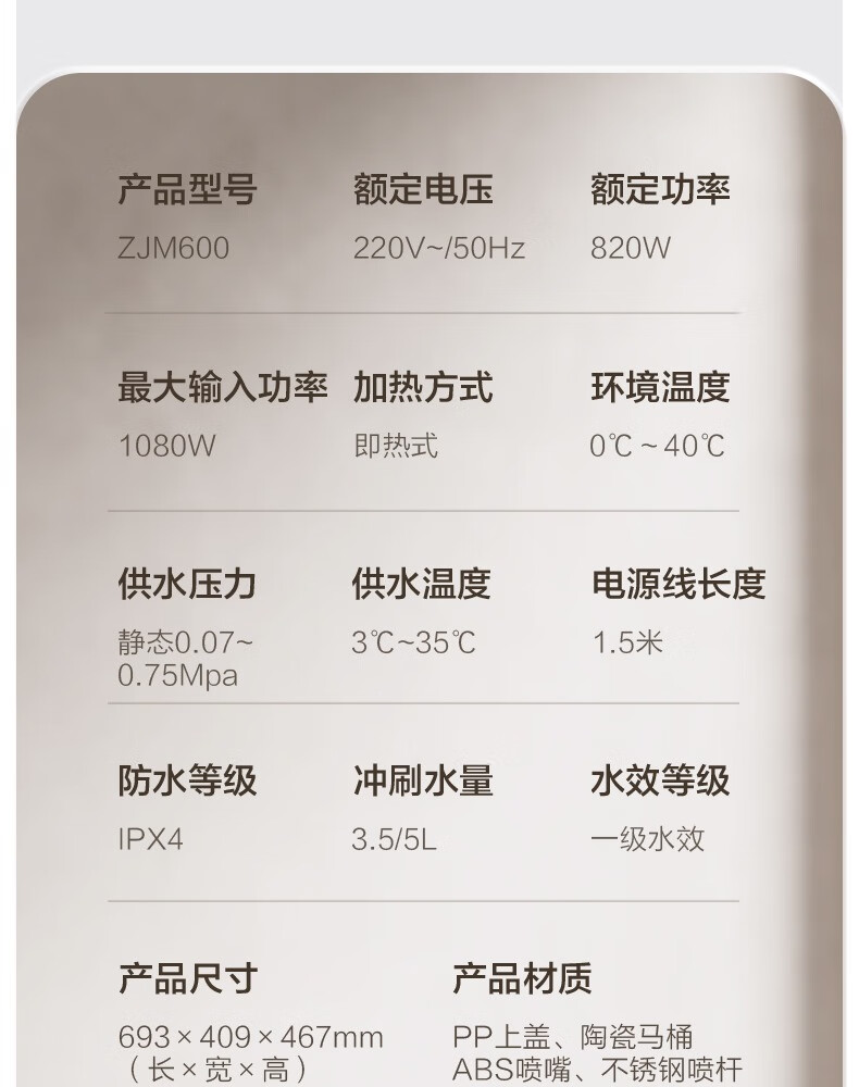 九牧(JOMOO)无棱脚感翻盖智能马桶ZJM600 305/300mm