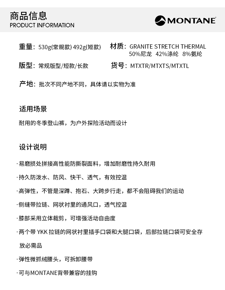 MONTANE 盟泰恩TENACITY XT软壳裤 防水防风男款户外裤 耐磨高弹徒步裤子