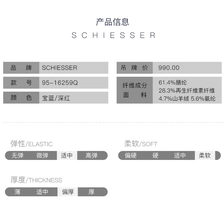 - 来自德国的SCHIESSER舒雅,专注做内衣一百四十余年,不遗余力的材料创新,因材而异的专业剪裁,健康环保的加工技术以及充满文化关注的时尚主题,做你认识之外的舒适内衣。