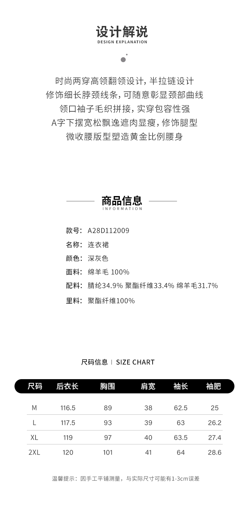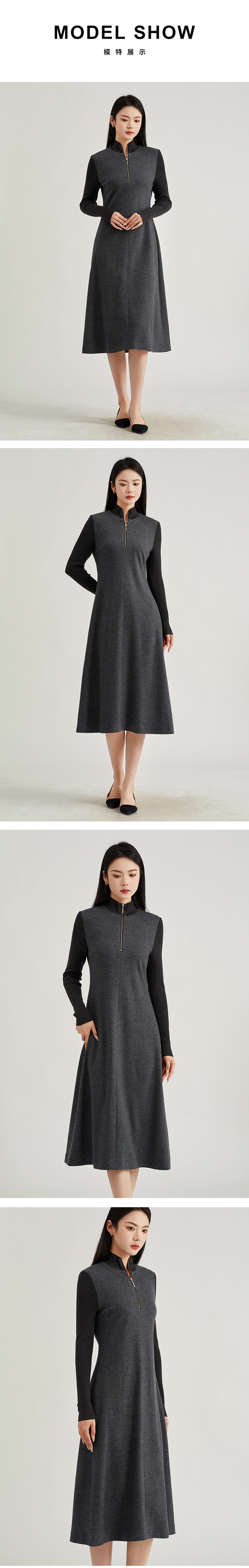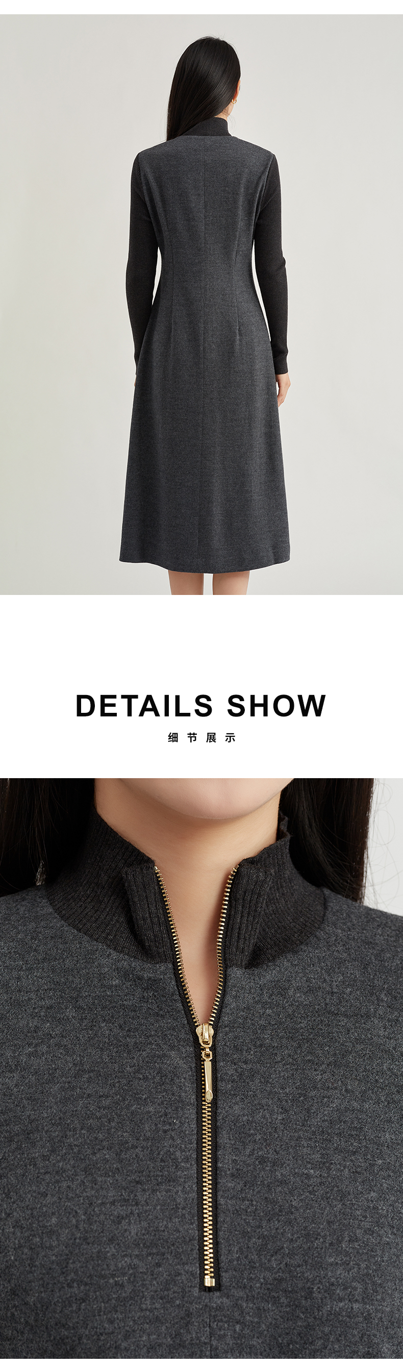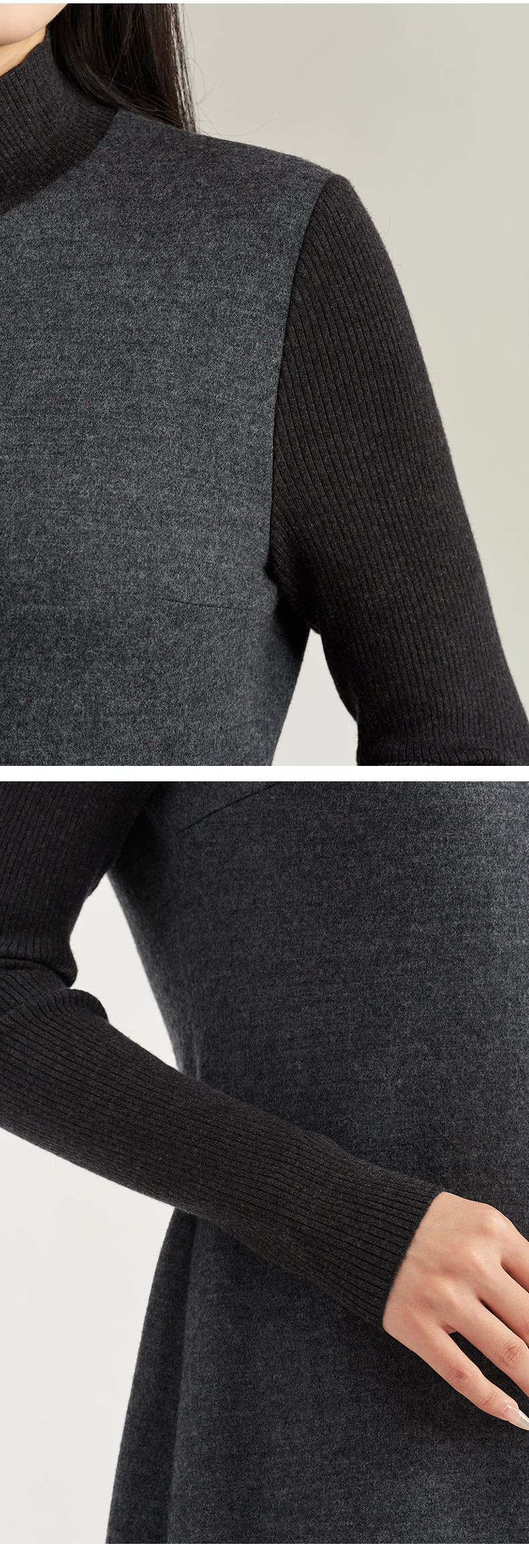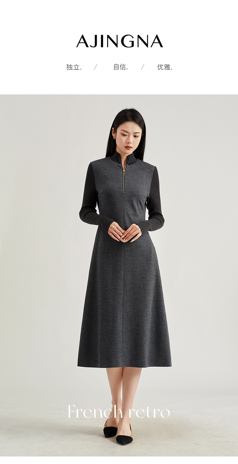 【商场同款】阿菁娜时尚两穿高领翻领针织连衣裙A28D112009