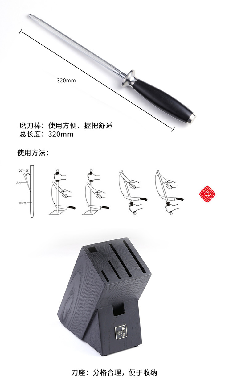 张小泉龙雀系列不锈钢刀具七件套装 菜刀套装 套刀D30910100