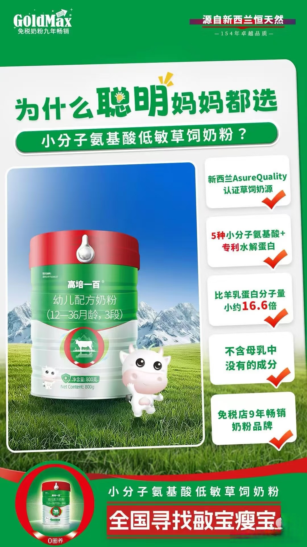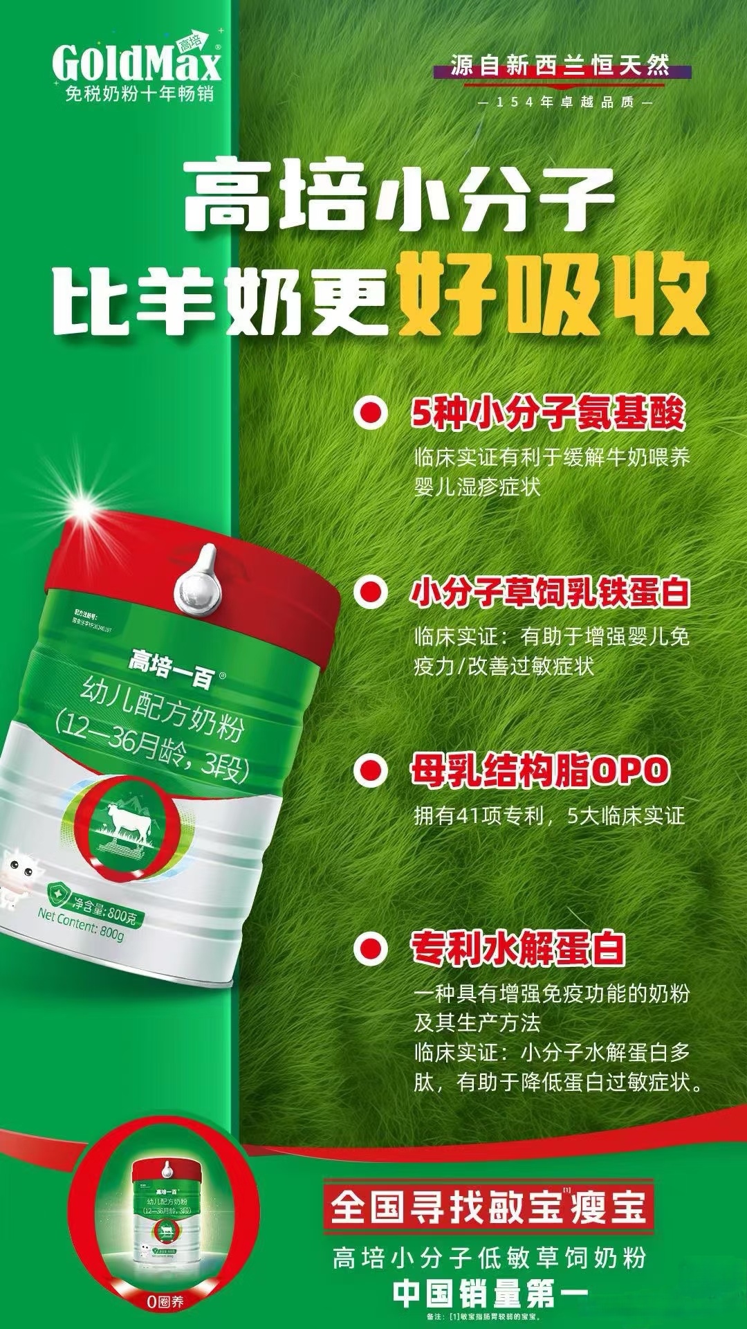 高培一百 A2-β酪蛋白 草饲奶 双重水解小分子+氨基酸小分子 1段
