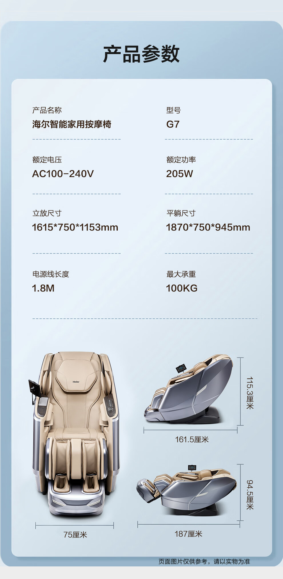 海尔(Haier)按摩椅豪华智能双芯家用2025十大品牌多功能零重力太空舱电动按摩沙发椅生日礼物G7-101-HU1