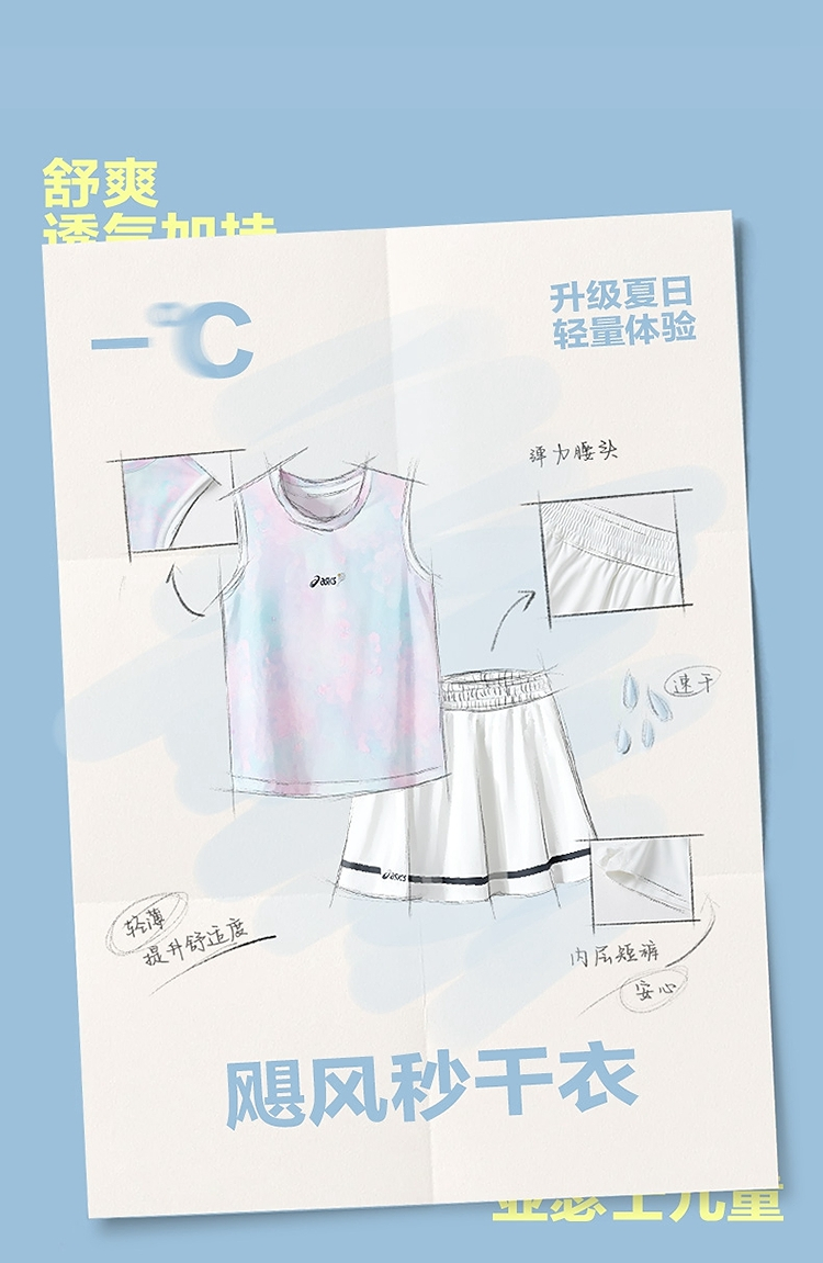 ASICS/亚瑟士童装25年夏季新款女童吸湿速干针织网球套装舒适高弹