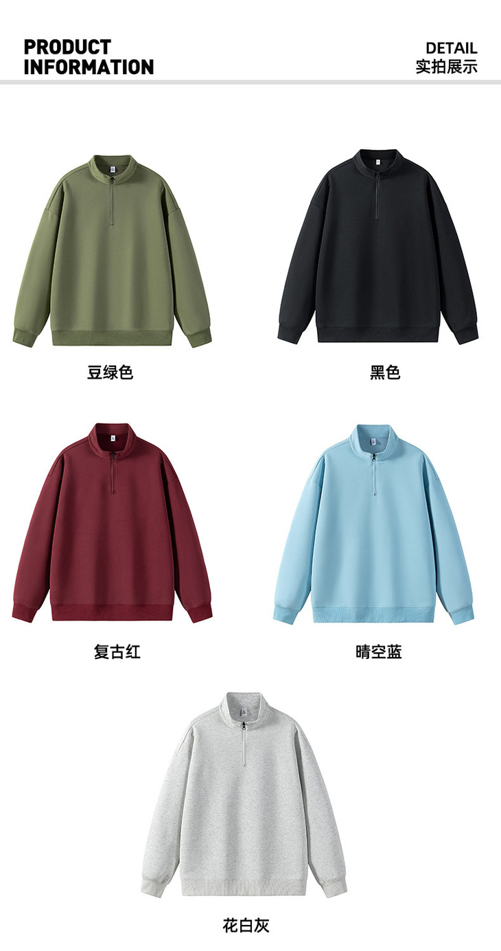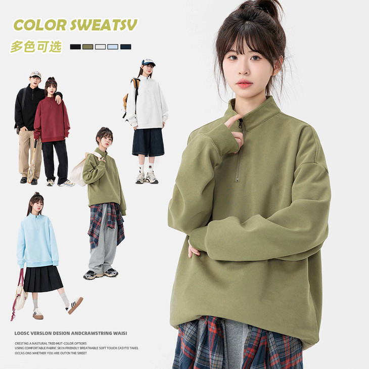 斯辰唯佳情侣半高领拉链情侣卫衣 春季首发~这件卫衣太香了!今年之最爱 黑色/豆绿/复古红/晴空蓝/花白灰五个颜色可选 春季首发数量有限截单比较快 平铺超级耐看经典上身绝杀 各种风格都能轻易把控超 单穿内搭都可以