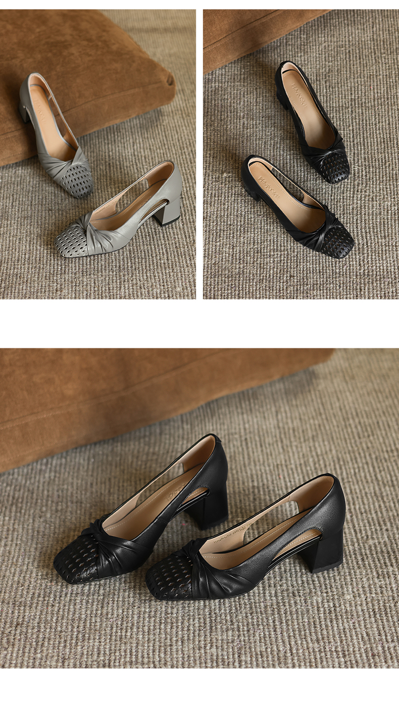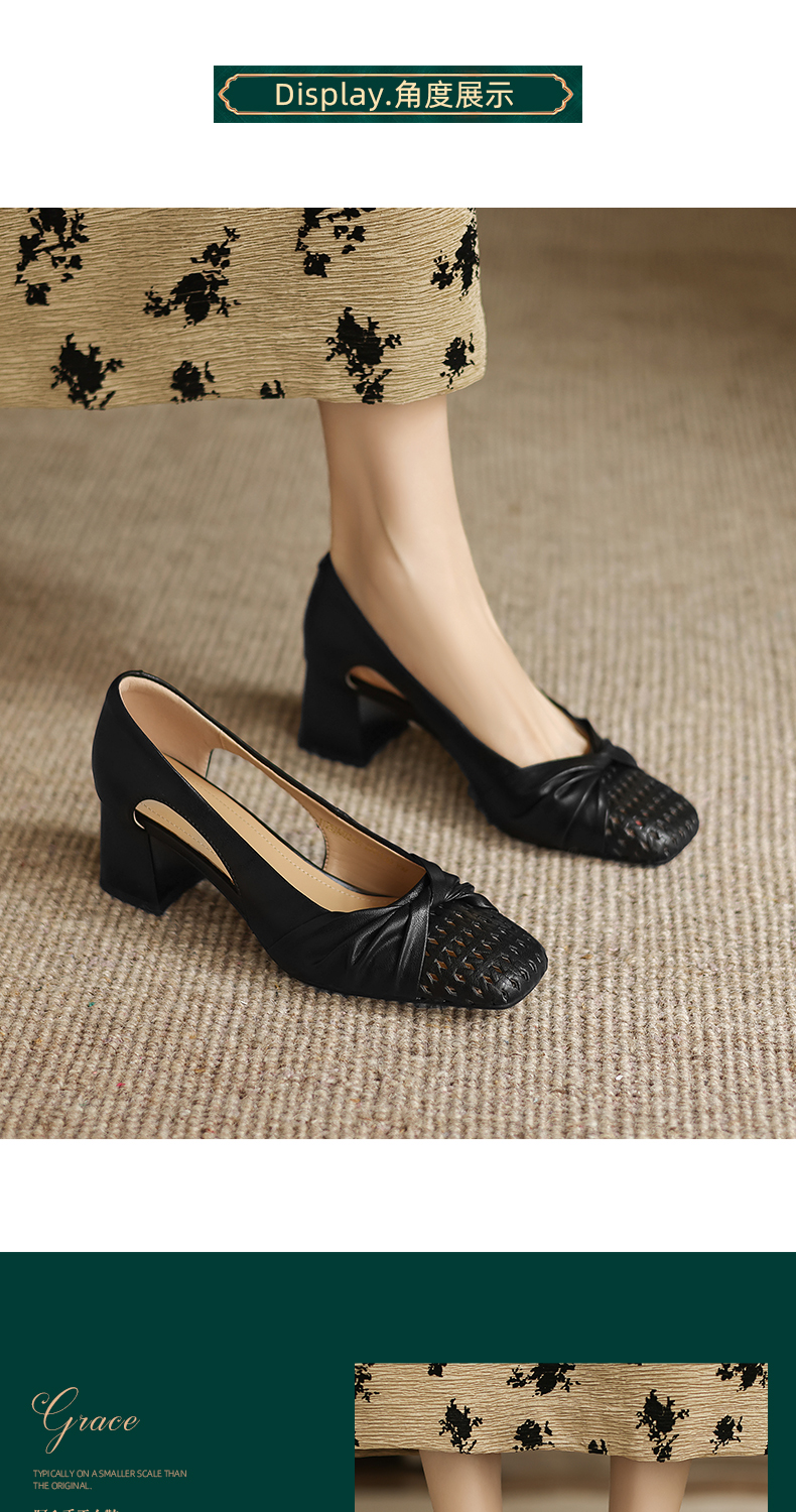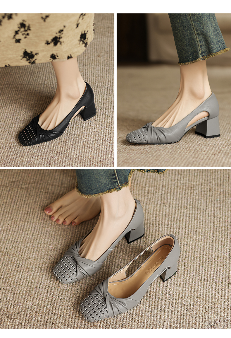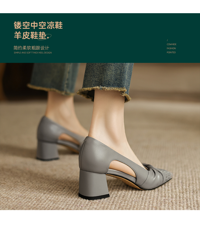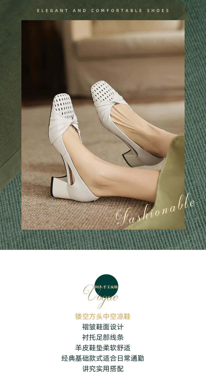 阿么手工女鞋褶皱侧空凉鞋女款2026新款爆款气质鞋子夏外穿5.5CM