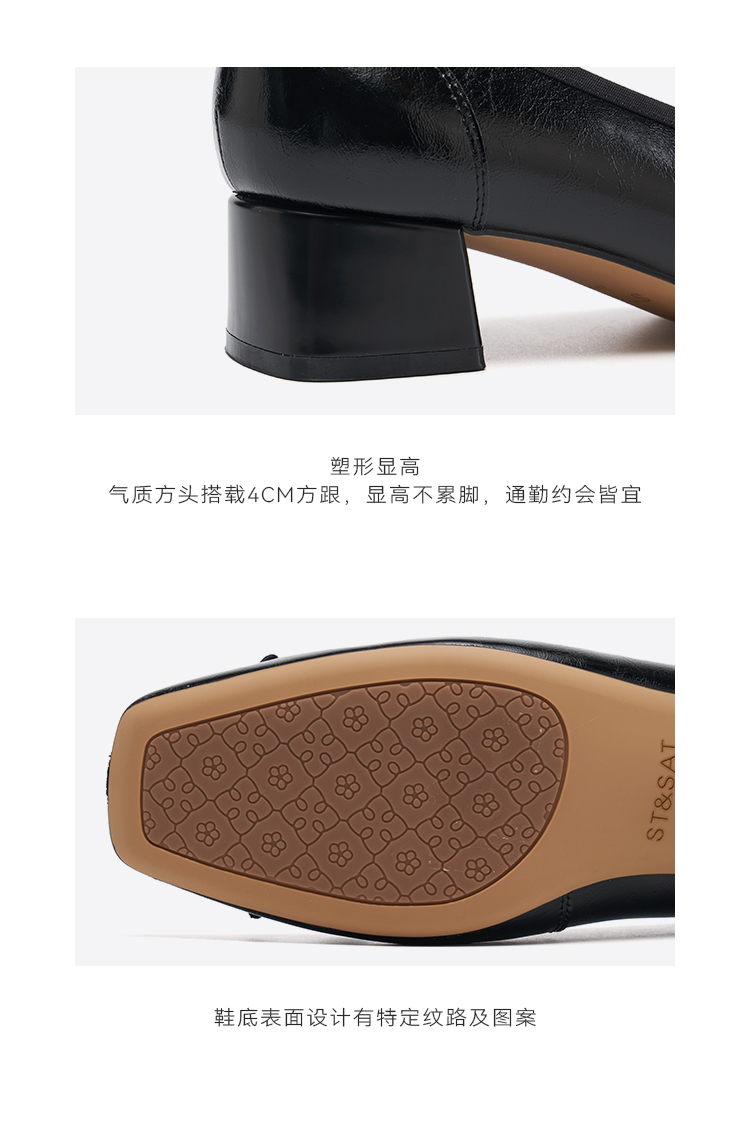 星期六26春新款法式高级感蝴蝶结粗跟单鞋SSE1111083