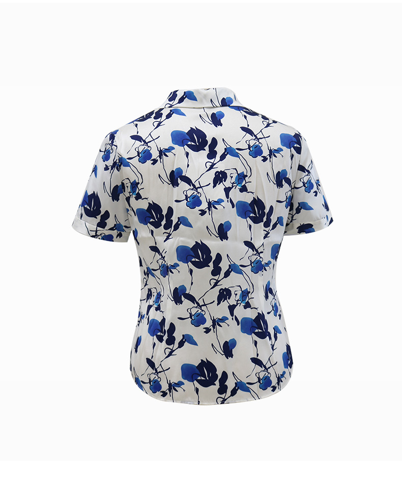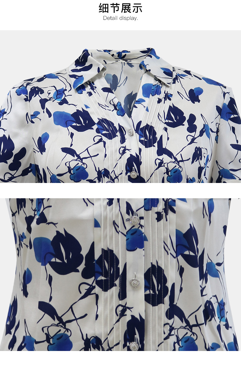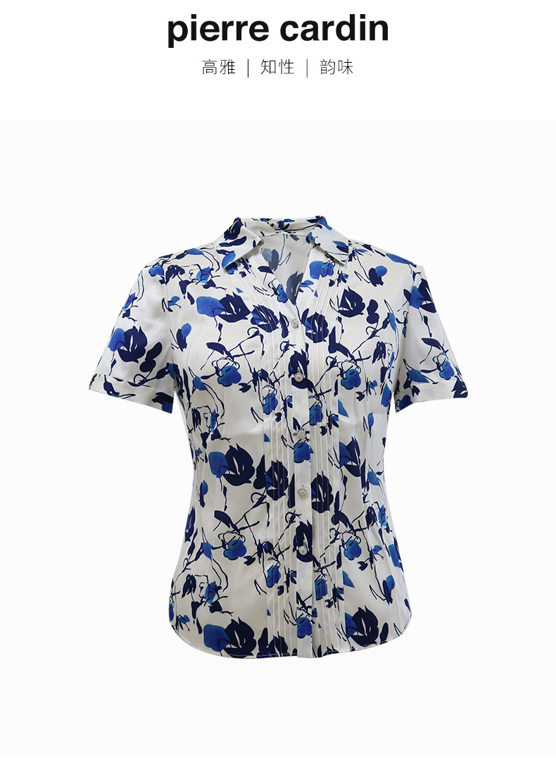 皮尔卡丹女装衬衫夏季新款蓝花色绣花短袖桑蚕丝衬衫P4231A4014L3