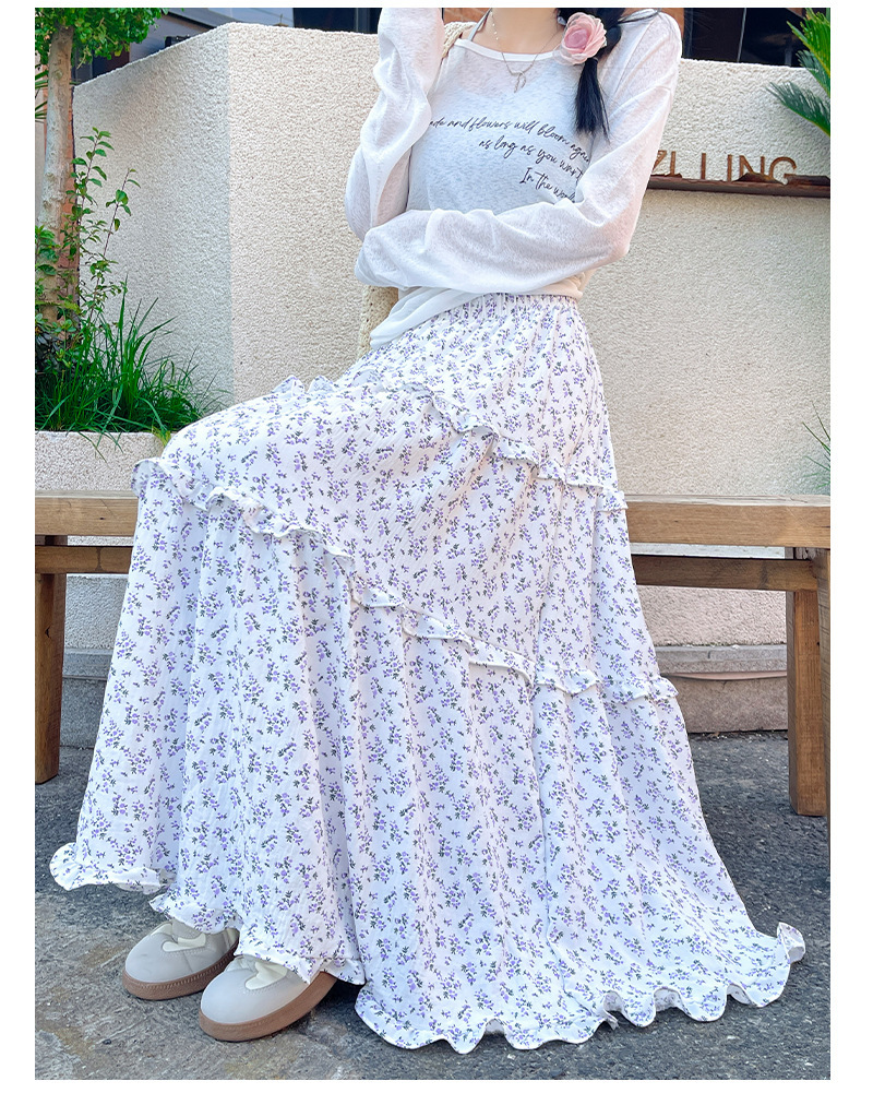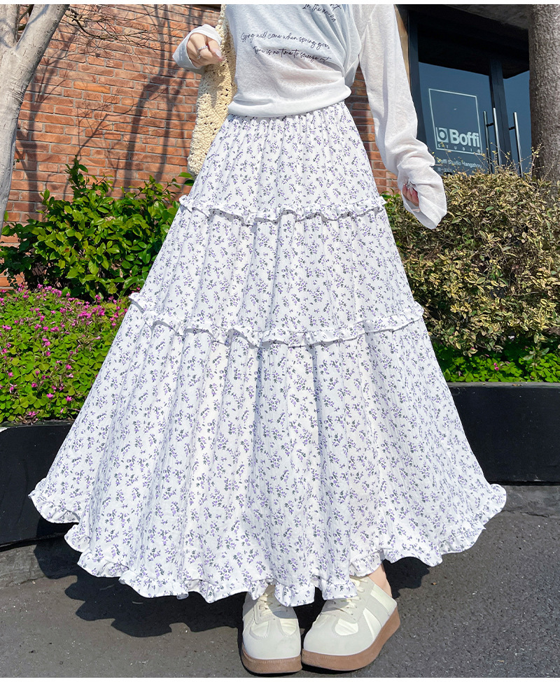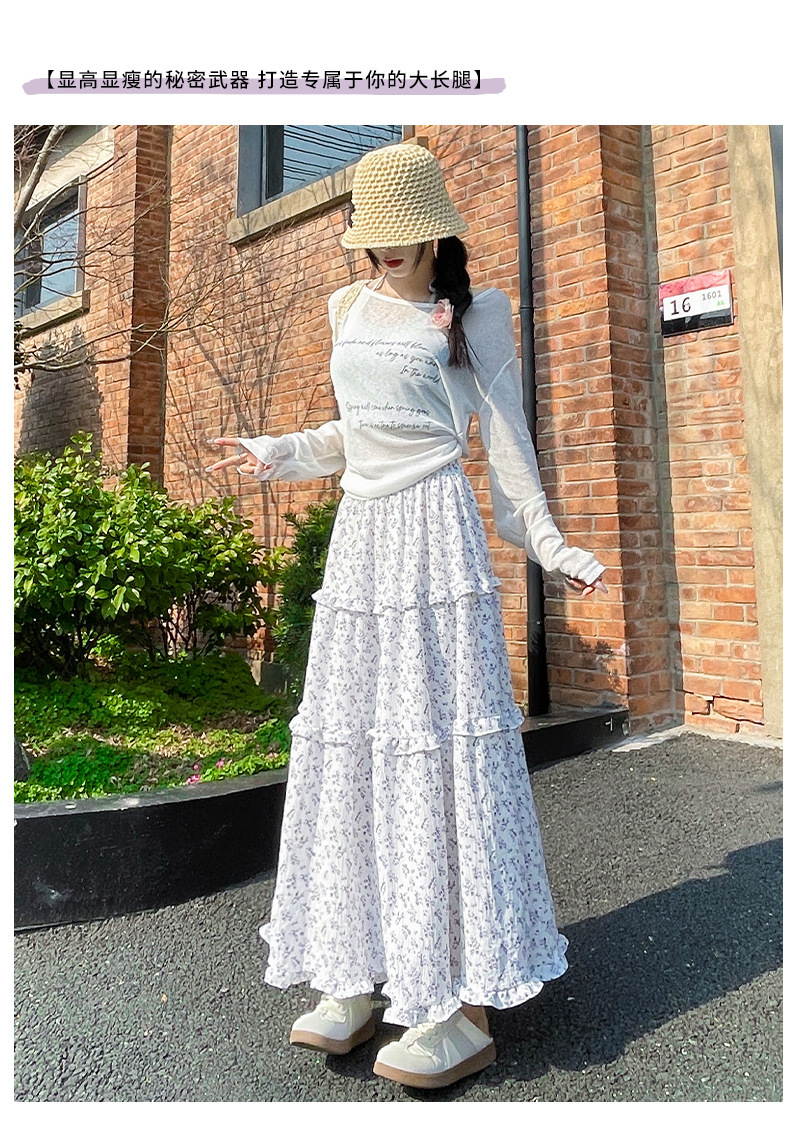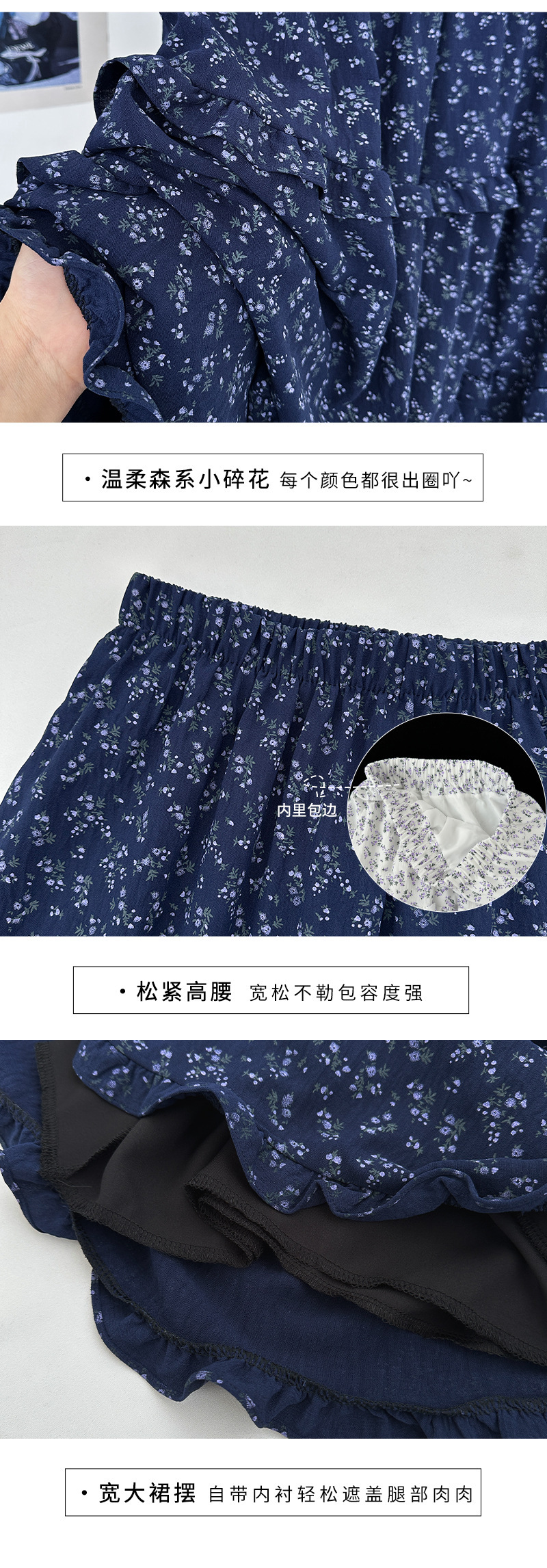 「气质款!碎花·蛋糕裙」半身裙女春秋冬新款韩式复古蓝色碎花闲慵懒风长裙子高腰a字裙