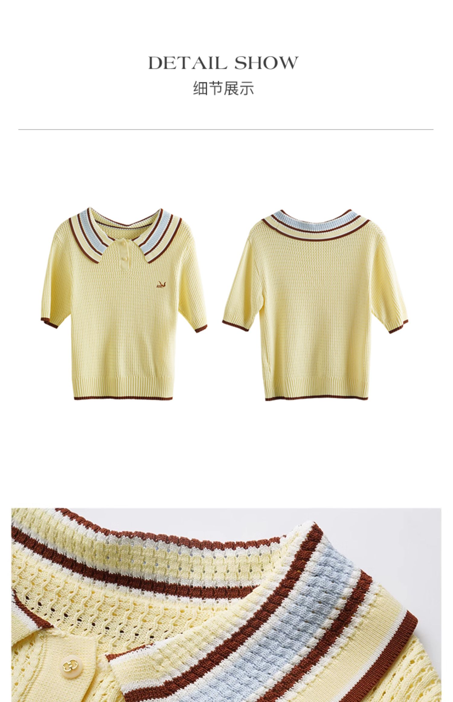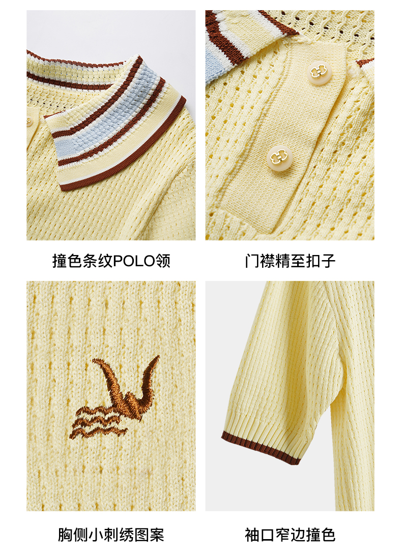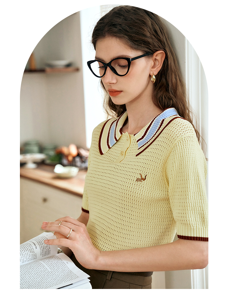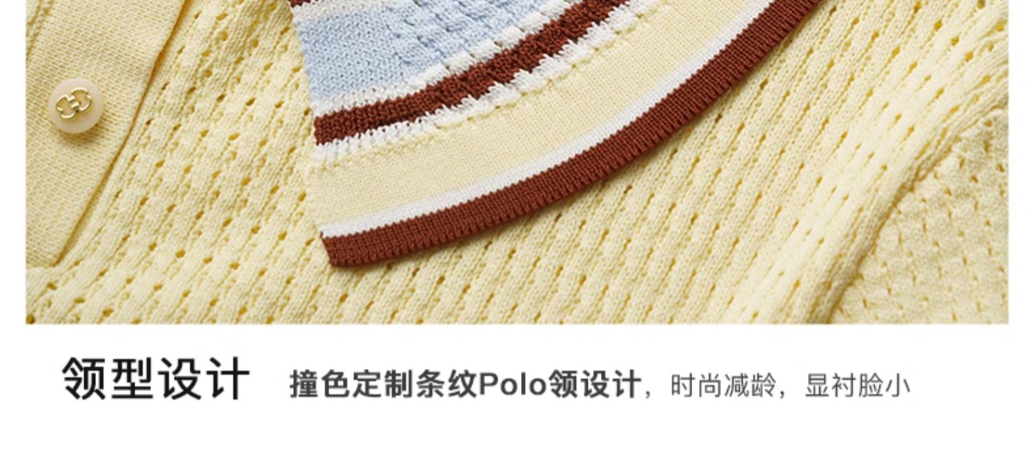 OLrain欧芮儿镂空polo领针织衫女夏季2024新款学院风撞色短袖上衣