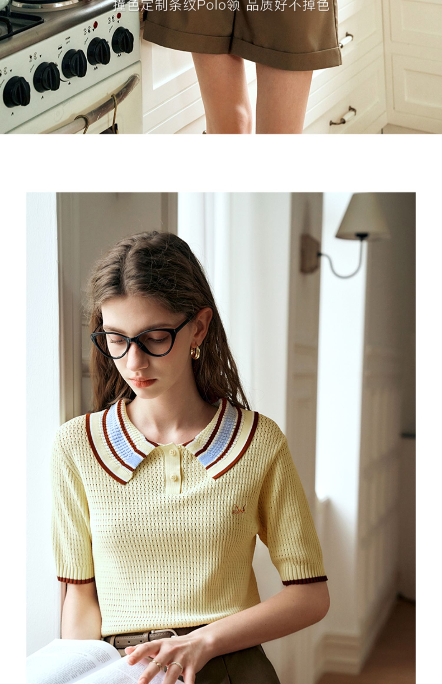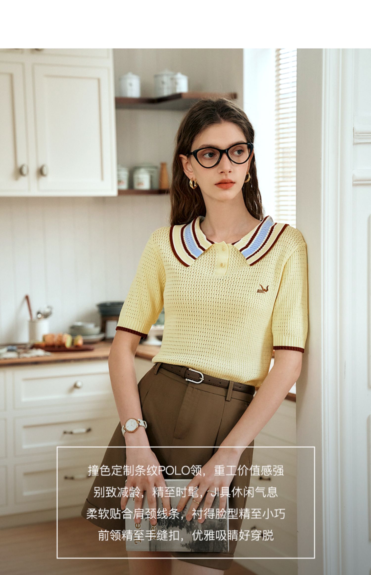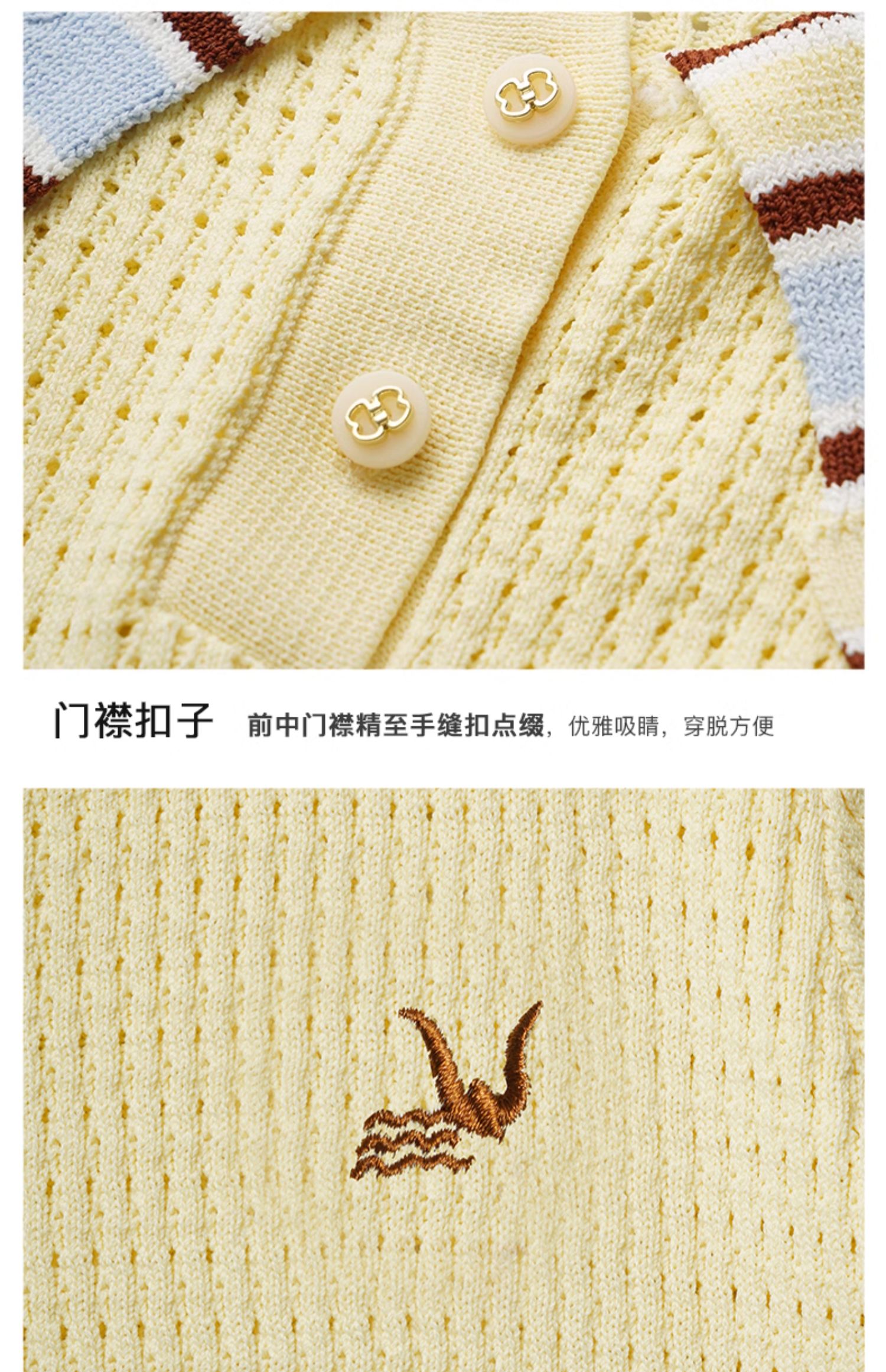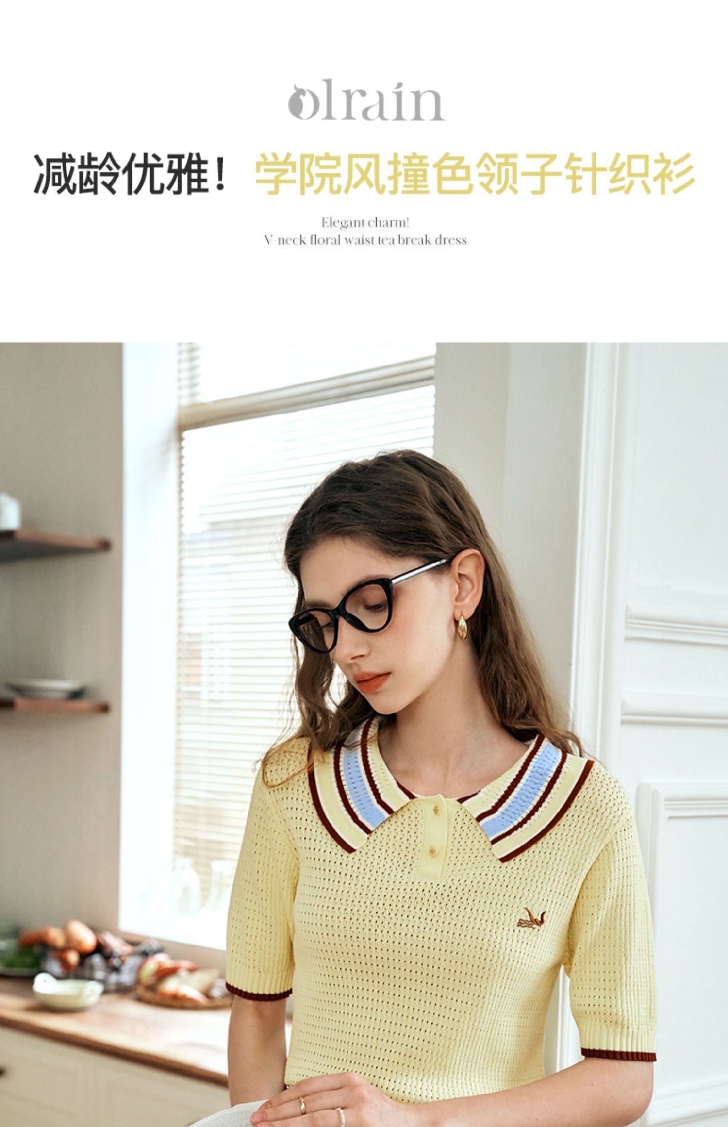 OLrain欧芮儿镂空polo领针织衫女夏季2024新款学院风撞色短袖上衣