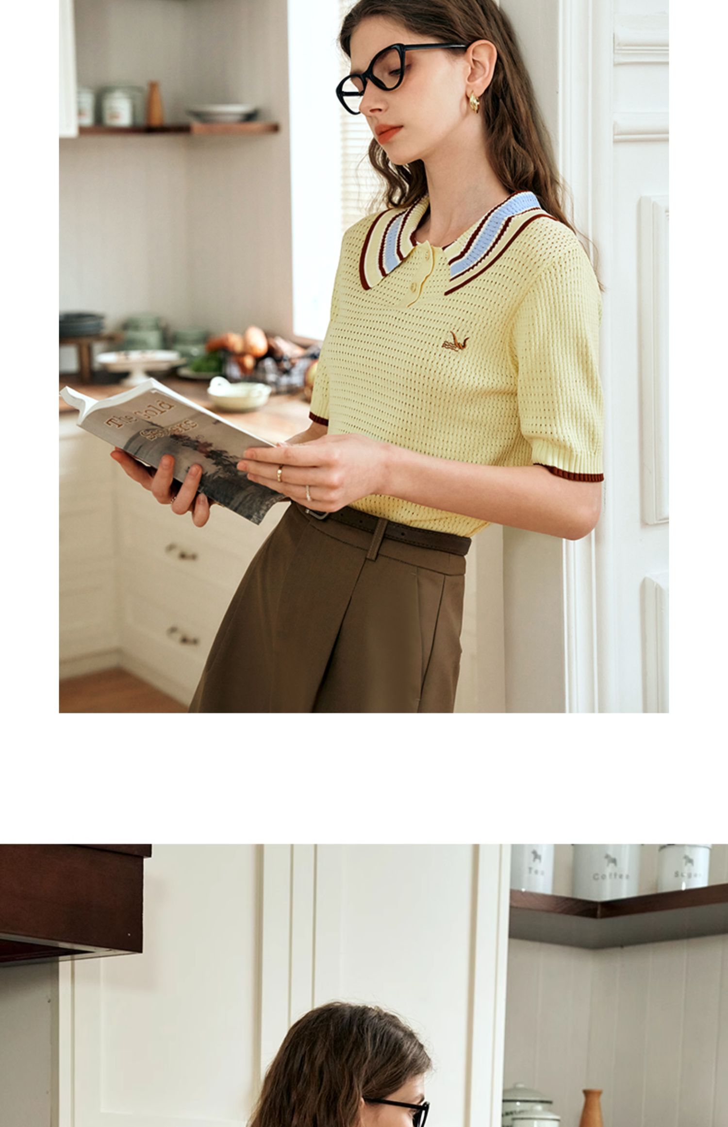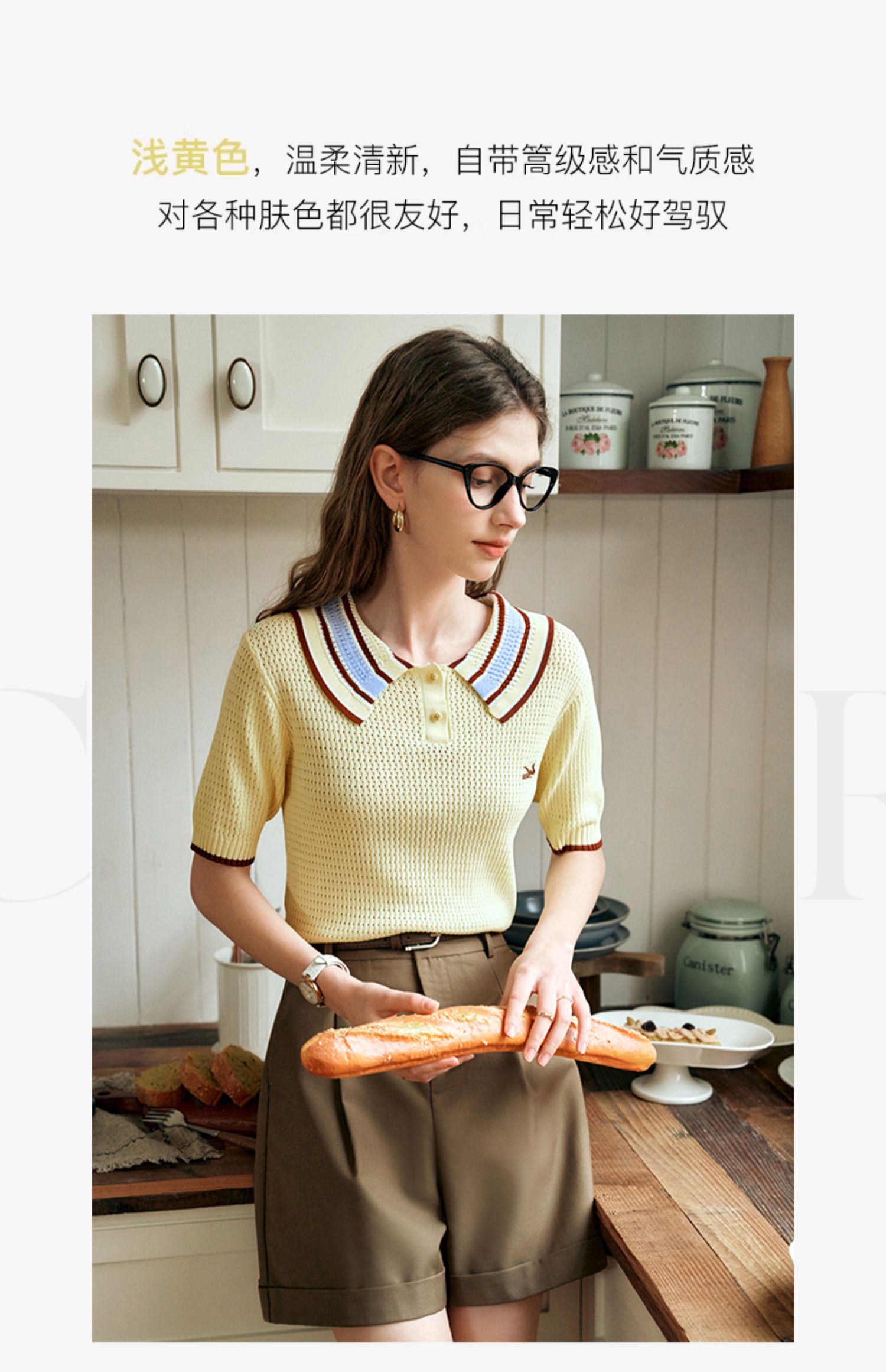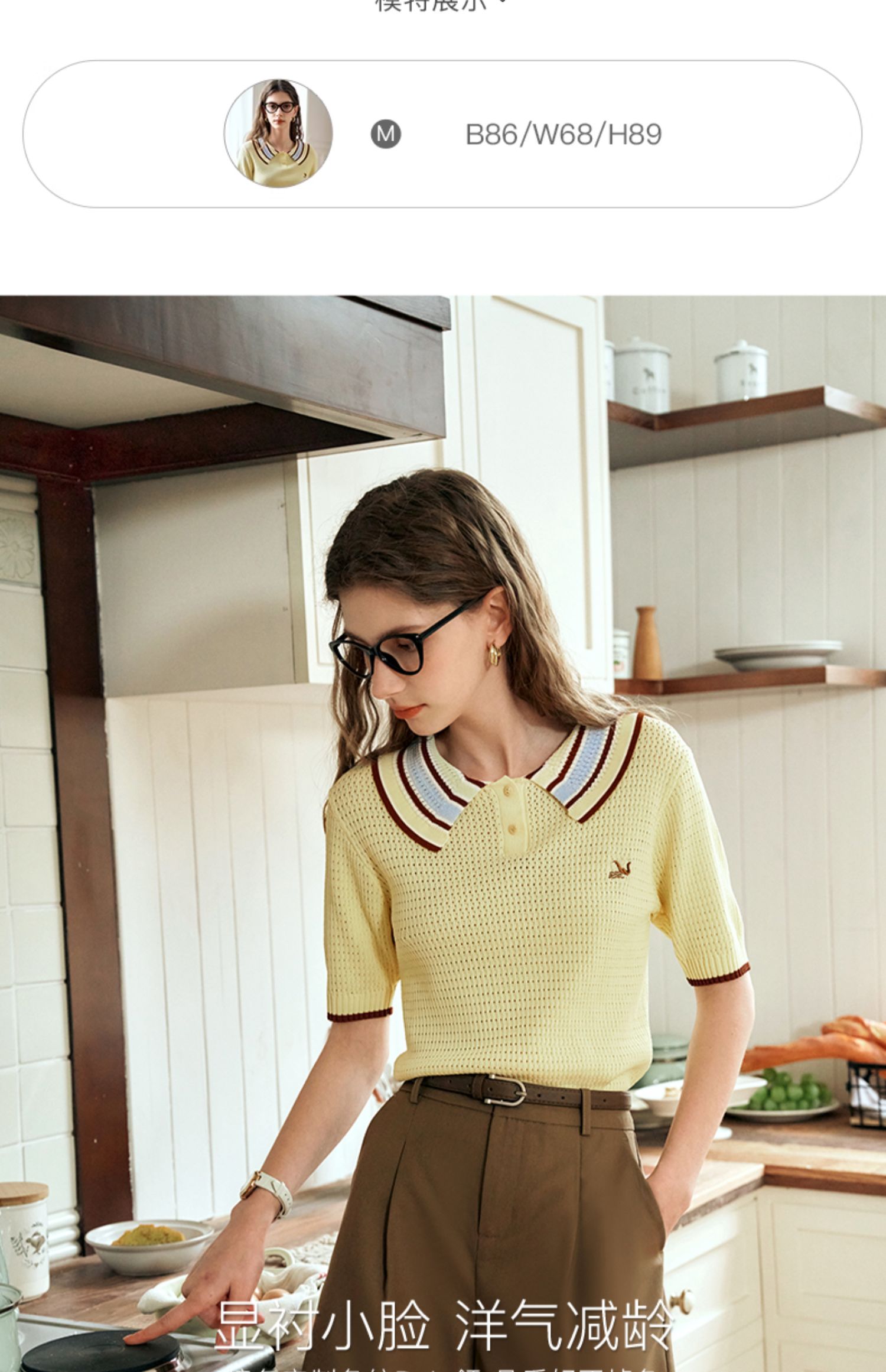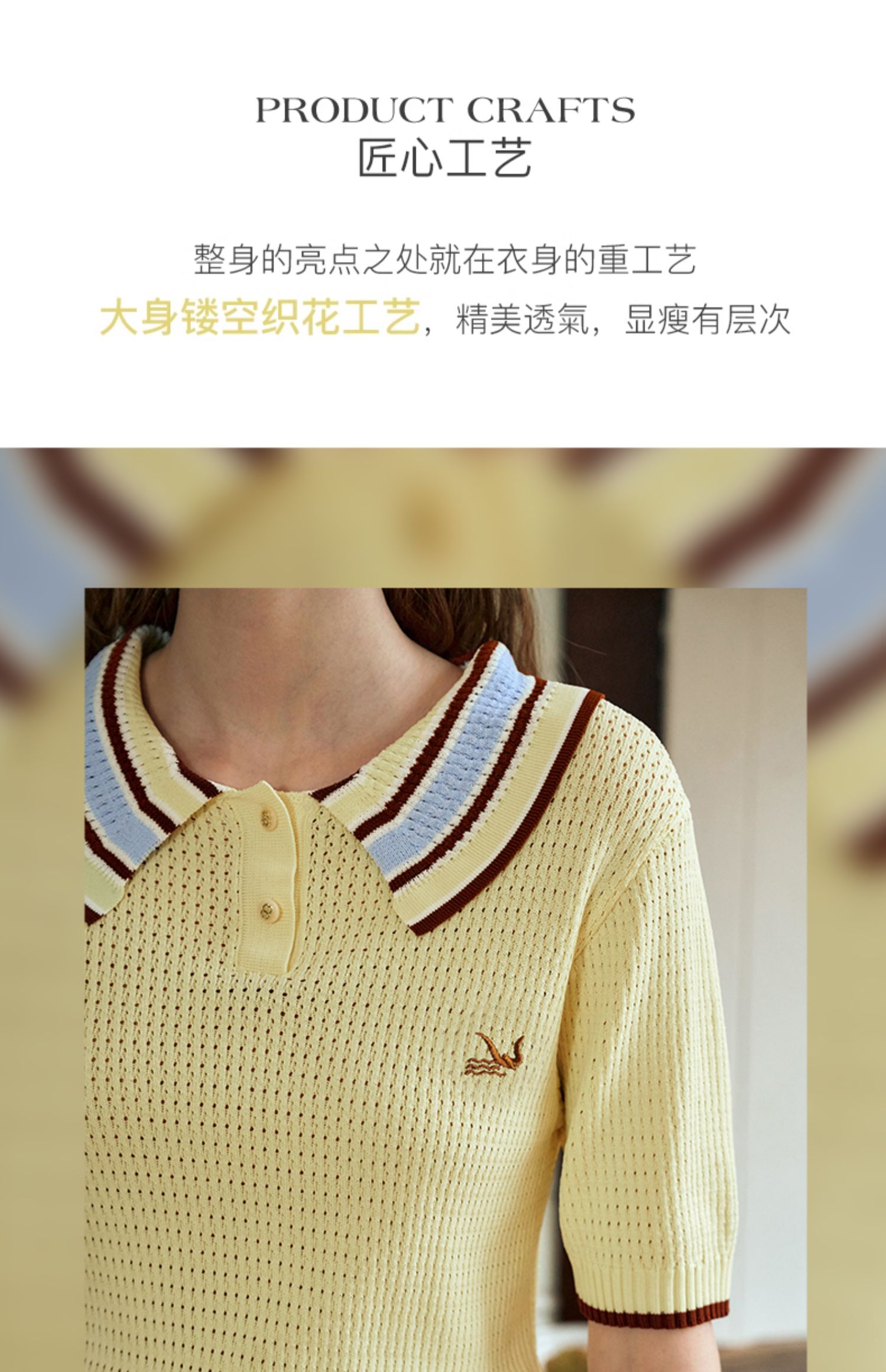 OLrain欧芮儿镂空polo领针织衫女夏季2024新款学院风撞色短袖上衣