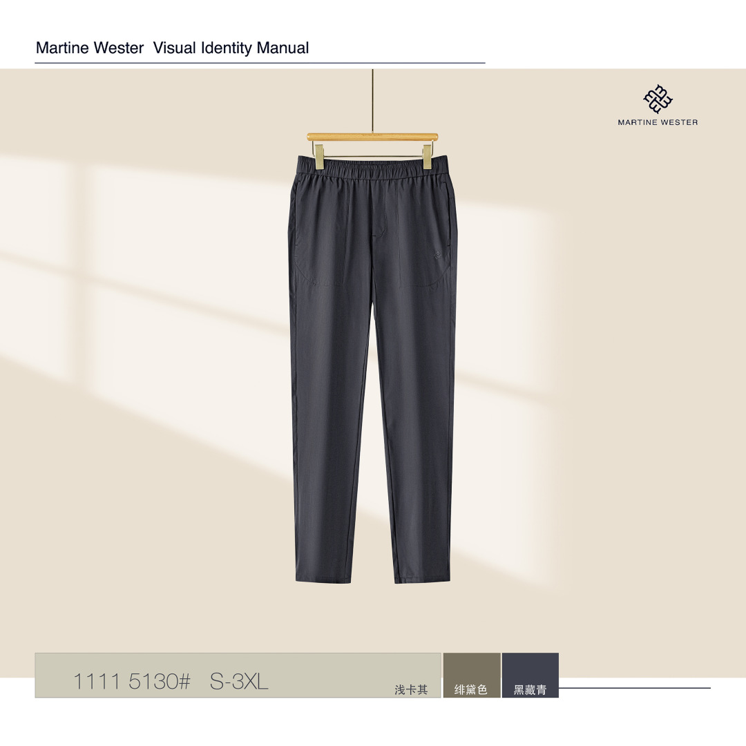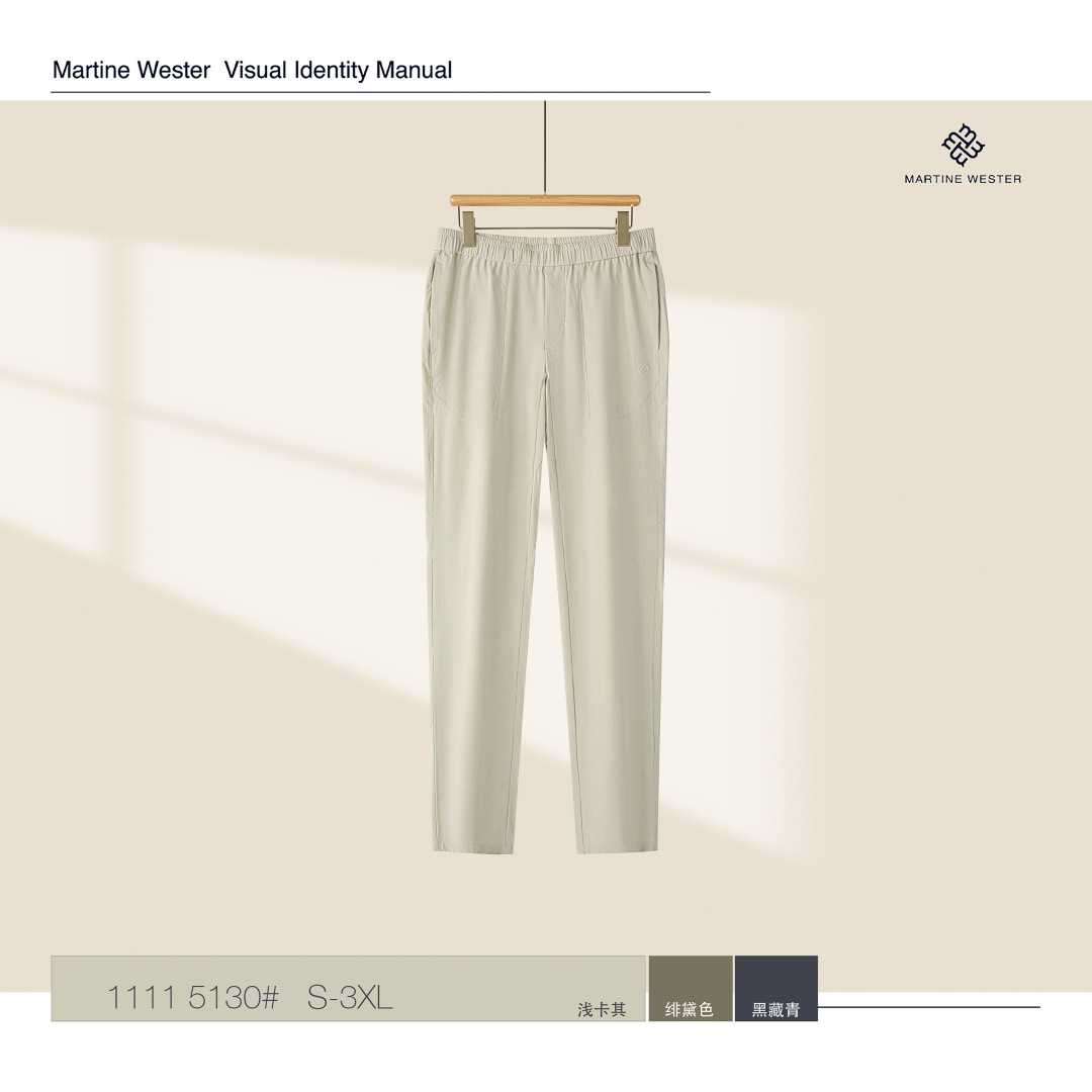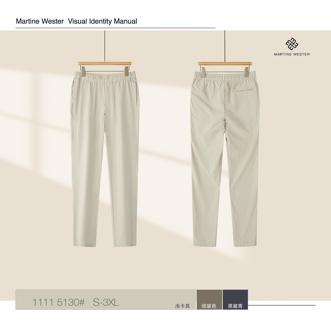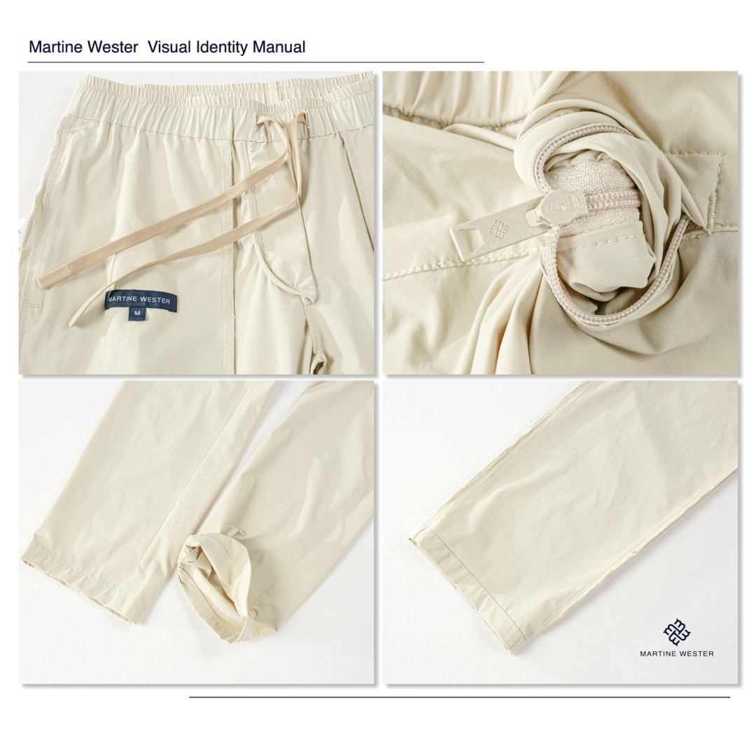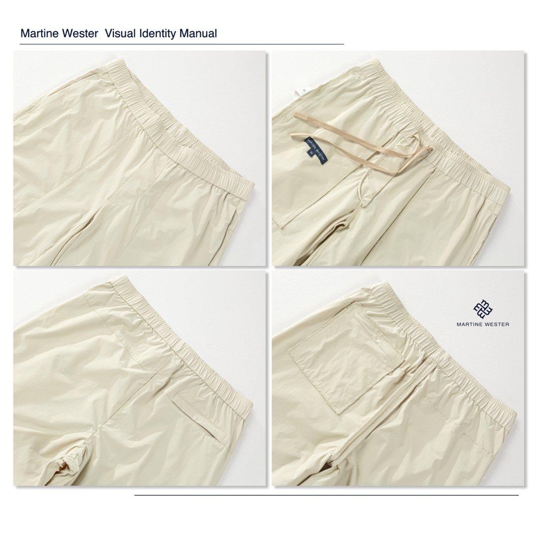 Martine Wester 男款30D机包四面弹面料松紧腰长裤; 精选30D机包四面弹面料,自由拉伸、活动无束缚、触感细腻柔滑。 整体简约清爽,腰部抽绳松紧设计,可穿搭性强且不挑身材