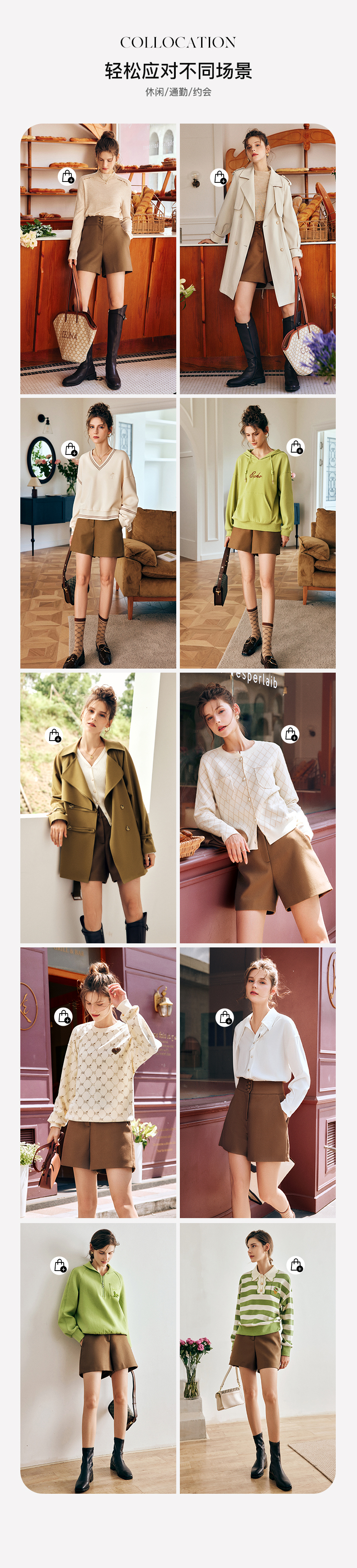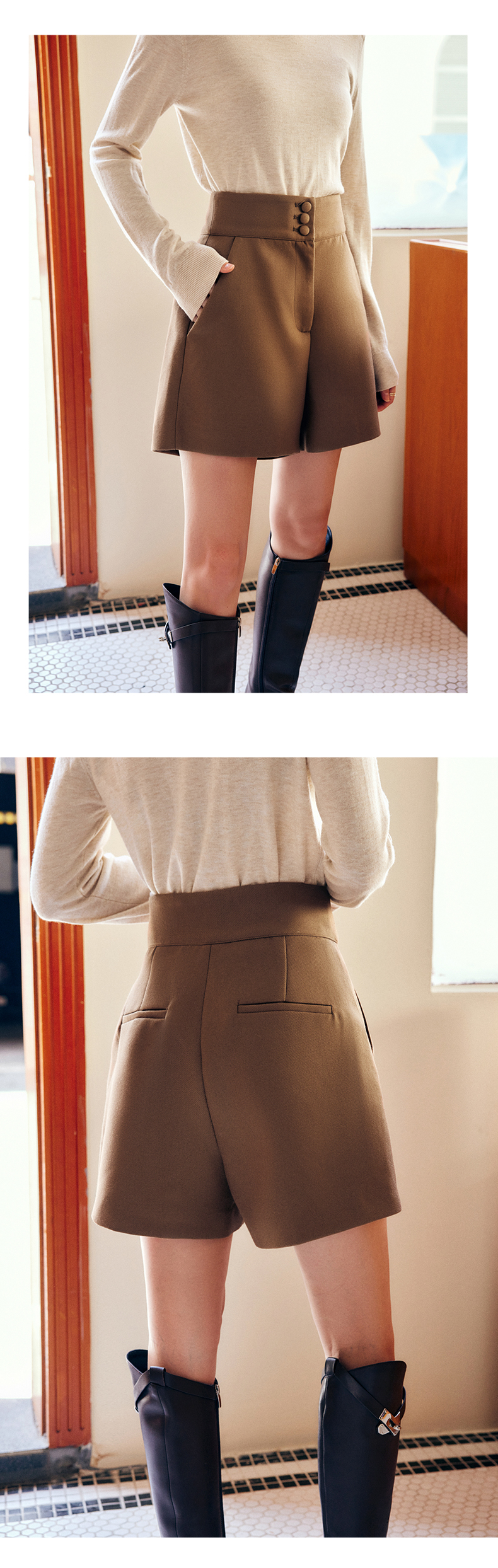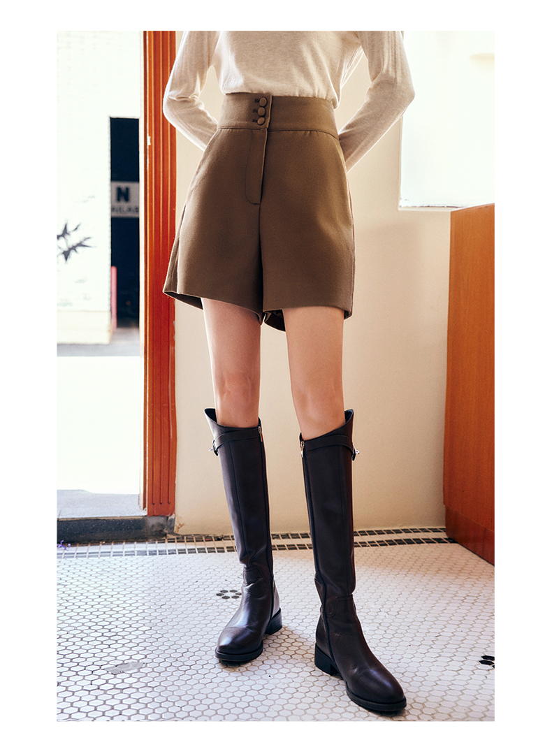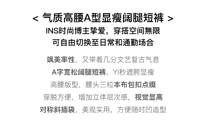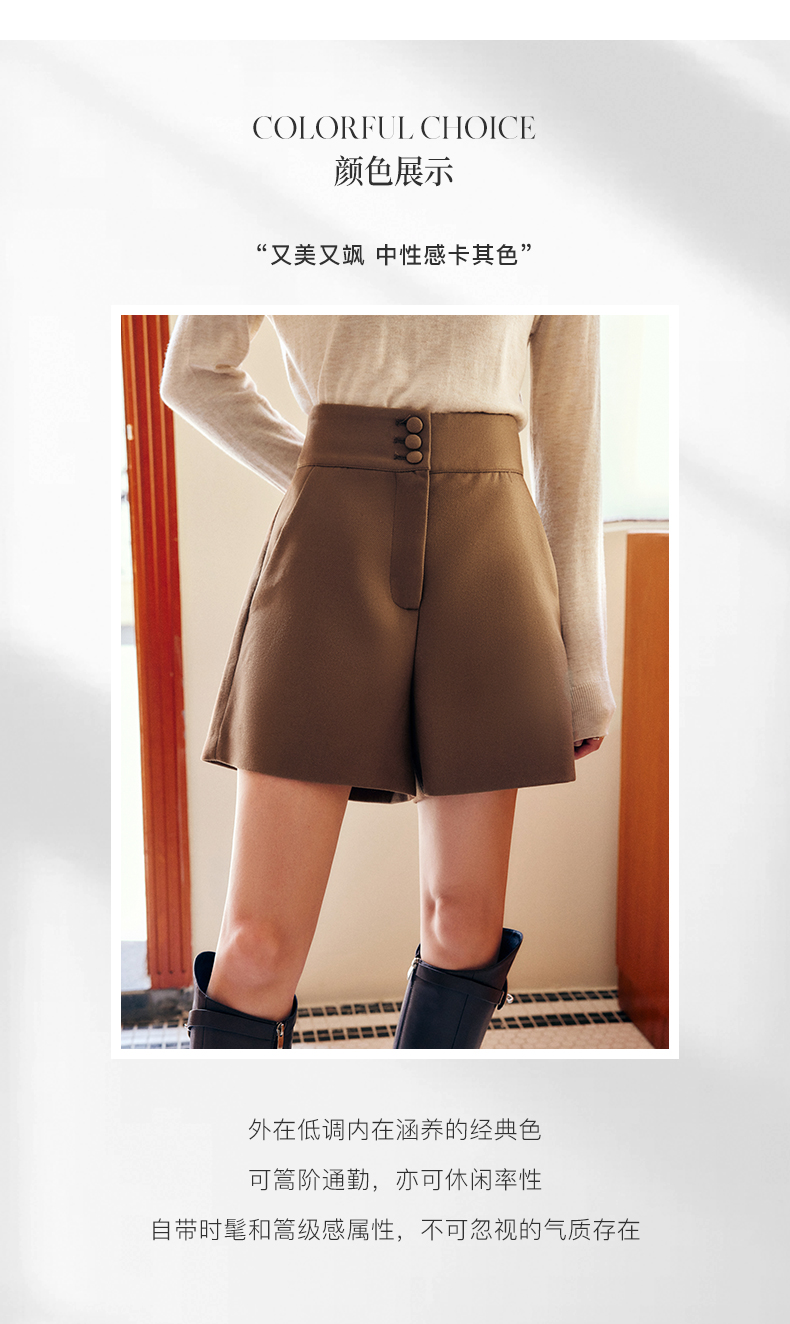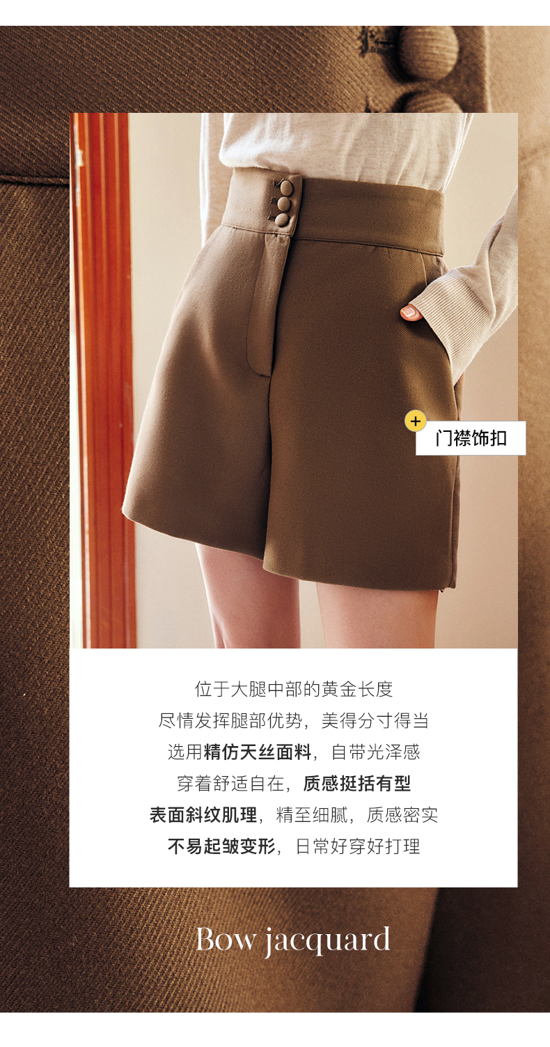 OLrain法式浅咖色休闲裤女早秋2022年新款简约高腰宽松小个子短裤