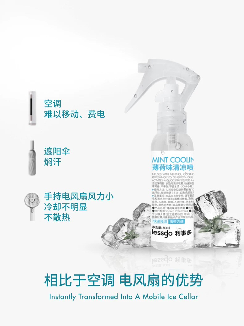 lessgo清凉喷雾50ml 户外凉感降温神器