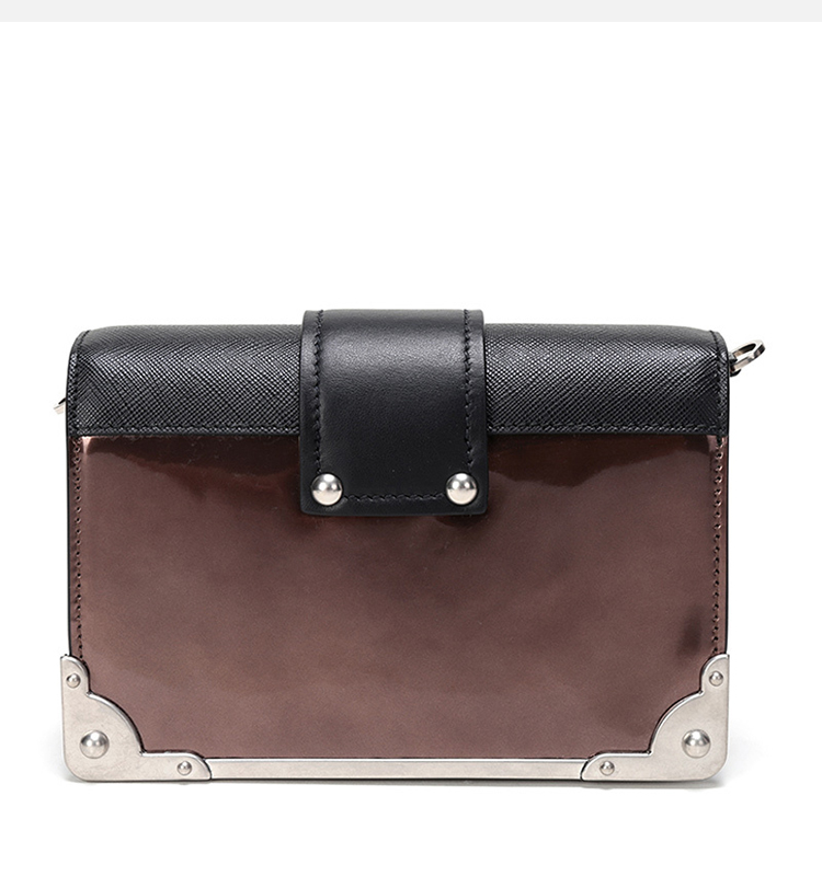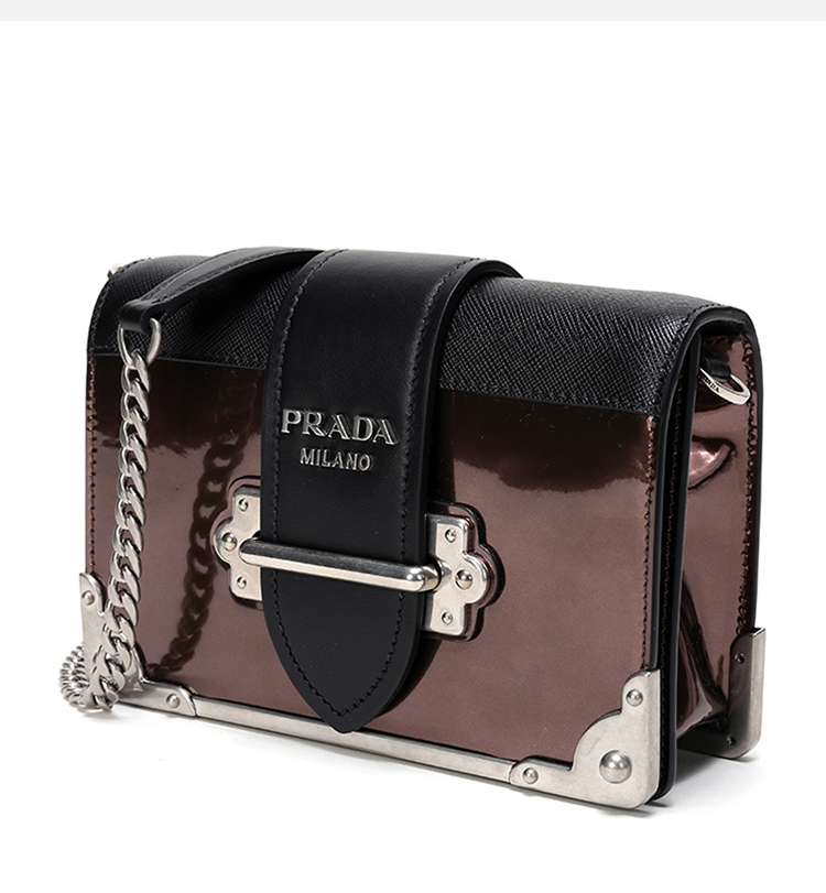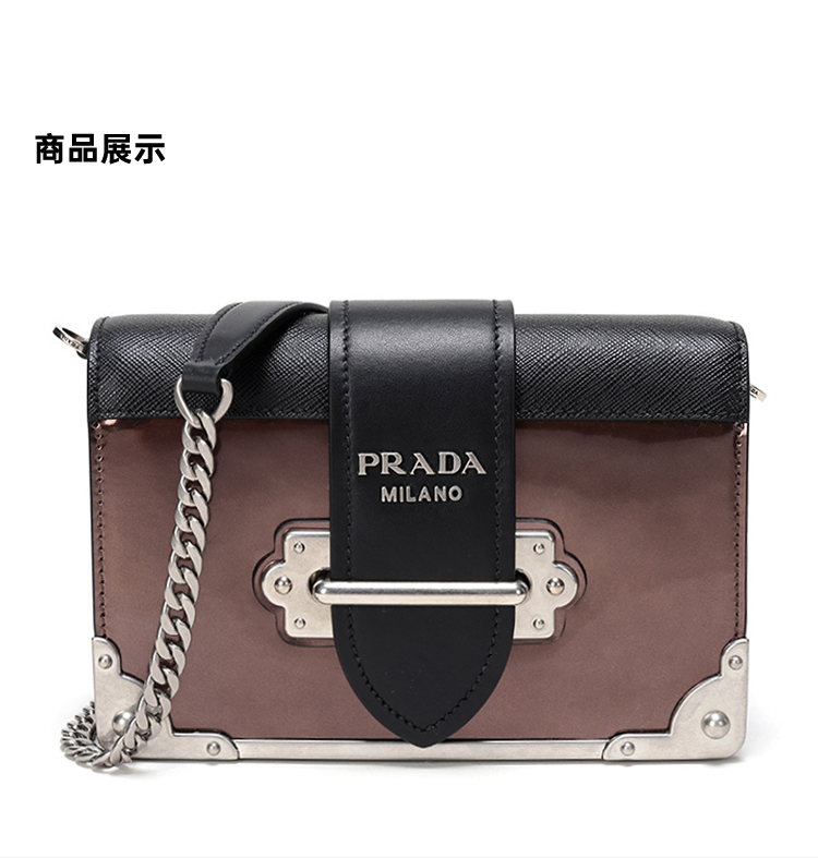 PRADA 普拉达 女士 Cahier系列 Saffiano 皮革金属刻字徽标黑拼棕色斜挎单肩包 黑色 1BH018 2B1E F0N52 WCH