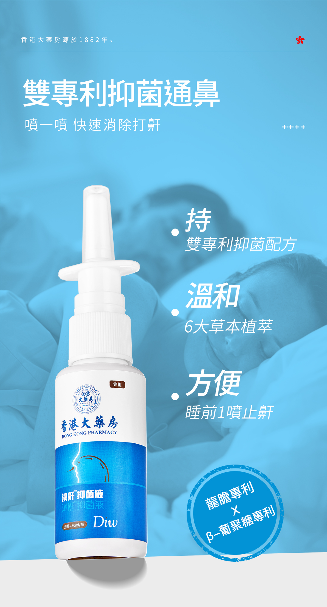 【睡前一喷 轻松止鼾】香港大药房止鼾喷剂 改善睡眠口干舌燥 打鼾咽干鼻部不适 安睡整晚 止鼾冷敷凝胶呼噜消30ml/瓶