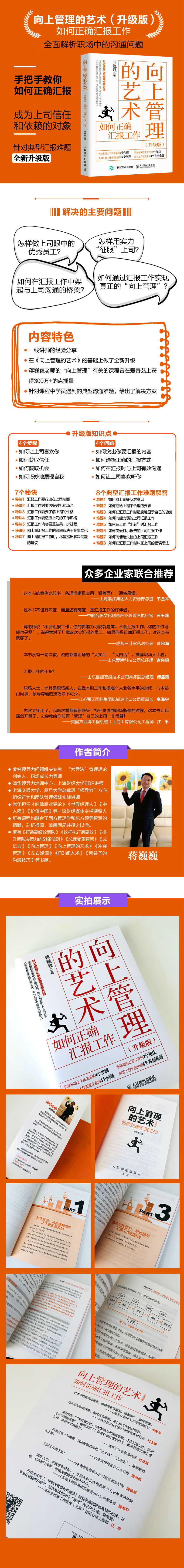 《向上管理》一书于2015年出版后,受到很多读者的认可,加印版次高达20多次。2018年,应广大读者的要求,做了修订,更名为《向上管理的艺术》。出版后半年时间,此书一度登上当当网