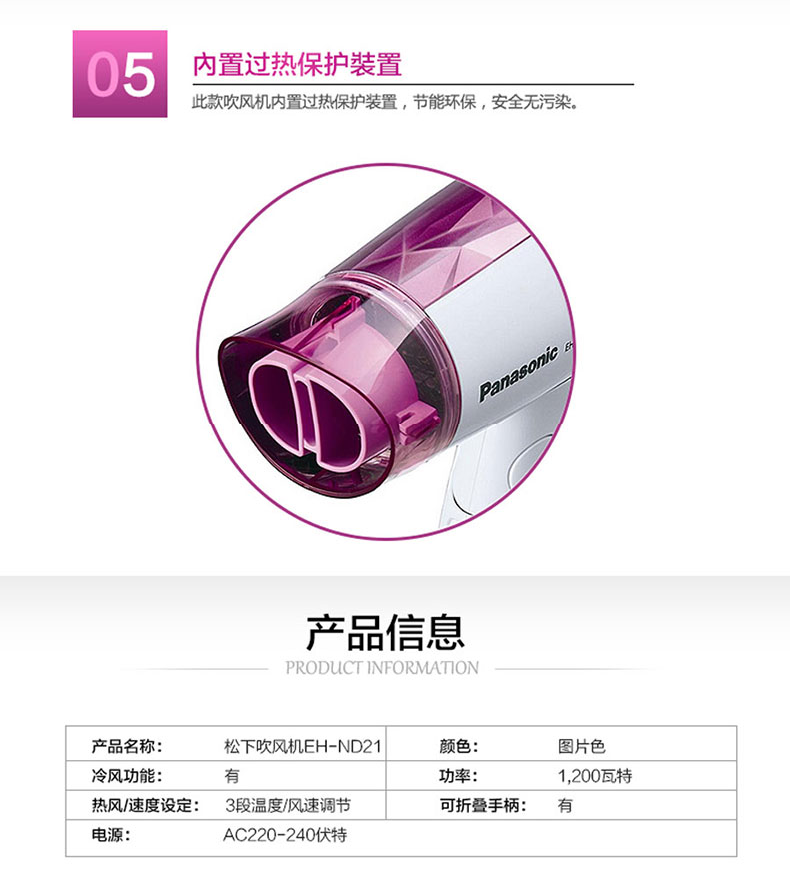 【分仓直发包邮】松下(Panasonic)电吹风 EH-ND21-P405