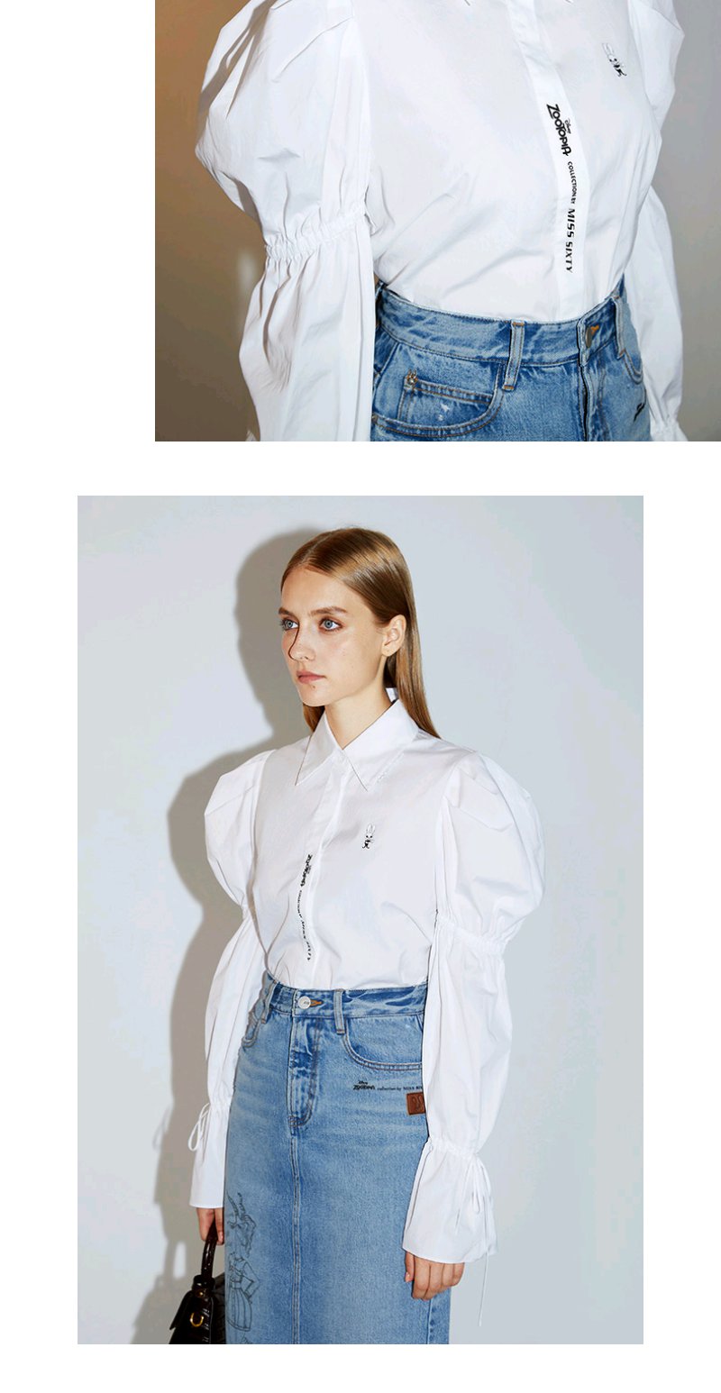 Miss Sixty2020秋季新款疯狂动物城系列印花纯棉泡泡袖上衣衬衫603XJ2800000