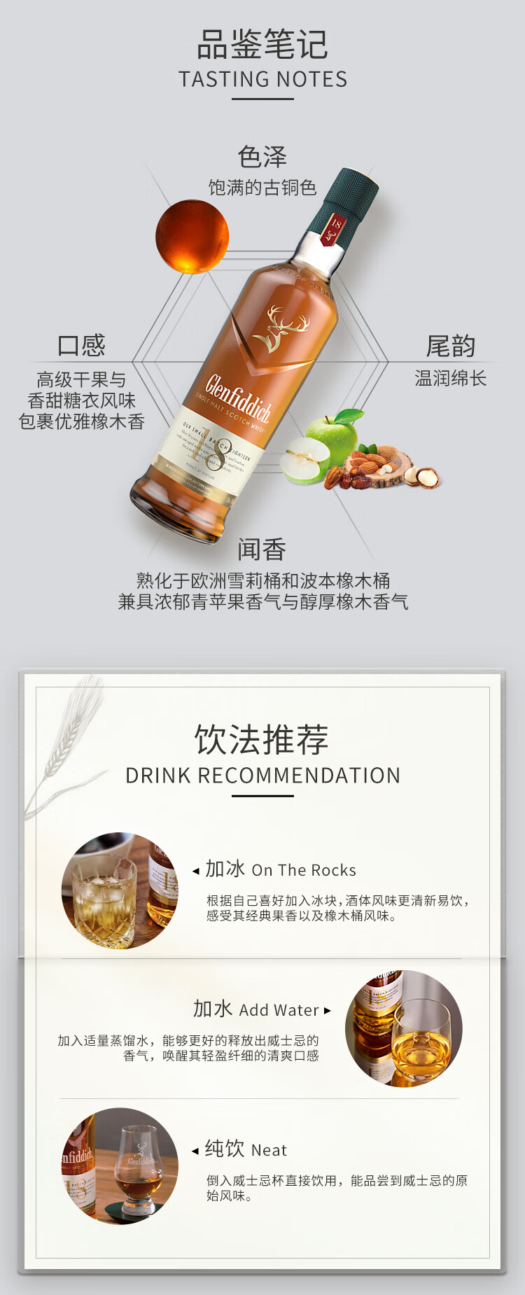 【有税版】格兰菲迪18年苏格兰单一麦芽 威士忌 700ml 核心系列